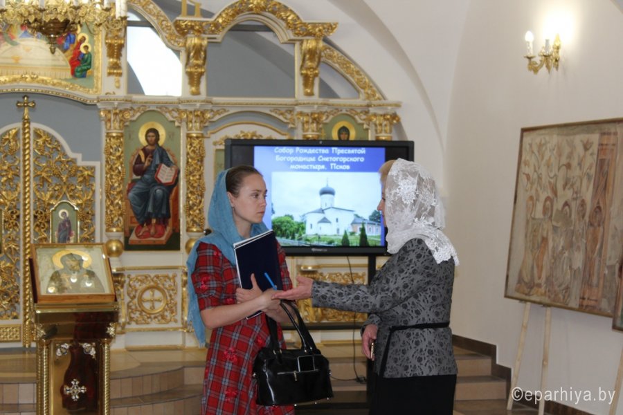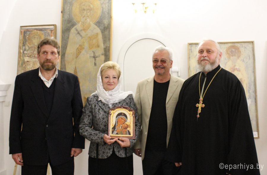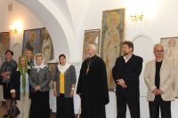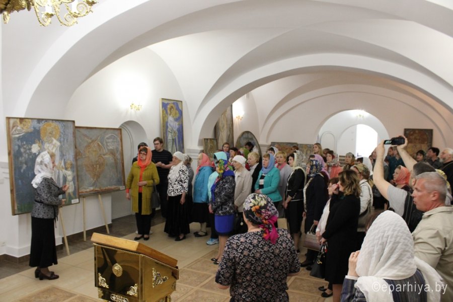 15 мая состоялось торжественное открытие выставки копий древней фресковой живописи храмов Полоцка и Пскова «Образ. Традиция. Время» в нижнем приделе строящегося православного храма в Рогачёве. Экспозицию составили копии фрагментов росписи стен Спасо-Преображенской церкви Спасо-Евфросиниевского Полоцкого монастыря, церкви Рождества Богородицы Снетогорского женского монастыря близ Пскова (1313 года), Спасо-Преображенской церкви (около 1140 года) Мирожского монастыря во Пскове, выполненные выпускниками кафедры монументально-декоративного искусства Белорусской государственной академии искусств в конце прошлого века. "Стены этих храмов расписаны изображениями святых и библейских сюжетов в византийском стиле. Этот стиль создает светоносность изображения, чтобы показать, что Сам Бог, являющийся миру, есть Свет: «Я свет миру» (Ин. 8:12). Даже если на иконе изображены святые, «главное действующее Лицо» здесь Свет, то есть Бог, Который преображает человека и мир.Каждая работа – это кропотливый труд по изучению фресок, это частичка человеческой души", - отметил в приветственном слове благочинный Рогачёвского округа протоиерей Алексей Смотрицкий. Подробнее о представленных на выставке работах рассказала директор Светлогорской картинной галереи «Традиция» имени Германа Прянишникова Надежда Ивановна Шинкович. Координатор прихода святой великомученицы Варвары аг.Боровики Светлогорского благочиния Александр Александрович Коршук поведал о том, как Божиим промыслом родилась эта экспозиция. Своими впечатлениями от выставки поделился известный белорусский скульптор, член союза художников Виктор Александрович Смоляр. Протоиерей Алексей Смотрицкий поблагодарил гостей за возможность прикоснуться к удивительной поэзии древнерусской монументальной живописи.Открытие выставки сопровождалось пасхальными песнопениями в исполнении хора прихода храма святого благоверного князя Александра Невского. По завершении просмотра посетители смогли побывать в верхнем храме, в котором продолжаются отделочные работы. |