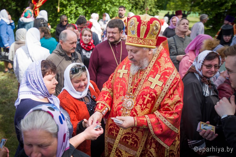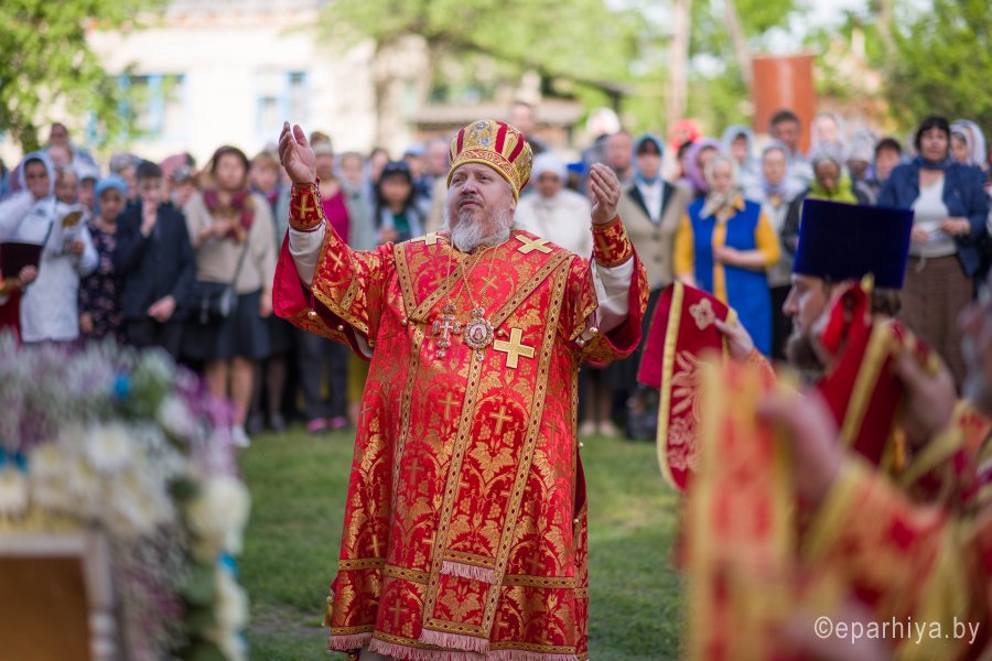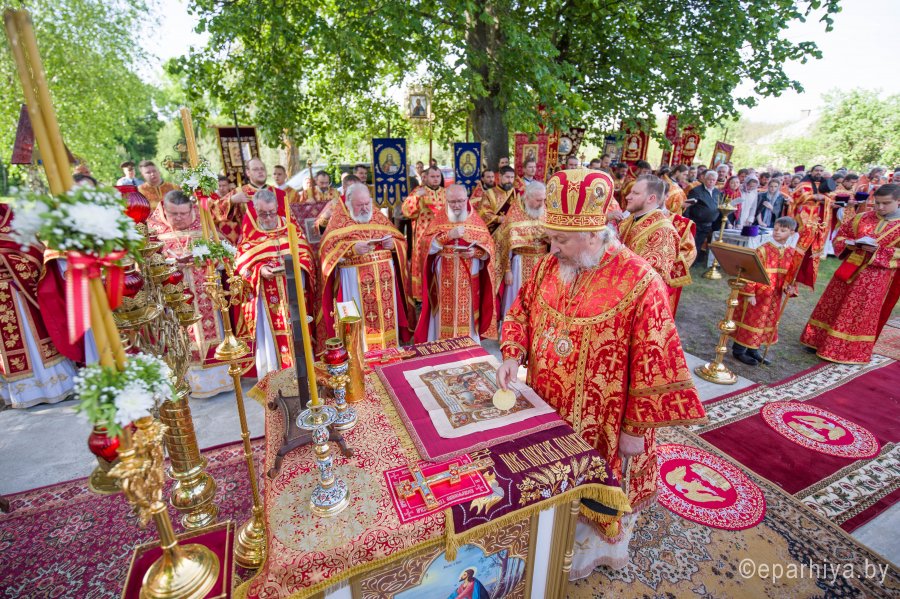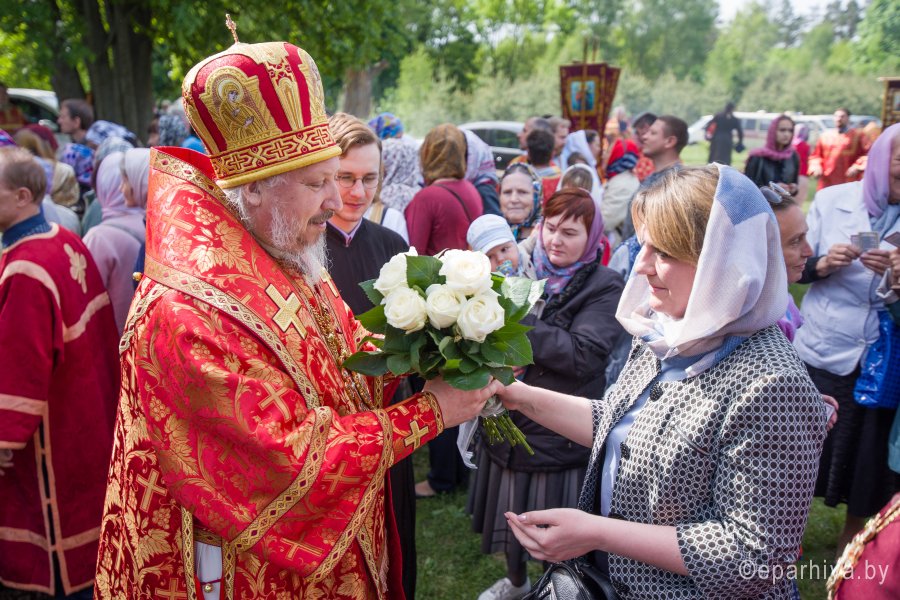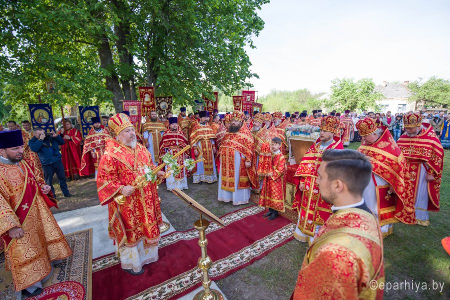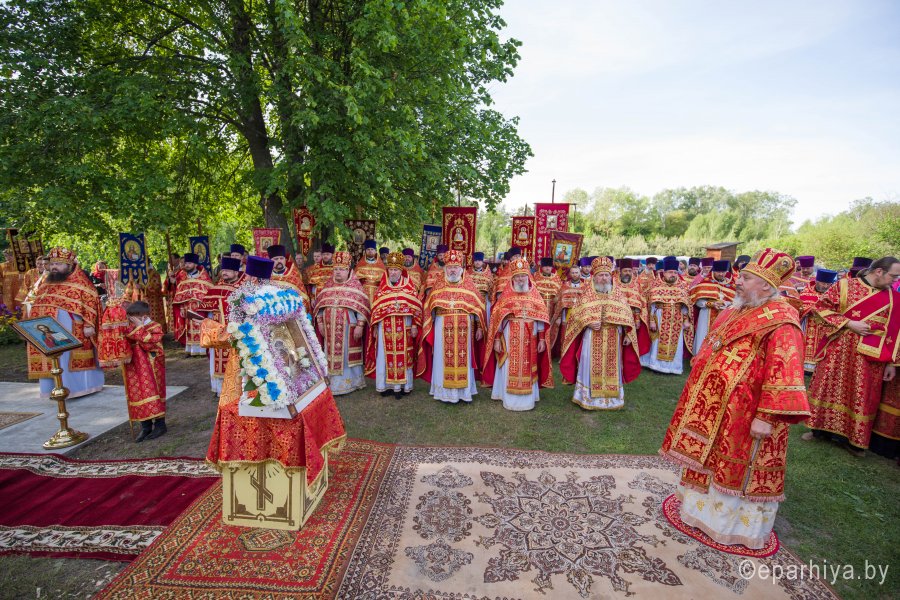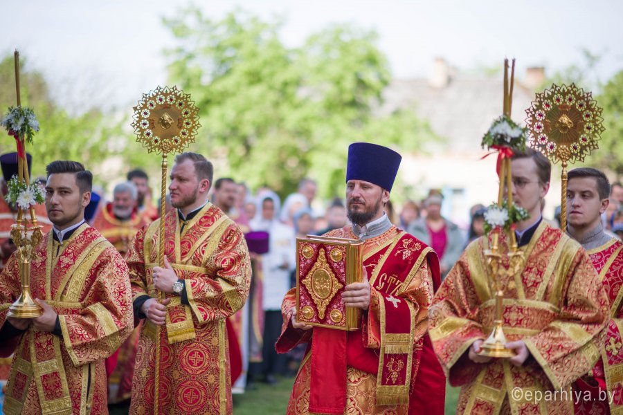 В церковной жизни мы чтим большое количество святых, однако в памяти каждого верующего человека занимают отдельное место те, кто не глядя на угрозу своей жизни, под страхом смерти продолжал проповедовать свою веру, не изменяя своему пастырскому долгу. Сегодня в Гомельской епархии не забываются те, кто ценою своей жизни содействовал нашему благополучию. Молитвенное воспоминание мученического подвига одного из таких святых, священномученика Макария, митрополита Киевского, состоялось 18 мая 2019г. (по решению Епархиального Совета крестный ход переносится на следующую субботу после даты празднования памяти сщмч. Макария Киевского). В этот день Высокопреосвященнейший Стефан возглавил соборное богослужение духовенства, которое предварял крестный ход к месту бывшего Макарьевского монастыря. За богослужением молились игуменьи монастырей Гомельской епархии: Иоанна (Ярец) с сестрами Успенского женского монастыря д. Казимирово, Вера (Афонькина) с сестрами Тихвинского женского монастыря г.Гомеля и монахиня Архелая (Новикова) с сестрами Иоанно-Кормянского женского монастыря д.Корма Богослужебные песнопения исполнил хор Никольского монастыря, совместно с духовенством епархии под управлением регента Елены Бочкаревой. Проповедь по запричастном стихе произнес настоятель храма сщмч. Алексея Лельчицкого в г.Гомеле протоиерей Александр Лопушанский. В ходе Литургии были вознесены молитвы о мире в Украине и вечная память пострадавшим в годину гонений за веру Христову. По окончанию Богослужения, к собравшимся обратился Архиепископ Гомельский и Жлобинский Стефан. В своем обращении Владыка отметил: «Когда-то, здесь был великий монастырь, в котором горела ярким огнем свеча Христианской веры, в котором текла жизнь и была связь с Богом. Наша миссия, как истинных верующих, никогда не забывать о прошлом этого места. Сегодня, мы отдаем дань памяти не только этому храму, но и святителю Макарию Киевскому, который под пытками не сдался врагу и понес мученическую смерть». Так же Высокопреосвященнейший Владыка вознес молитву священномученику Макарию Киевскому, поздравил всех причастников с принятием Христовых Тайн и в память об этом дне раздал всем молящимся иконки. По окончании богослужения все желающие могли совершить экскурсию на место бывшего монастыря, которую провел протоиерей Александр Лопушанский. Священнослужитель ознакомил гостей с устройством монастыря и монашеской жизни. |