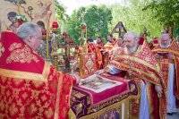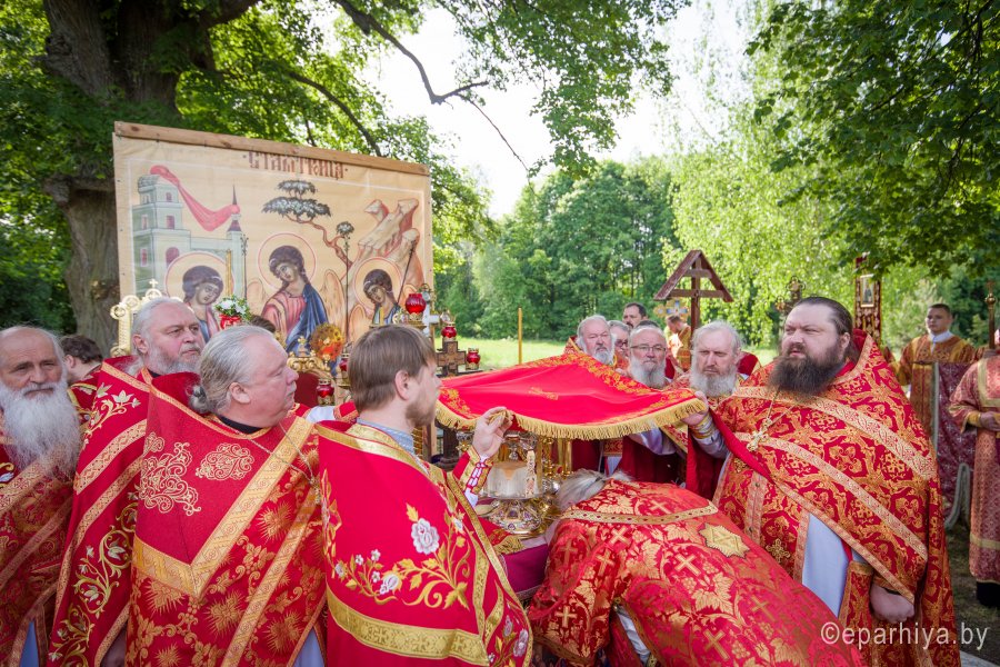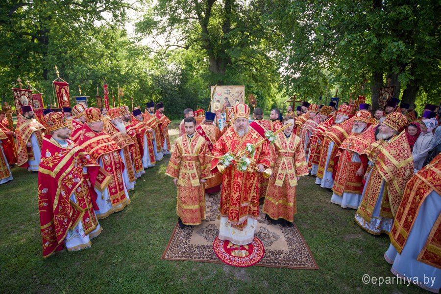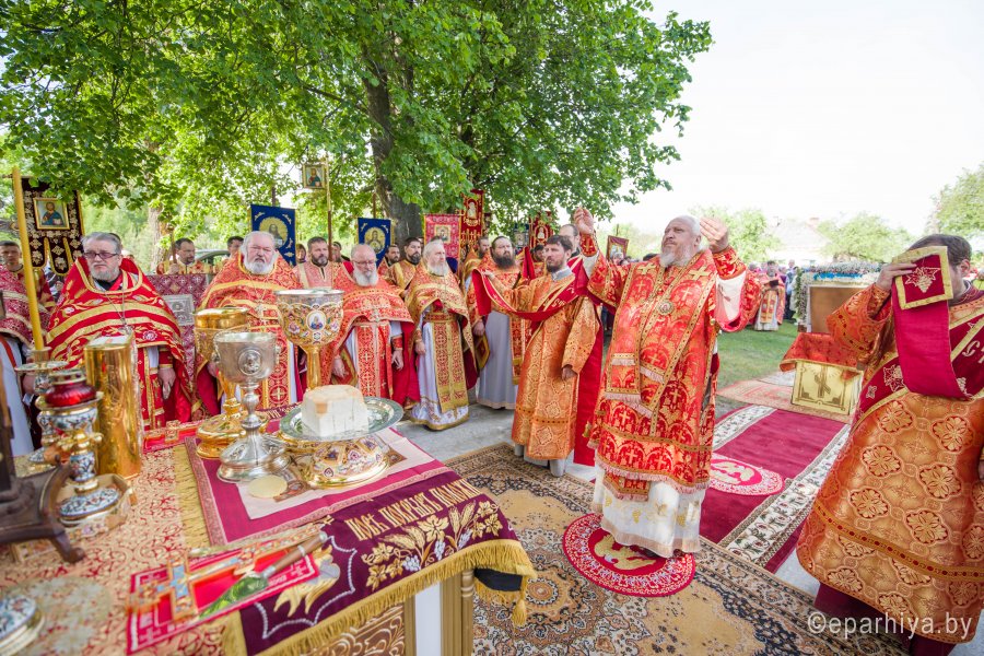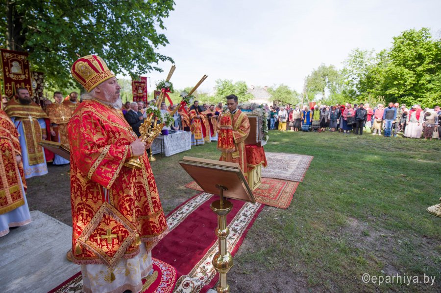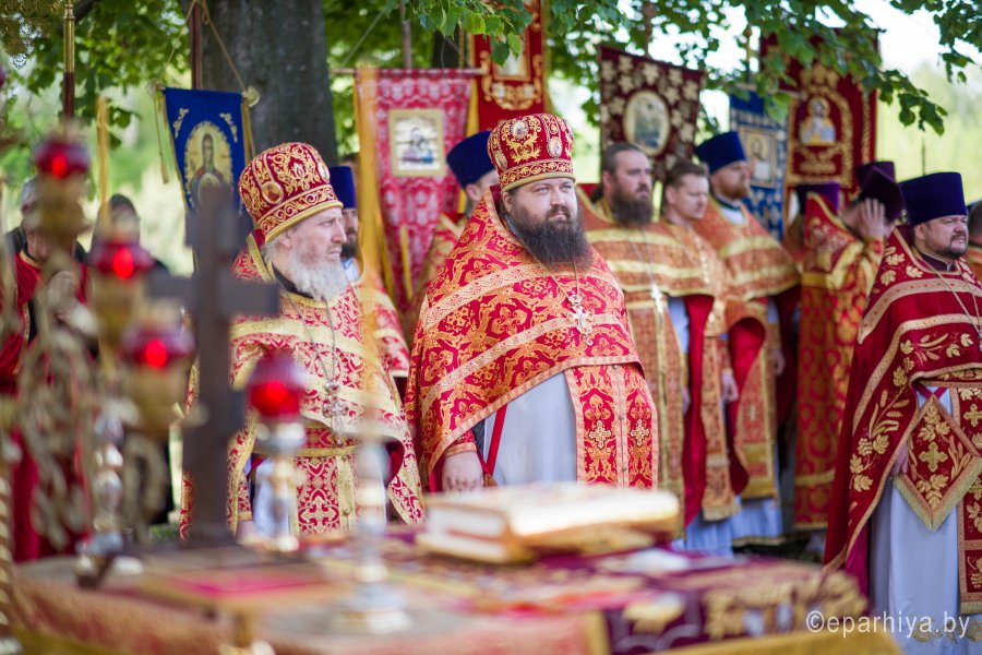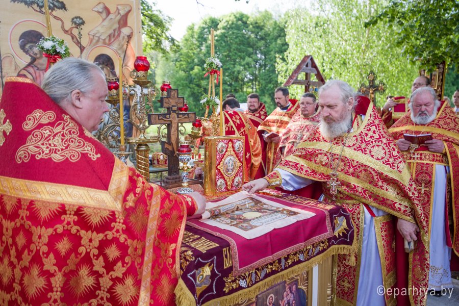 В церковной жизни мы чтим большое количество святых, однако в памяти каждого верующего человека занимают отдельное место те, кто не глядя на угрозу своей жизни, под страхом смерти продолжал проповедовать свою веру, не изменяя своему пастырскому долгу. Сегодня в Гомельской епархии не забываются те, кто ценою своей жизни содействовал нашему благополучию. Молитвенное воспоминание мученического подвига одного из таких святых, священномученика Макария, митрополита Киевского, состоялось 18 мая 2019г. (по решению Епархиального Совета крестный ход переносится на следующую субботу после даты празднования памяти сщмч. Макария Киевского). В этот день Высокопреосвященнейший Стефан возглавил соборное богослужение духовенства, которое предварял крестный ход к месту бывшего Макарьевского монастыря. За богослужением молились игуменьи монастырей Гомельской епархии: Иоанна (Ярец) с сестрами Успенского женского монастыря д. Казимирово, Вера (Афонькина) с сестрами Тихвинского женского монастыря г.Гомеля и монахиня Архелая (Новикова) с сестрами Иоанно-Кормянского женского монастыря д.Корма Богослужебные песнопения исполнил хор Никольского монастыря, совместно с духовенством епархии под управлением регента Елены Бочкаревой. Проповедь по запричастном стихе произнес настоятель храма сщмч. Алексея Лельчицкого в г.Гомеле протоиерей Александр Лопушанский. В ходе Литургии были вознесены молитвы о мире в Украине и вечная память пострадавшим в годину гонений за веру Христову. По окончанию Богослужения, к собравшимся обратился Архиепископ Гомельский и Жлобинский Стефан. В своем обращении Владыка отметил: «Когда-то, здесь был великий монастырь, в котором горела ярким огнем свеча Христианской веры, в котором текла жизнь и была связь с Богом. Наша миссия, как истинных верующих, никогда не забывать о прошлом этого места. Сегодня, мы отдаем дань памяти не только этому храму, но и святителю Макарию Киевскому, который под пытками не сдался врагу и понес мученическую смерть». Так же Высокопреосвященнейший Владыка вознес молитву священномученику Макарию Киевскому, поздравил всех причастников с принятием Христовых Тайн и в память об этом дне раздал всем молящимся иконки. По окончании богослужения все желающие могли совершить экскурсию на место бывшего монастыря, которую провел протоиерей Александр Лопушанский. Священнослужитель ознакомил гостей с устройством монастыря и монашеской жизни. |