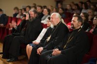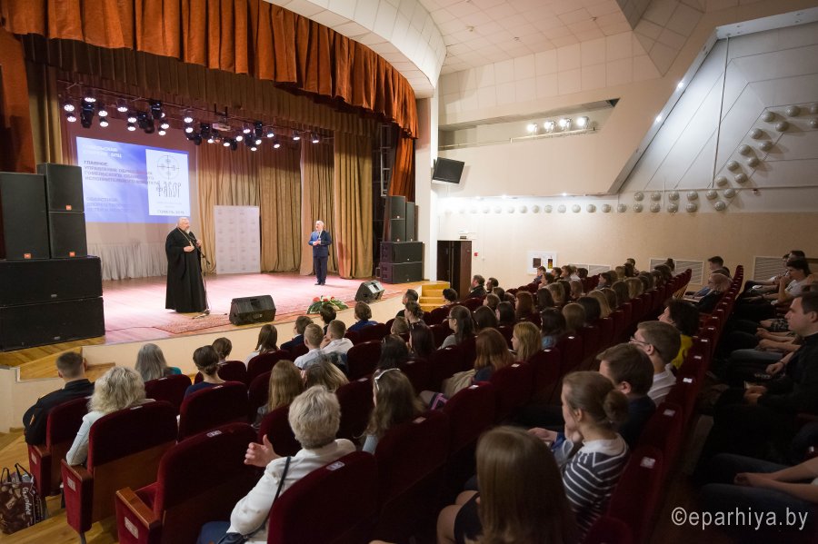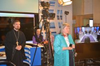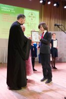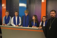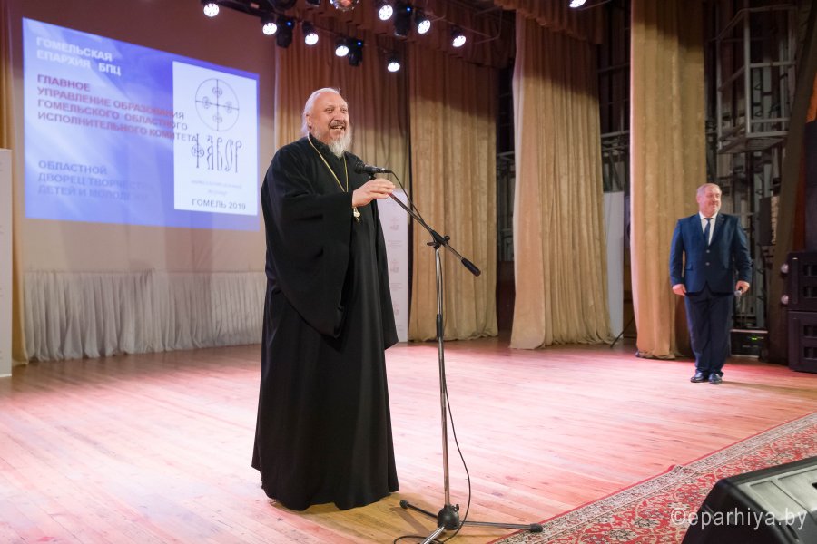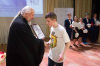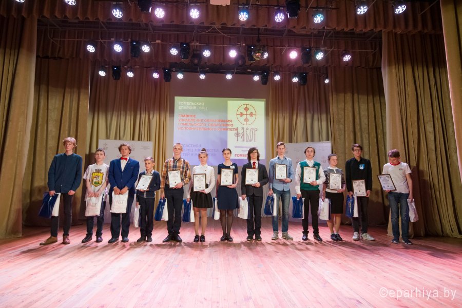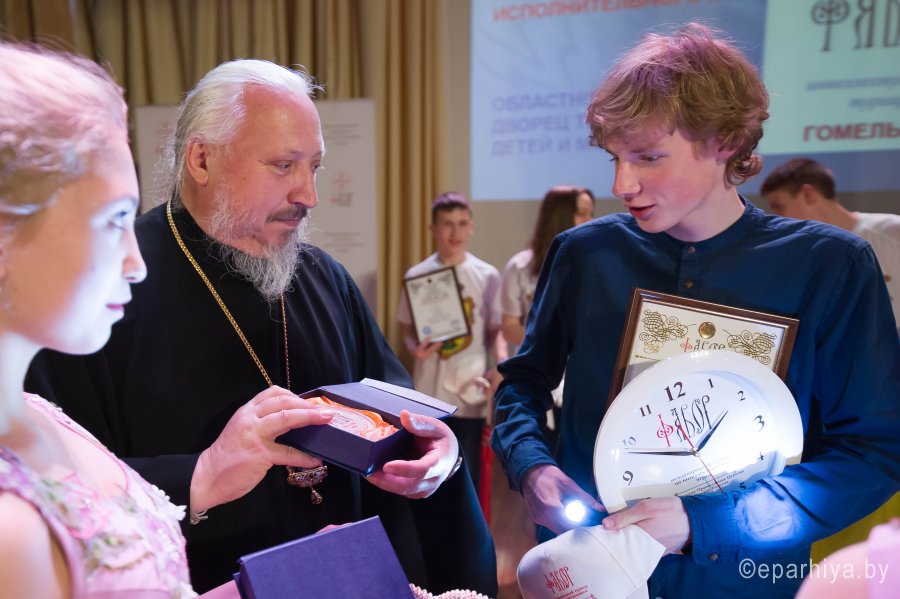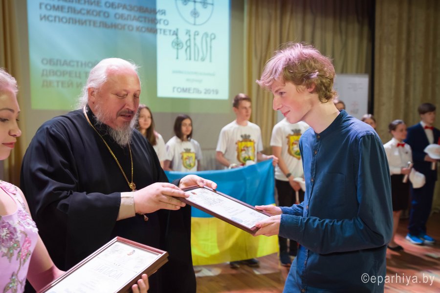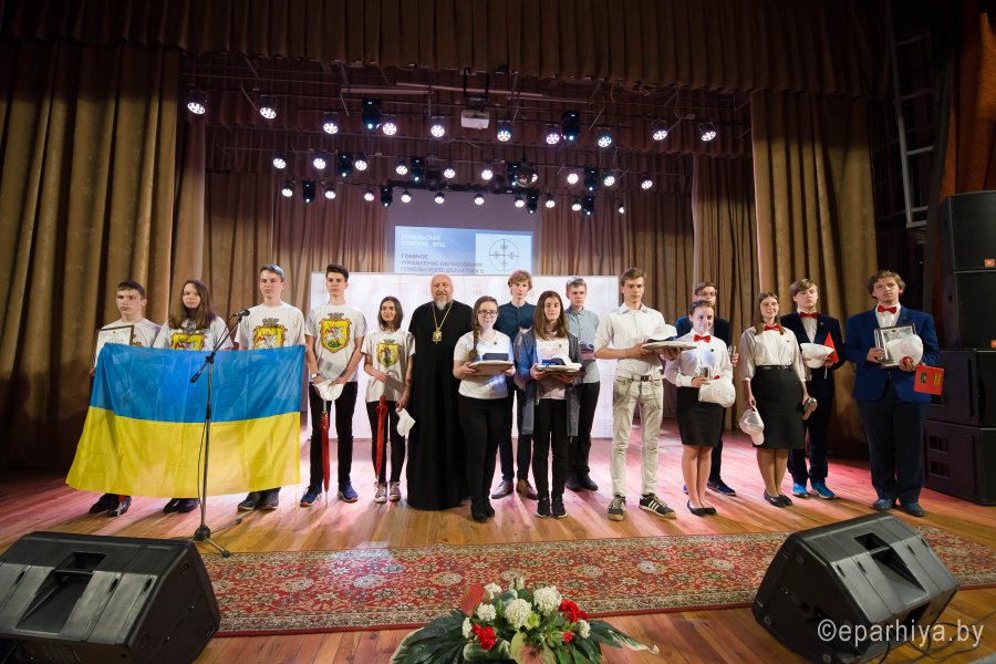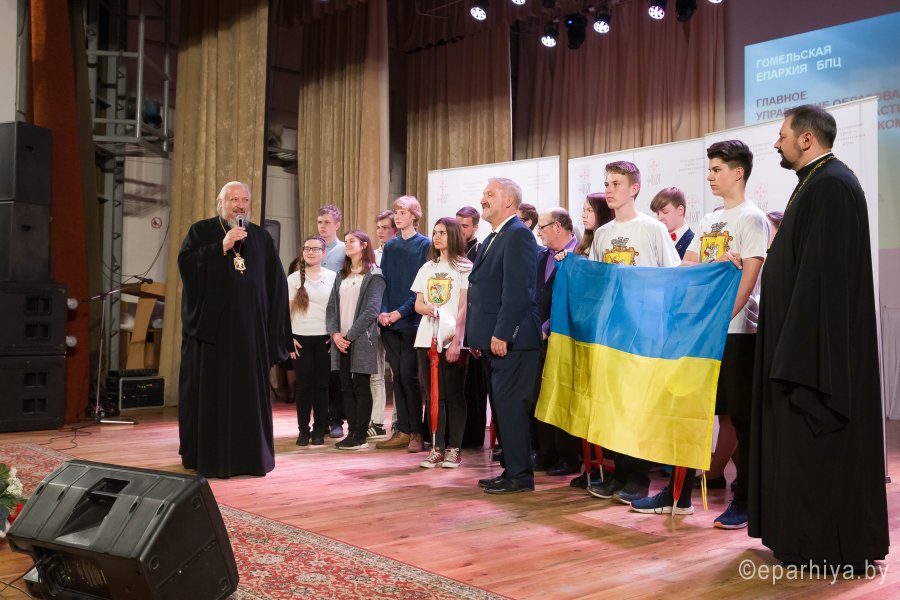 Международный Турнир по интеллектуальным играм Фавор 2019г. завершает свою программу. Сыграны все турнирные игры, окончился паломнический день, определились команды победители. В преддверии закрытия Турнира стало доброй традицией съемка авторской программы Л.Климовича «Эрудит пятерка» на Гомельском телевидении, в которой приняли участие команда победителей Турнира «Фавор» и сборная команда из Беларуси, России и Украины. Сохраняя интригу съемочного дня, отметим лишь то, что анонс и саму запись программы можно будет увидеть на сайте Гомельской и епархии и Гомельского телевидения. Торжественная церемония награждения победителей и участников Международного Турнира по интеллектуальным играм Фавор прошла на высоком уровне. С приветственными словами к ребятам обратились заместитель директораГомельского областного государственного Дворца творчества детей и молодежиБелодедова Татьяна Александровна, исполняющий обязанности руководителя Российского центра науки и культуры в Гомеле Антон Викторович Берянев. Они отметили большую и своевременную работу по духовно-нравственному воспитанию подрастающего поколения на основах Христианской веры и национальных традиций, которую так активно поддерживает Гомельская епархия. В качестве подарка от Российского центра науки и культуры все команды получили книги. Награждение победителей началось с вручения капитанам команд от лица Гомельской епархии ценных подарков. Ведущий Турнира Фавор Леонид Климович пригласил возглавить церемонию награждения Высокопреосвященнейшего Стефана Архиепископа Гомельского и Жлобинского. Владыка от всего сердца поблагодарил все команды, их руководителей, ведущего и организаторов Турнира, а также вручил заслуженные награды победителям «Фавора». Первое место заняла команда «Соль земли» из Бобруйска (Беларусь), второе место – команда «Клио» г. Нежин (Украина), третье место- команда «Пересвет» г. Брянск (Россия). Праздничную атмосферу закрытия Турнира «Фавор» дополнили выступления творческих коллективовГомельского областного государственного Дворца творчества детей и молодежи. |