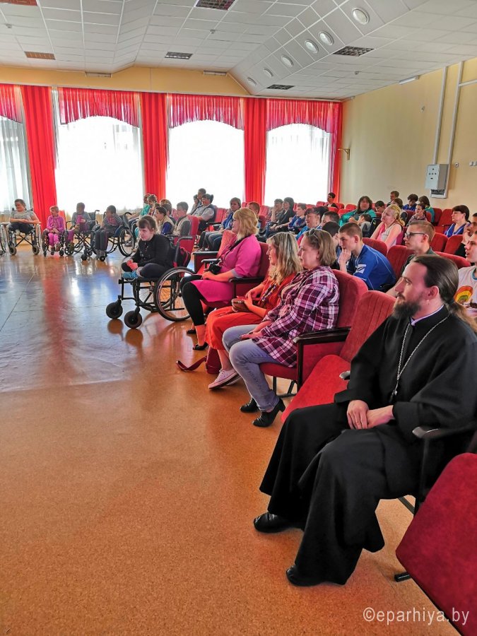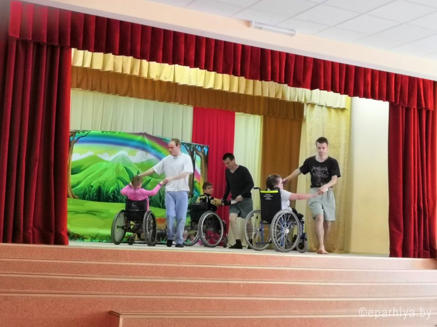 Совместное благотворительное мероприятие для детей-инвалидов, имеющих физические нарушения, Речицкого дома-интерната организовали 20 мая 2019 г., волонтеры храма святого Архангела Михаила в г. Гомеле и храма Святой Живоначальной Троицы в г. Гомеле. Праздник был посвящен Светлому Христову Воскресению и принес новые веселые улыбки, яркие впечатления, и, конечно, встречей старых друзей. Актеры Тим Театра показали воспитанникам сказку «Хвастунишка», а также музыкальными номера. Закончилось праздничное мероприятие поздравлением клирика храма святого Архангела Михаила в г. Гомеле иерея Станислава Смоляка и сладкими подарками. |