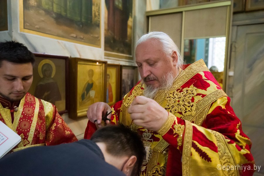 Всенощное бдение в канун дня памяти святителя Николая Чудотворца 21 мая 2019г. Высокопреосвященнейший Стефан в сослужении духовенства собора совершил в Петро-Павловском кафедральном соборе г.Гомеля. Во время богослужения Владыка совершил чин поставления (хиротесию) во чтеца и иподиакона Гришаненко Александра. По окончании богослужения Владыка возглавил Крестный ход и обратился к молящимся со словами Архипастырского назидания. |