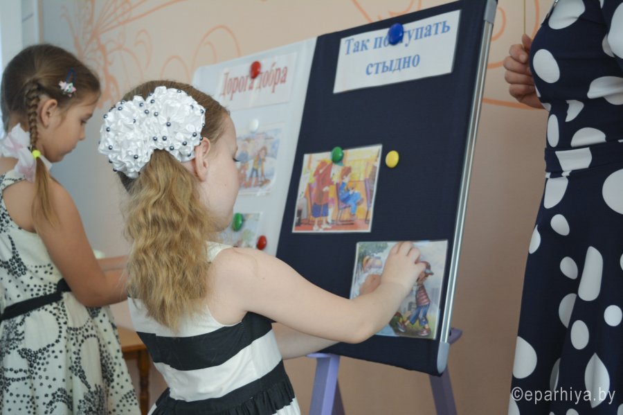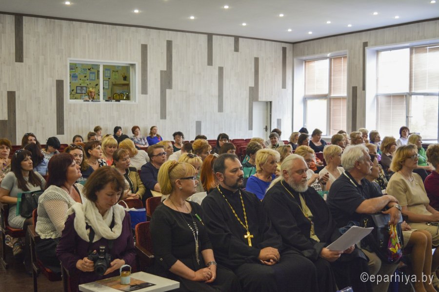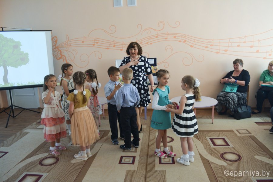 В рамках программы сотрудничества между Министерством образования Республики Беларусь и Белорусской Православной Церковью на 2015-2020 годы 23 мая в ГУО«Ясли-сад №7 г.Рогачёва» прошёл Республиканский семинар-практикум по теме: «Реализация инновационного проекта как ресурс развития системы образования региона». Участники инновационных проектов по духовно-нравственному воспитанию из разных регионов Беларуси собрались в Рогачёве, чтобы познакомиться с системой работы Рогачёвского районного отдела образования, спорта и туризма в данном направлении. В работе семинара приняли участие председатель отдела религиозного образования и катехизации Гомельской епархии протоиерей Артемий Кривицкий, благочинный Рогачёвского округа протоиерей Алексей Смотрицкий, консультант инновационного проекта, заведующий кафедрой психологии УО «Белорусский государственный педагогический университет имени Максима Танка», кандидат психологических наук, доцент Финькевич Людмила Владимировна, директор общественного объединения "Центр православного просвещения преподобной Евфросинии Полоцкой" Бройко Александр Васильевич. Семинар начался с молебна в храме святого благоверного князя Александра Невского в г.Рогачёве. Получив благословение, участники семинара прошли в районный исполнительный комитет, где после регистрации и кофе-паузы смогли познакомиться с выставкой картин местного художника Моисейченко Анатолия Михайловича «Моя православная Рогачёвщина». С приветственным словом к участникам семинара обратился заместитель председателя районного исполнительного комитета Березинский Павел Владимирович, подчеркнув, что сохранение христианских ценностей и традиций – очень важная составляющая в воспитании молодого поколения. Благочинный Рогачёвского округа протоиерей Алексей Смотрицкий выразил надежду на плодотворное сотрудничество, потому что обмен опытом полезен как для гостей, так и для принимающей стороны. Затем все участники приняли участие в практической части семинара, которая проходила на базе ясли-сад №7 г.Рогачёва. Татьяна Михайловна Маголло, заведующий учреждением образования, познакомила всех с программой и представила материалы информационно-ресурсного кабинета по духовно-нравственному воспитанию. Педагоги Баранчук М.И. и Журавлева Т.Л. провели открытые занятия в старших группах по теме «Пасхальные традиции православного народа» и «Дерево добра». Презентацию опыта работы данного учреждения образования «Игра как средство реализации программы «Духовно-нравственное воспитание дошкольников на православных традициях» провела заместитель заведующего по основной деятельности Бакадорова Н.В. Посетив пасхальный праздник «Повсюду благовест гудит!» участники семинара смогли отдохнуть душой и снова окунуться в пасхальную радость великого праздника. Далее следовала теоретическая часть семинара, в ходе которой Маголло Т.М. раскрыла тему «Влияние инновационной деятельности на развитие системы духовно-нравственного воспитания в районе». Участникам семинара была представлена широкая панорама опыта работы учреждений дошкольного образования, реализующих программу «Духовно-нравственное воспитание дошкольников на православных традициях».«Разнообразные формы работы с законными представителями воспитаннико