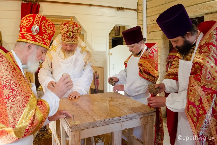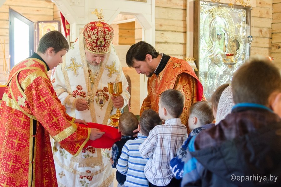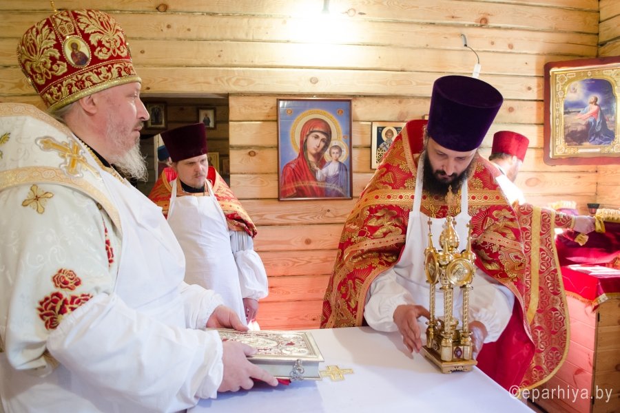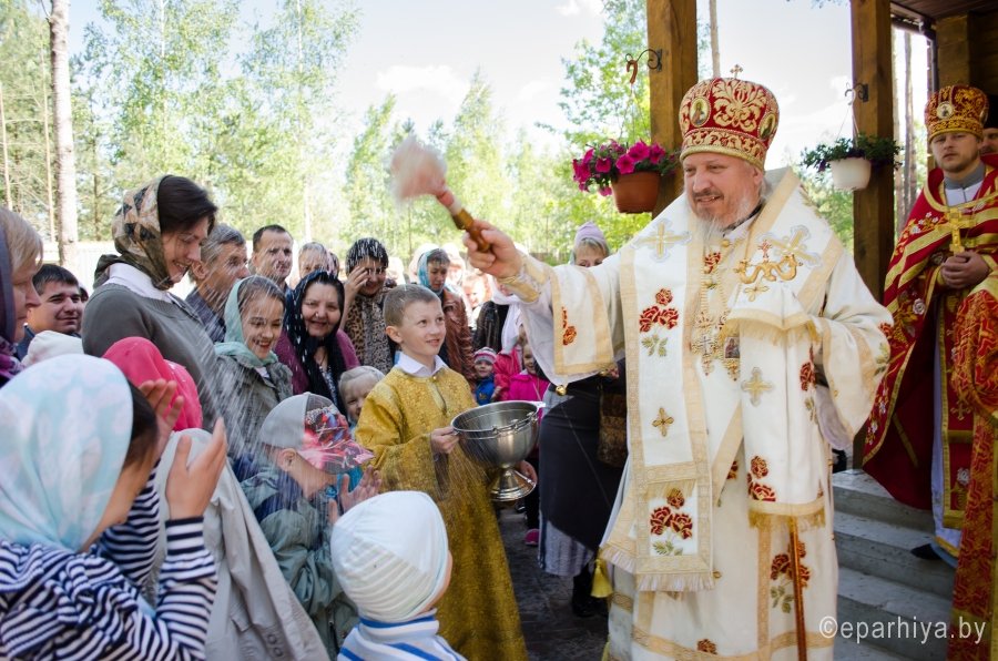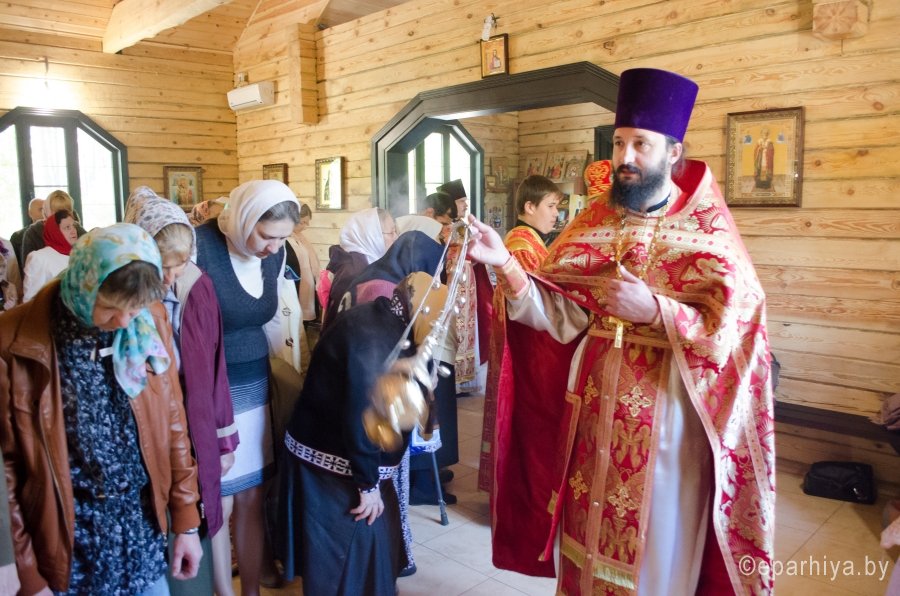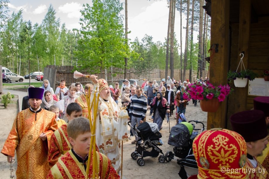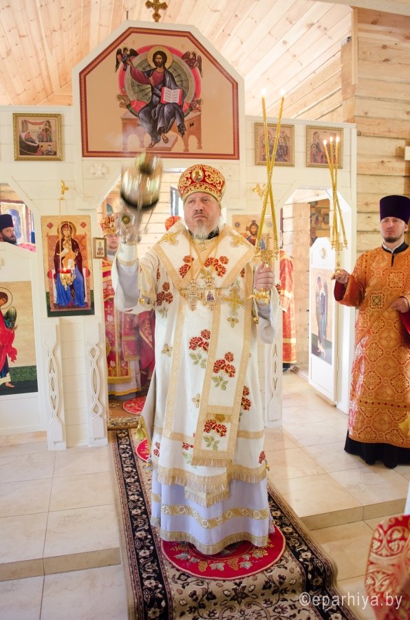 17 мая 2015г., в Неделю 6-ю по Пасхе о слепом, Преосвященнейший Стефан возглавил Божественную литургию и чин освящения храма иконы Божией Матери "Отрада и утешение" комплекса прихода храма свв.блгг.кнн.Петра и Февронии г.Гомеля. Преосвященнейшему сослужили: секретарь Гомельской епархии протоиерей Георгий Алампиев, благочинный Гомельского городского благочинного округа протоиерей Стефан Гладыщук и духовенство епархии. За литургией были вознесены сугубые прошения об умерших от СПИДа. По окончании богослужения Владыка возглавил Крестный ход и благословил молящихся святым образом. |