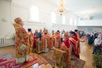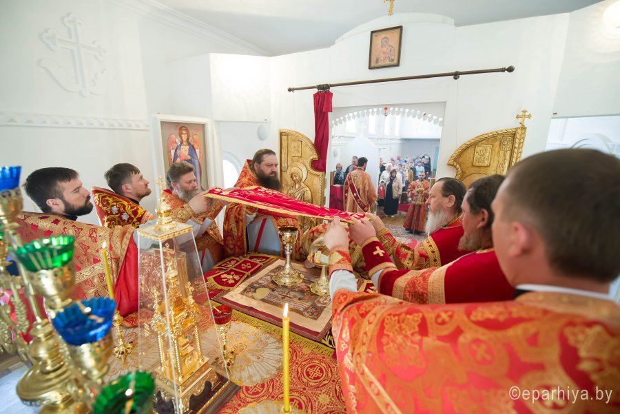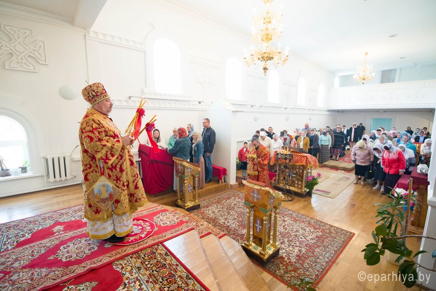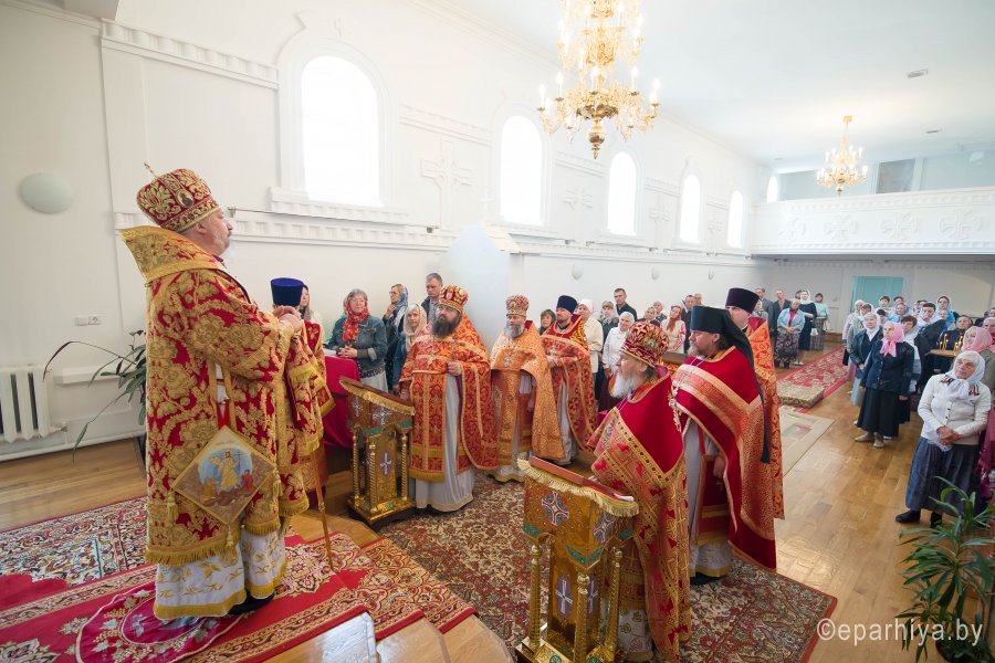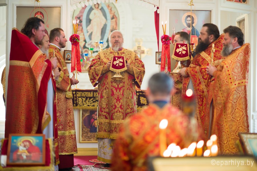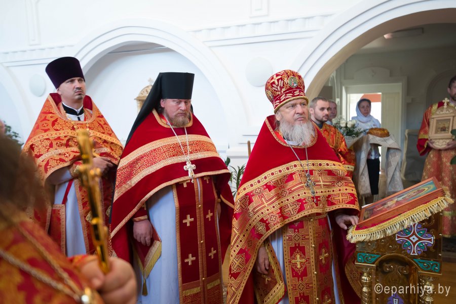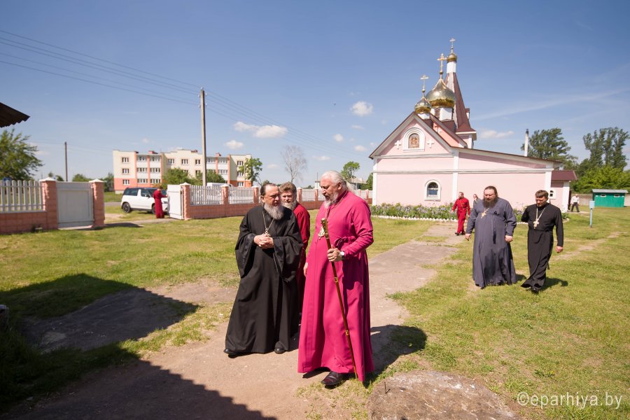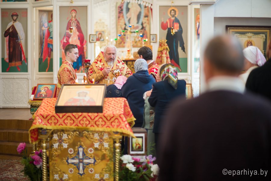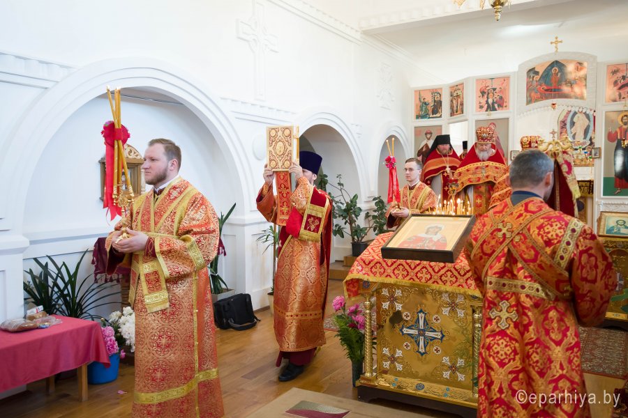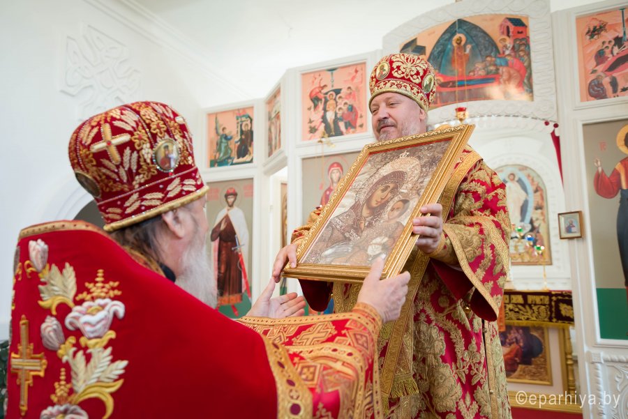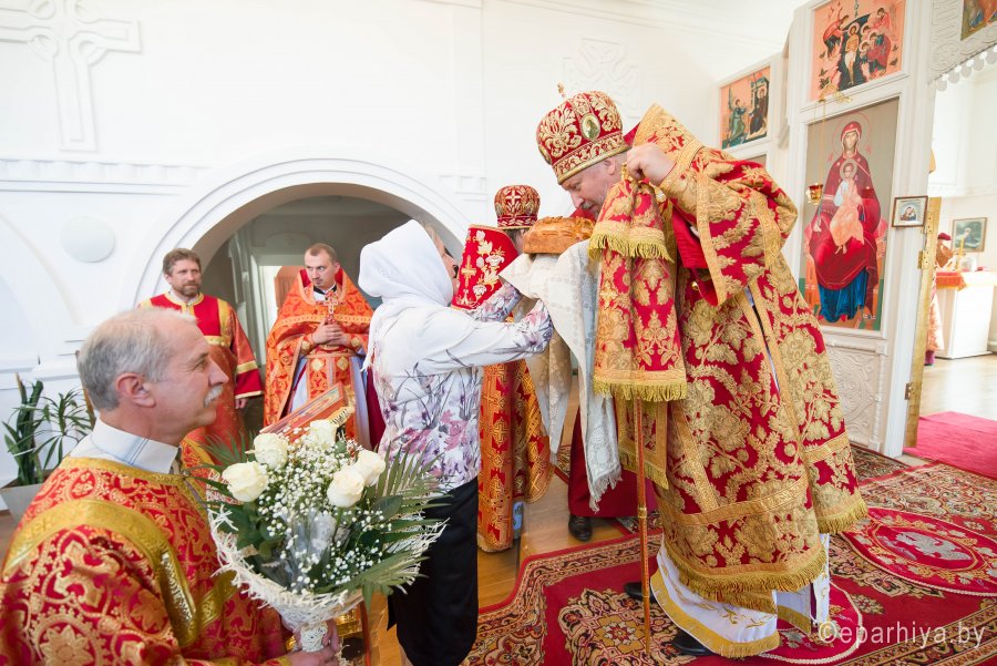 Божественную литургию в понедельник 5-й седмицы по Пасхе 27 мая 2019г. Высокопреосвященнейший Стефан совершил в храме святой великомученицы Варвары аг.Боровики. Высокопреосвященнейшему сослужили: благочинный монастырей Гомельской епархии архимандрит Амвросий (Шевцов), настоятель прихода архимандрит Алексей (Желенок) и духовенство епархии. По окончании богослужения Владыка поздравил настоятеля прихода архимандрита Алексея (Желенка) с 35-летием священнической хиротонии и преподнес в дар икону Божией Матери. |