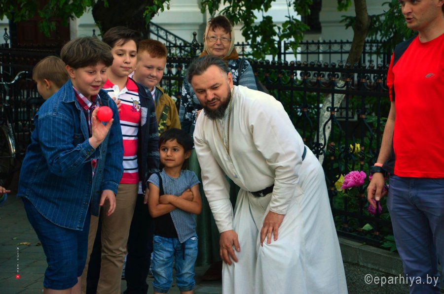 Экскурсия по монастырю, концерт классической музыки от камерного ансамбля "Классик" из Гомельских городских оркестров, патефон и ретро-коллекция пластинок, игры для детей, чай с пирогами и конфетами для всех были обозначены в программе праздника.