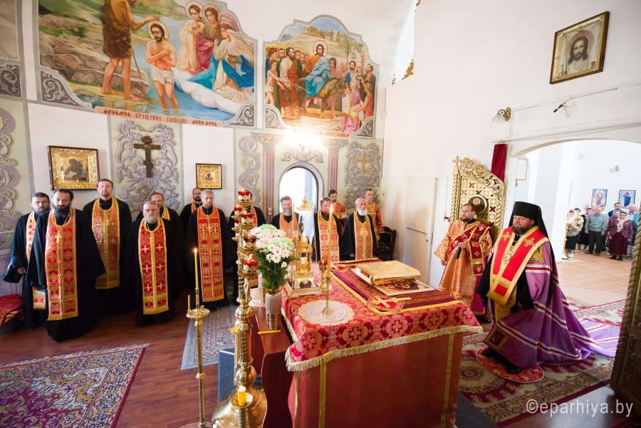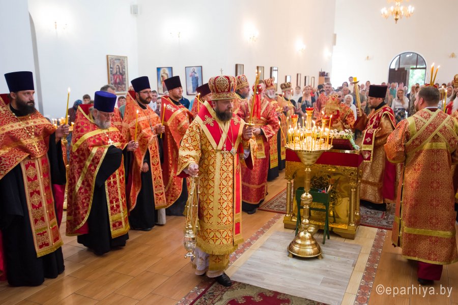 Всенощное бдение в канун дня памяти молитвенника земли гомельской святого праведного Иоанна Кормянского 30 мая 2019г. в храме святого праведного Иоанна Кормянского в г.Гомеле совершил Преосвященнейший Порфирий, епископ Лидский и Сморгонский. Преосвященнейшему сослужили: духовник Гомельской епархии протоиерей Стефан Гладыщук, благочинный монастырей Гомельской епархии архимандрит Амвросий (Шевцов), благочинный церквей г.Гомеля протоиерей Игорь Ольшанов, настоятель прихода иерей Дмитрий Жданов, председатели отделов, настоятели храмов и приглашенное духовенство. По окончании богослужения Преосвященнейший обратился к молящимся со словами Архипастырского назидания. |