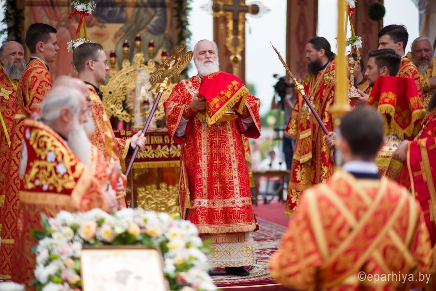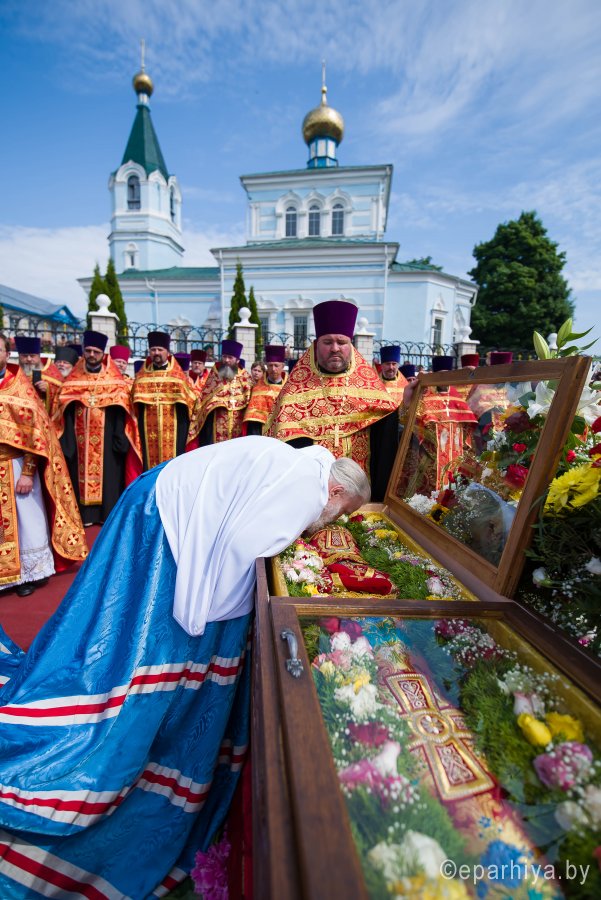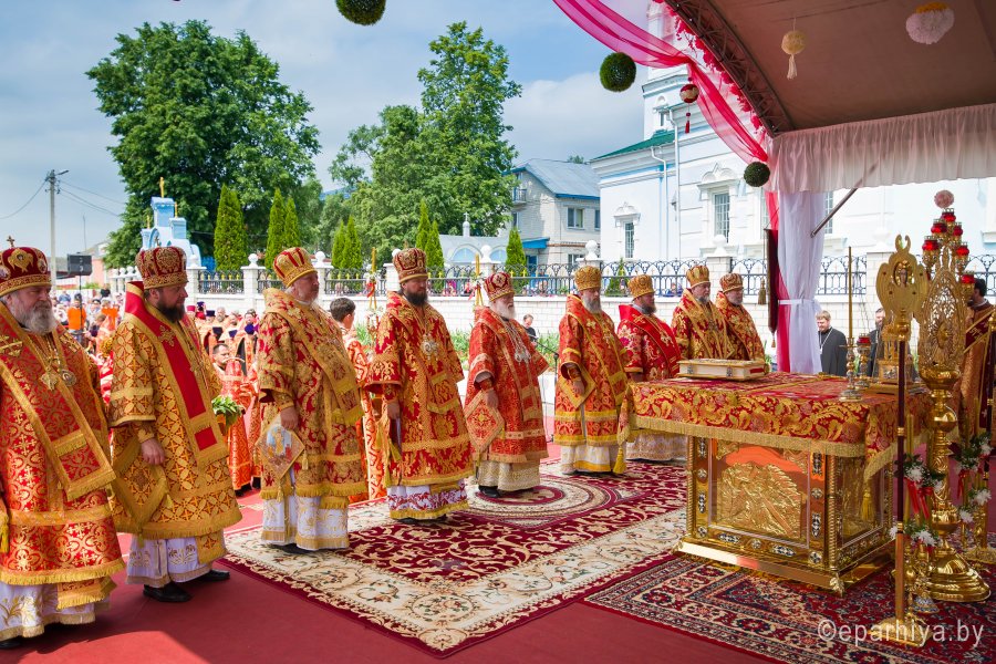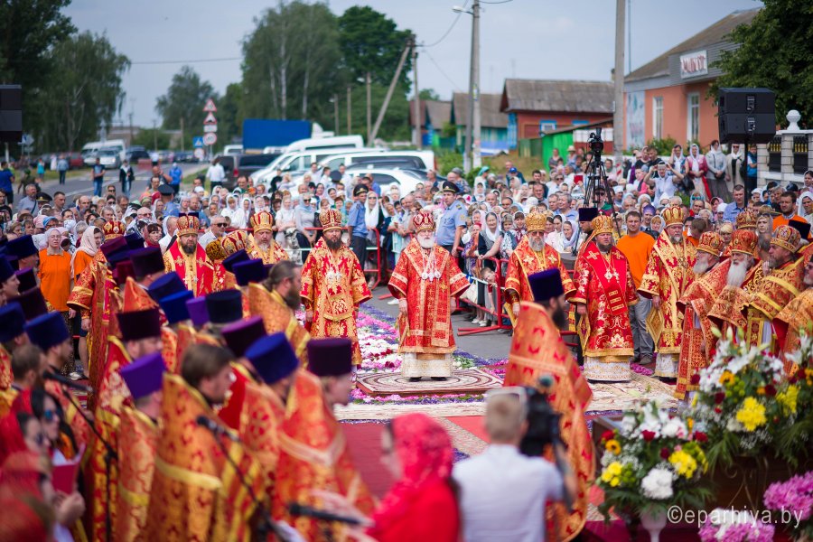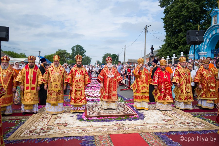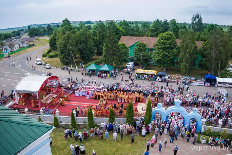 31 мая 2019г. вся полнота Православной Христовой Церкви, молитвенно чтит память подвижника веры и благочестия праведного Иоанна Кормянского, Вот уже много лет подряд в этот день небольшая деревня в Гомельской области наполняется светом и теплом, пропитывается духовностью, надеждой и верой в самые праведные чудеса. Множество верующих из разных уголков нашей родины, ближнего и дальнего зарубежья собрались сегодня у стен Покровского храма Иоанно-Кормянского женского монастыря,дабы прикоснуться к праздничной атмосфере в общих молитвах ко святому. 31 мая – день памяти неприметного труженика на ниве Христовой, святого праведного Иоанна Кормянского, который ровно 20 лет назад был причислен к лику местночтимых святых Белорусской Православной Церкви, а в ходе работы Архиерейского Собора 2017г., рассмотрев материалы было принято решение об общецерковном прославлении праведного Иоанна Кормянского. Праздничные торжества начались еще ранним утром Божественной литургией, которую совершил протоиерей Вадим Кочан, настоятель храма иконы Божией Матери "Всех Скорбящих Радость" г.Гомеля и Крестным ходом в сопровождении передвижной звонницы Спасо-Преображенского храма в д. Огородня, где были обретены нетленные мощи святого праведного Иоанна Кормянского. Праздничное богослужение в этот знаменательный день возглавляет митрополит Минский и Заславский Павел. При въезде в Добрушский район Высокопреосвященнейшего Павла встречали Высокопреосвященный Стефан, архиепископ Гомельский и Жлобинский, заместитель председателя Гомельского областного исполнительного комитета Владимир Александрович Привалов, председатель Добрушского райисполкома Мохорева Ольга Федоровна и представители государственной власти. Обращаясь к присутствующим Владыка Павел поздравил всех с днем памяти св. прав. Иоанна Кормянского, преподав всем свое архипастырское благословение. За Божественной литургией Высокопреосвященному митрополиту Павлу сослужили: Никодим, митрополит Житомирский и Новоград-Волынский; Иоанн, архиепископ Брестский и Кобринский; Стефан, архиепископ Гомельский и Жлобинский; Иоанн, епископ Золотоношский, викарий Черкасской епархии; Сергий, епископ Вяземский и Гагаринский; Владимир, епископ Клинцовский и Трубчевский; Порфирий, епископ Лидский и Сморгонский; Игнатий, епископ Боровлянский, викарий Минской епархии. Архипастырям сослужили: наместник Гомельского Никольского мужского монастыря, председатель Синодальной комиссии по канонизации святых Белорусской Православной Церкви архимандрит Амвросий (Шевцов); секретарь Минской епархии протоиерей Андрей Волков; благочинный Светлогорского округа протоиерей Александр Кисель; благочинный Речицкого окрыга протоиерей Алексий Пешко; благочинный Рогачевского округа протоиерей Алексий Смотрицкий; настоятель прихода храма великомученика Георгия Победоносца г.Гомеля протоиерей Димитрий Гончаров; председатель Отдела социального служения и церковной благотворительности Гомельской епархии протоиерей Владимир Силенко; благочинный Лоевского округа иерей Дмитрий Чварков; клирики Гомельской епархии и приглашенные гости в священном сане, сопровождающие архипастырей. На богослужении присутствовали: председатель Добрушского районного исполнительного комитета Ольга Фёдоровна Мохорева, нач