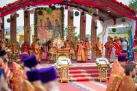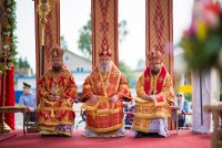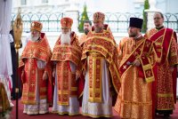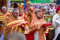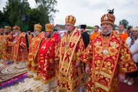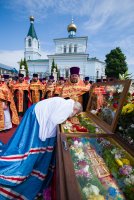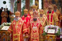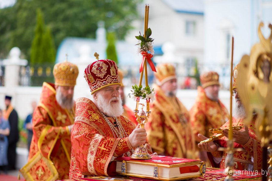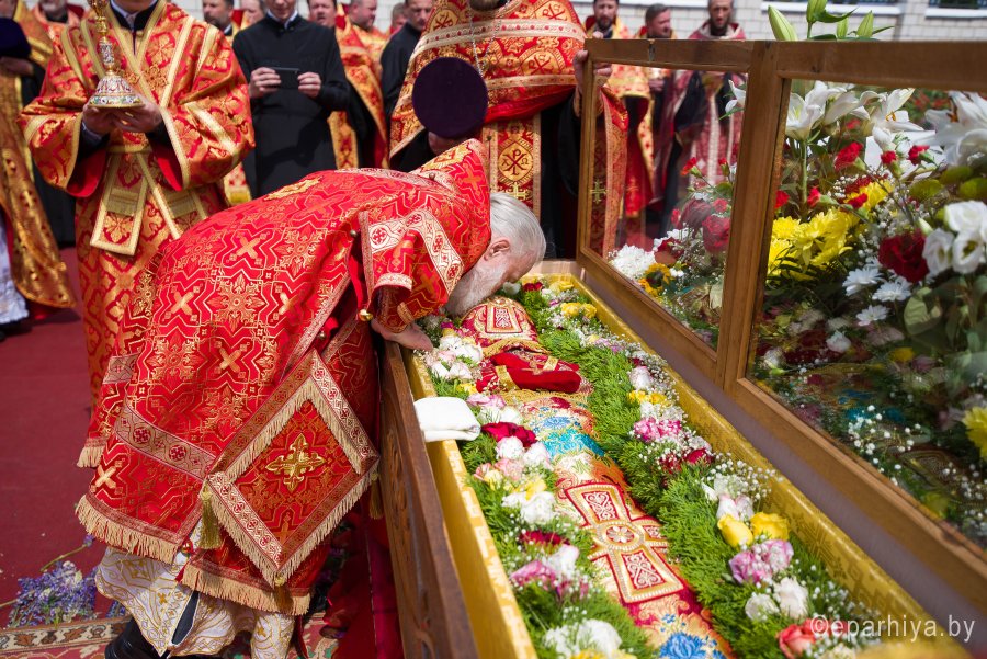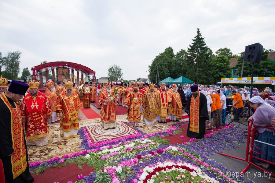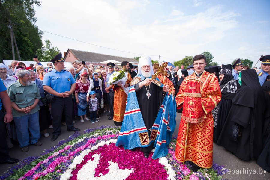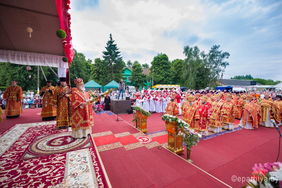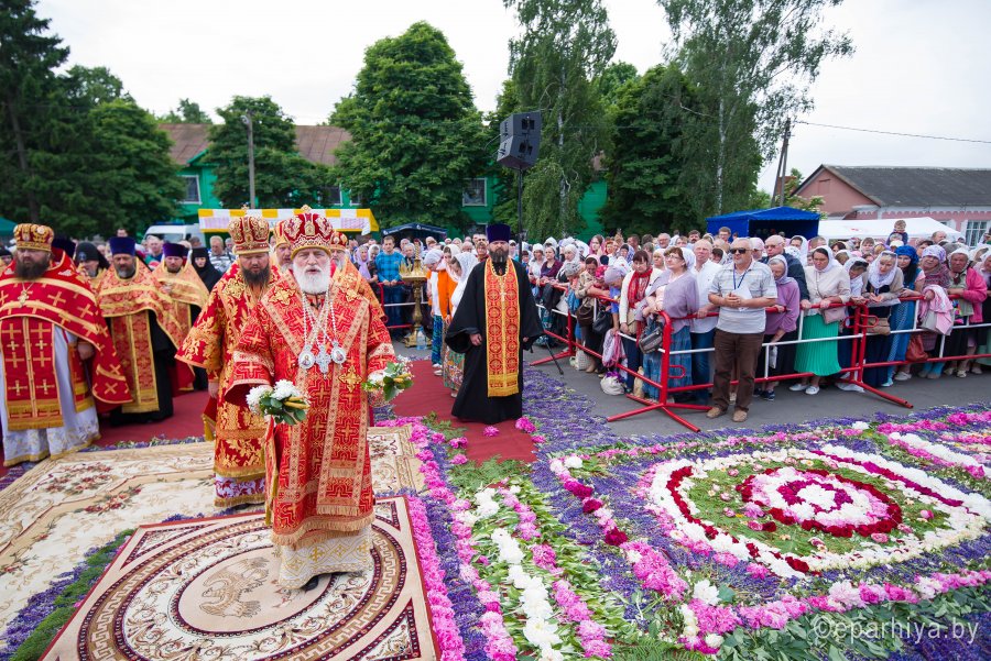 31 мая 2019г. вся полнота Православной Христовой Церкви, молитвенно чтит память подвижника веры и благочестия праведного Иоанна Кормянского, Вот уже много лет подряд в этот день небольшая деревня в Гомельской области наполняется светом и теплом, пропитывается духовностью, надеждой и верой в самые праведные чудеса. Множество верующих из разных уголков нашей родины, ближнего и дальнего зарубежья собрались сегодня у стен Покровского храма Иоанно-Кормянского женского монастыря,дабы прикоснуться к праздничной атмосфере в общих молитвах ко святому. 31 мая – день памяти неприметного труженика на ниве Христовой, святого праведного Иоанна Кормянского, который ровно 20 лет назад был причислен к лику местночтимых святых Белорусской Православной Церкви, а в ходе работы Архиерейского Собора 2017г., рассмотрев материалы было принято решение об общецерковном прославлении праведного Иоанна Кормянского. Праздничные торжества начались еще ранним утром Божественной литургией, которую совершил протоиерей Вадим Кочан, настоятель храма иконы Божией Матери "Всех Скорбящих Радость" г.Гомеля и Крестным ходом в сопровождении передвижной звонницы Спасо-Преображенского храма в д. Огородня, где были обретены нетленные мощи святого праведного Иоанна Кормянского. Праздничное богослужение в этот знаменательный день возглавляет митрополит Минский и Заславский Павел. При въезде в Добрушский район Высокопреосвященнейшего Павла встречали Высокопреосвященный Стефан, архиепископ Гомельский и Жлобинский, заместитель председателя Гомельского областного исполнительного комитета Владимир Александрович Привалов, председатель Добрушского райисполкома Мохорева Ольга Федоровна и представители государственной власти. Обращаясь к присутствующим Владыка Павел поздравил всех с днем памяти св. прав. Иоанна Кормянского, преподав всем свое архипастырское благословение. За Божественной литургией Высокопреосвященному митрополиту Павлу сослужили: Никодим, митрополит Житомирский и Новоград-Волынский; Иоанн, архиепископ Брестский и Кобринский; Стефан, архиепископ Гомельский и Жлобинский; Иоанн, епископ Золотоношский, викарий Черкасской епархии; Сергий, епископ Вяземский и Гагаринский; Владимир, епископ Клинцовский и Трубчевский; Порфирий, епископ Лидский и Сморгонский; Игнатий, епископ Боровлянский, викарий Минской епархии. Архипастырям сослужили: наместник Гомельского Никольского мужского монастыря, председатель Синодальной комиссии по канонизации святых Белорусской Православной Церкви архимандрит Амвросий (Шевцов); секретарь Минской епархии протоиерей Андрей Волков; благочинный Светлогорского округа протоиерей Александр Кисель; благочинный Речицкого окрыга протоиерей Алексий Пешко; благочинный Рогачевского округа протоиерей Алексий Смотрицкий; настоятель прихода храма великомученика Георгия Победоносца г.Гомеля протоиерей Димитрий Гончаров; председатель Отдела социального служения и церковной благотворительности Гомельской епархии протоиерей Владимир Силенко; благочинный Лоевского округа иерей Дмитрий Чварков; клирики Гомельской епархии и приглашенные гости в священном сане, сопровождающие архипастырей. На богослужении присутствовали: председатель Добрушского районного исполнительного комитета Ольга Фёдоровна Мохорева, нач