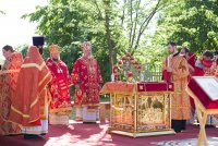 Божественную литургию в субботу 5-й седмицы по Пасхе 1 июня 2019г. Высокопреосвященнейший Стефан, архиепископ Гомельский и Жлобинский и Преосвященнейший Иоанн, епископ Золотоношский, викарий Черкасской епархии совершили на месте строительства храма Скитковской иконы Божией Матери в г.Гомеле. Архипастырям сослужили: благочинный Гомельского городского округа протоиерей Игорь Ольшанов, настоятель храма Скитковской иконы Божией Матери иерей Дмитрий Загоруев и духовенство епархии. По окончании богослужения Высокопреосвященнейший Стефан поздравил причастников с принятием Святых Христовых Таин и обратился к молящимся со словами Архипастырского назидания. |