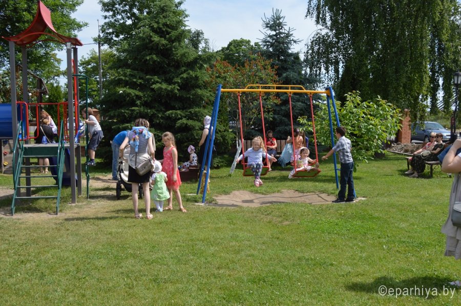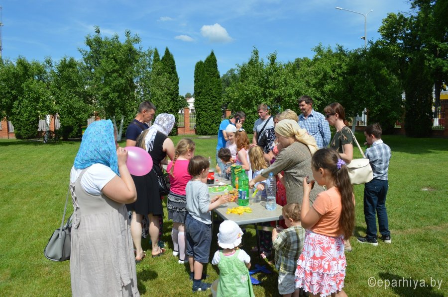 2 июня, по окончании Божественной литургии, в храмах Речицкого благочинного округа поздравляли своих юных прихожан с Международным Днём защиты детей. Настоятель прихода храма святой преподобной Евфросинии Полоцкой д. Озерщина Речицкого района, протоиерей Иоанн Вечорка вручил детям сладкие подарки. На храмовой территории Свято-Успенского собора г. Речицы, возле спортивной площадки, для детей был накрыт праздничный стол со сладким угощением. |