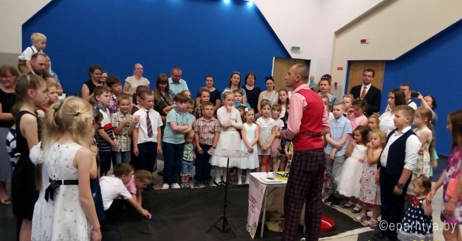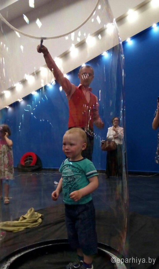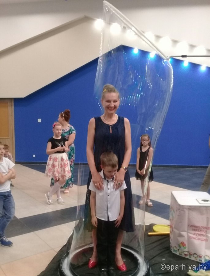 1 июня, в первый день лета, во многих странах отмечается Международный день защиты детей. Даже природа, своим солнечным теплым днем, привнесла яркие краски летнего настроения. Радостный детский смех раздавался во многих уголках нашего города на протяжении всего дня. По благословению Высокопреосвященнейшего Стефана в этот день, для детей воскресной школы Свято-Петро-Павловского собора, в ГЦК прошло шоу Мыльных пузырей с участием аниматоров. Организаторами мероприятия выступили Собор Петра и Павла и отдел по работе с молодежью Гомельской епархии. Аниматоры не оставили равнодушным ни одного присутствующего в своем феерическом шоу. Родители воспитанников смогли окунуться в мир детства, а дети – почувствовать себя настоящими "магами-волшебниками". Можно было увидеть трюки с мыльными пузырями и то, как в умелых руках актеров-профессионалов, переливающиеся всеми цветами радуги пузыри, превращаются в разнообразные фигуры. По завершению представления все дети получили сладкие подарки. |