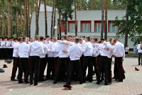 8 июня в Лицее МЧС состоялся 12-й торжественный выпуск учащихся. Вчерашние лицеисты в торжественной обстановке получили нагрудные знаки об окончании учебного заведения и аттестаты о среднем образовании. Почётными гостями мероприятия стали первый заместитель Министра по чрезвычайным ситуациям Республики Беларусь Александр Худолеев, начальник Университета МЧС Иван Полевода, руководители территориальных управлений МЧС, родители и близкие родственники выпускников, офицеры различных силовых ведомств нашей страны, выпускники лицея разных лет. Радость и волнение торжественного мероприятия разделил с выпускниками клирик храма святого Архангела Михаила в г. Гомеле иерей Станислав Смоляк. По традиции в честь выпуска лицея была установлена особая памятная плита. Праздник украсили творческие номера музыкальных коллективов. После прощального вальса выпускники в последний раз прошли маршем. В последний раз в этот день в стенах учебного заведения прозвучала команда: «Вольно!». |