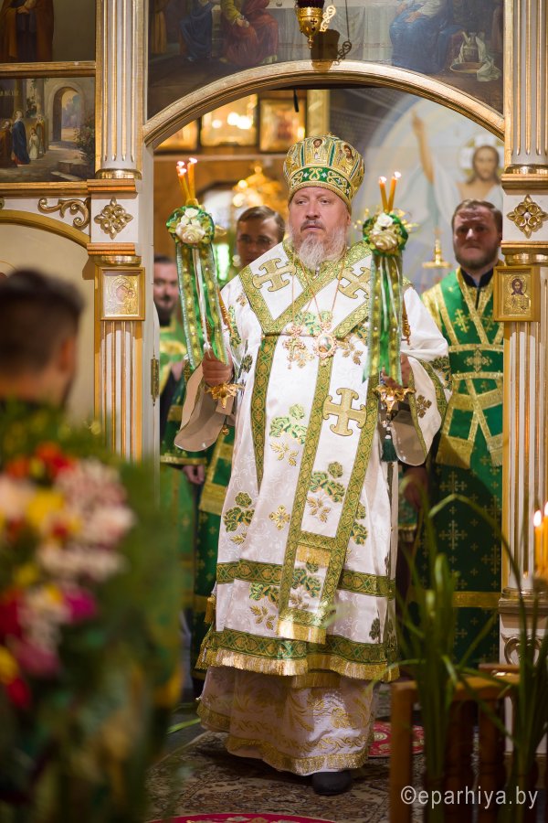 16 июня Святая Православная Церковь отмечает великий двунадесятый праздник Пятидесятницы или день Святой Троицы. Этот праздник отмечается в пятидесятый день после Пасхи в воспоминание сошествия Святого Духа на учеников Христовых — апостолов. В канун этого великого праздника Высокопреосвященнейший Стефан, архиепископ Гомельский и Жлобинский совершил всенощное бдение в храме Святой Живоначальной Троицы в г. Гомеле. Преосвященному сослужили: благочинный церквей Гомельского городского округа протоиерей Игорь Ольшанов, настоятель храма протоиерей Владимир Масалитин и духовенство епархии. По окончании богослужения Владыка обратился к молящимся со словами Архипастырского назидания. |