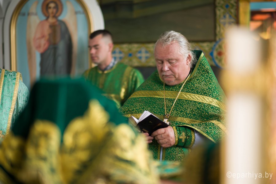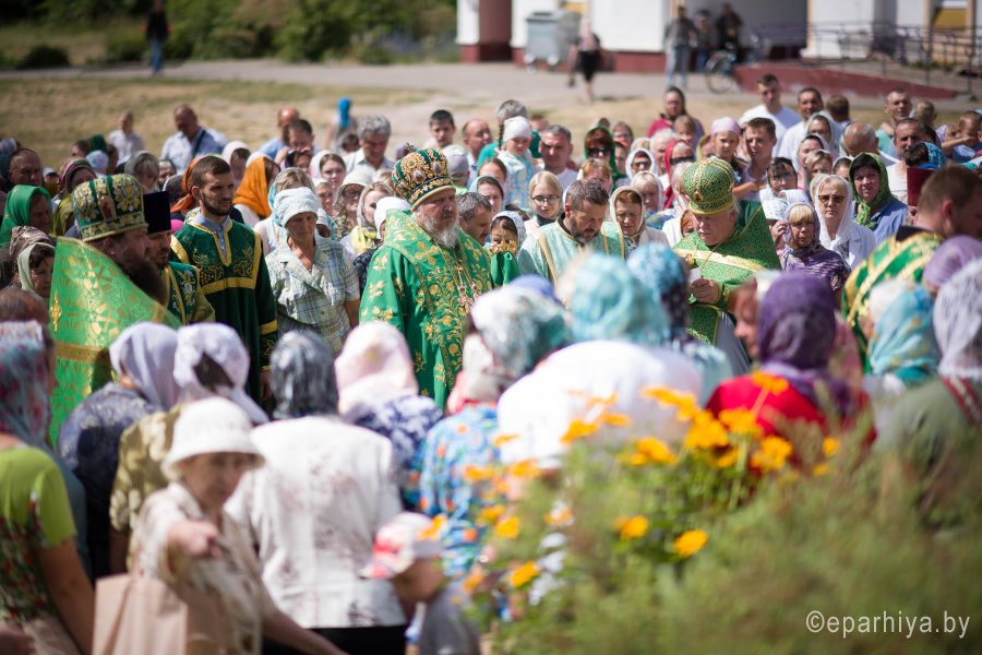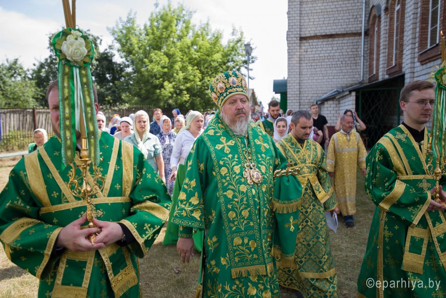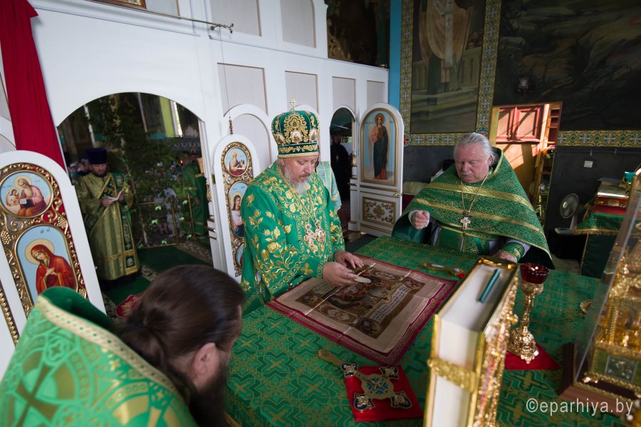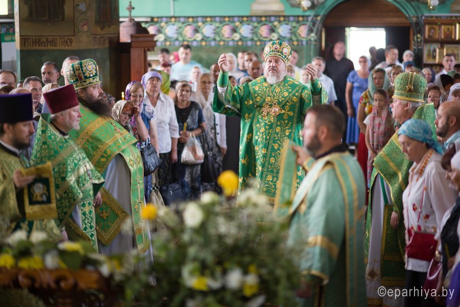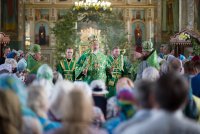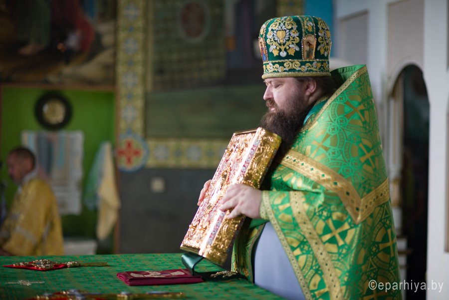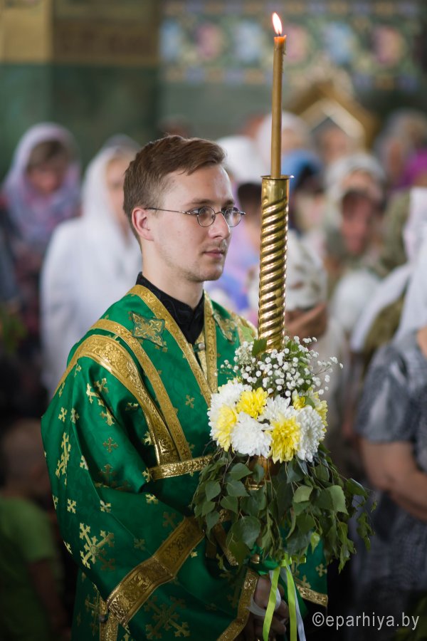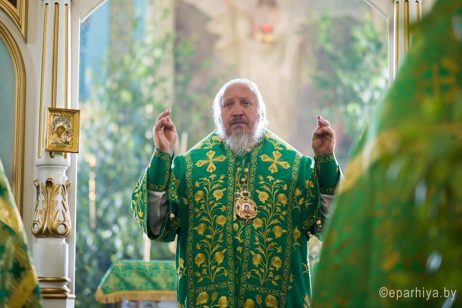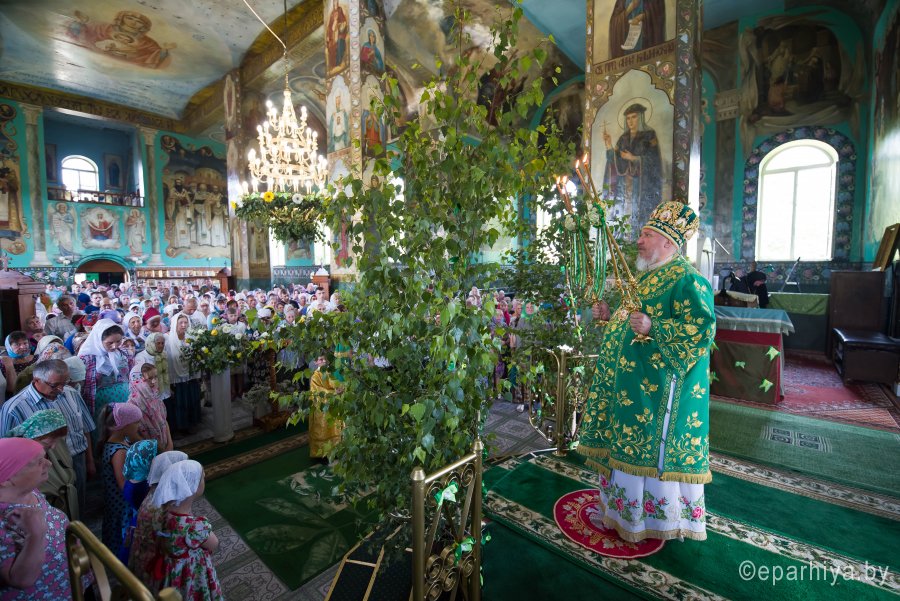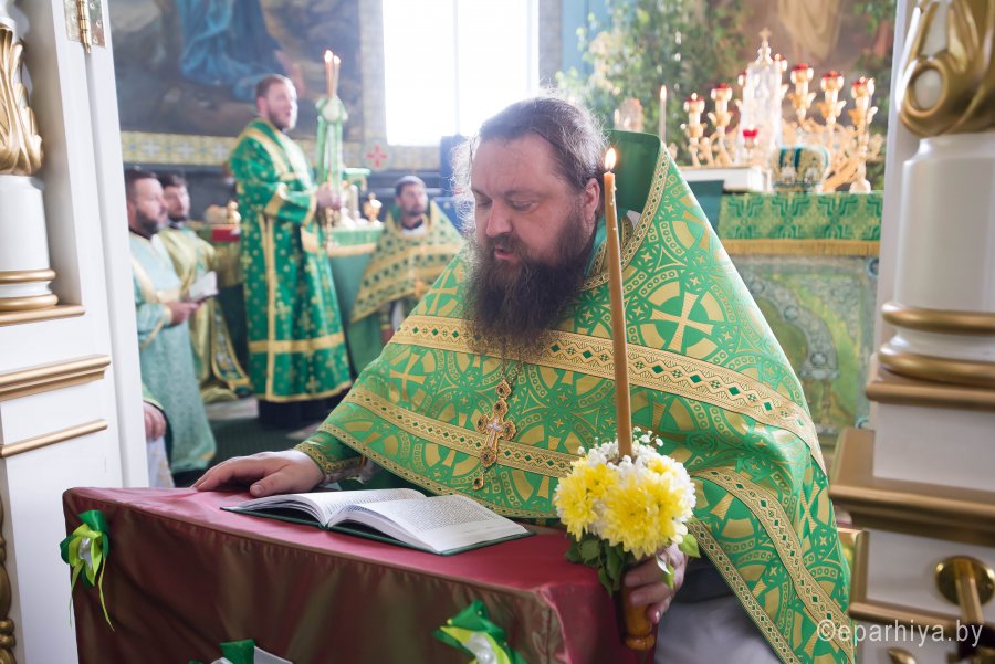 Изумрудный цвет заполнил храм, воздух наполнен запахом цветов и молодой зелени, священники в зеленых облачениях – все православные встречают день Святой Троицы. Божественную литургию 16 июня 2019г. в Свято-Троицком кафедральном соборе г.Жлобина в день Святой Троицы совершил Высокопреосвященнейший Стефан архиепископ Гомельский и Жлобинский. Высокопреосвященному сослужили: благочинный монастырей Гомельской епархии архимандрит Амвросий(Шевцов) благочинный Жлобинского благочинного округа протоиерей Василий Пилипенко и духовенство собора. Радость и торжественность богослужения звучала в песнопениях, исполненных хором по особому праздничному чину. Во время службы ощущалась особая атмосфера, в эти дни впервые после Пасхи поется молитва “Царю Небесный”, а после Литургии служилась вечерня, во время которой были прочитаны коленопреклоненные молитвы, завершив послепасхальный период, во время которого в храмах не совершается коленопреклонений и земных поклонов. По окончании богослужения Владыка поздравил причастников с принятием Святых Христовых Таин, обратился к молящимся со словами Архипастырского назидания и напомнил историю Пятидесятницы. День Святой Троицы празднуется на пятидесятый день после Пасхи, отсюда и его второе название Пятидесятница. В этот день Православная Церковь вспоминает Евангельское событие – сошествие Духа Святого на учеников Христовых в виде огненных языков. На пятидесятый день по воскресении Христовом апостолы вместе со Пресвятой Девой Марией, с некоторыми женами-мироносицами и другими верующими собрались в Иерусалиме в Сионской горнице. Именно там произошло Сошествие Святого Духа на учеников Христа: « … внезапно сделался шум с неба, как бы от несущегося сильного ветра, и наполнил весь дом, где они находились. И явились им разделяющиеся языки, как бы огненные, и почили по одному на каждом из них. И исполнились все Духа Святого, и начали говорить на иных языках, как Дух давал им провещевать.» (Деян2:2-4). После сего апостолы могли проповедовать Слово Божие, нести благую весть о воскресшем Христе и о бессмертии человеческой души всем народам. |
