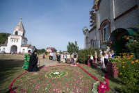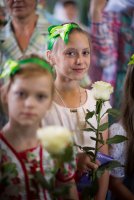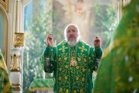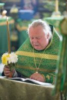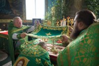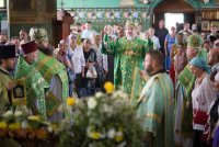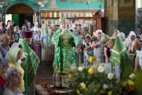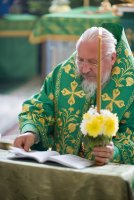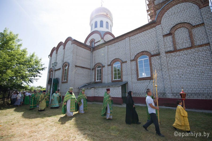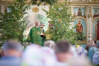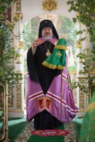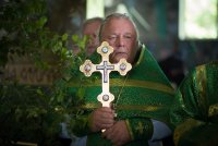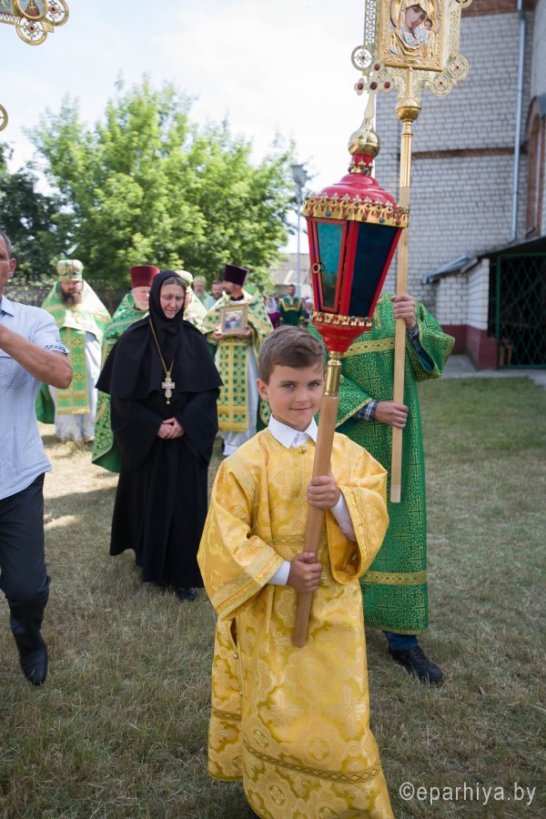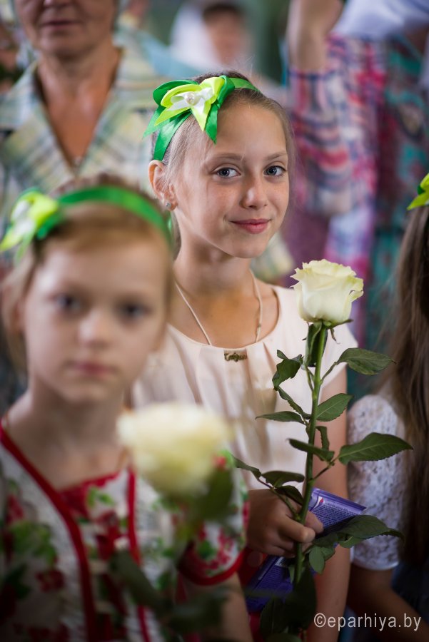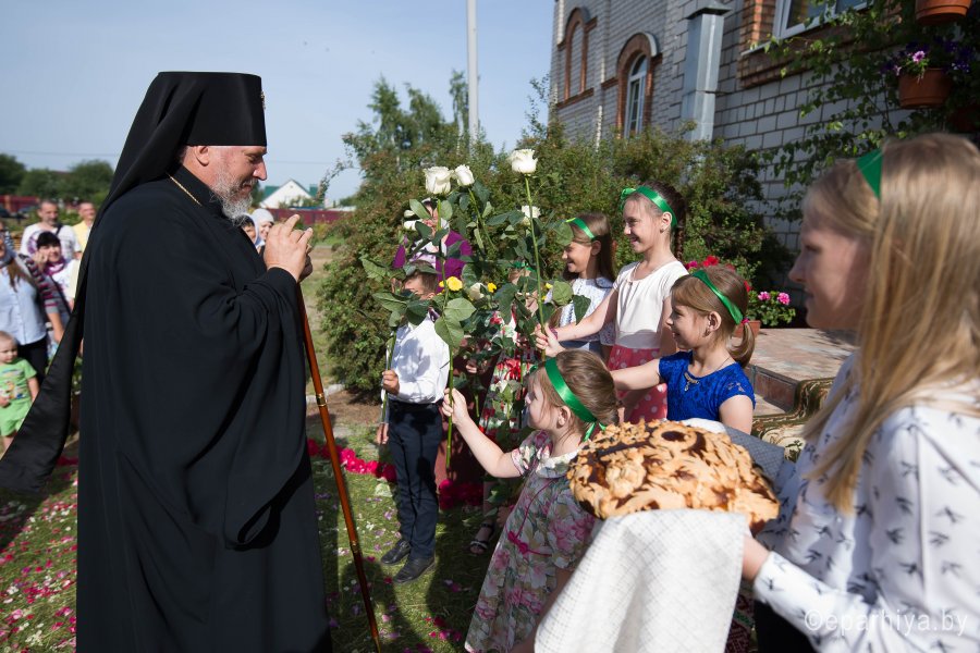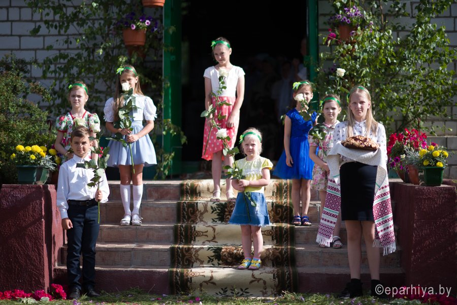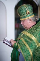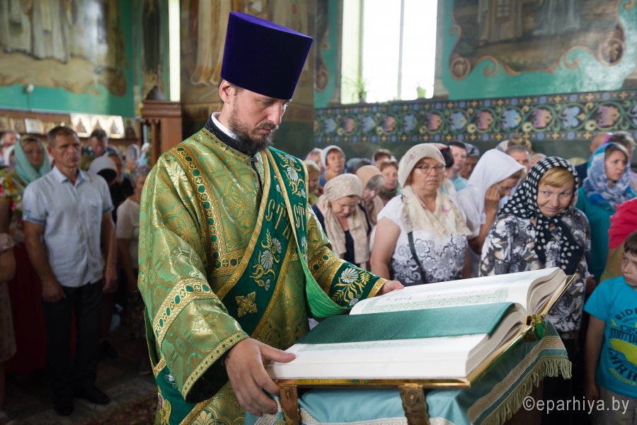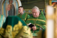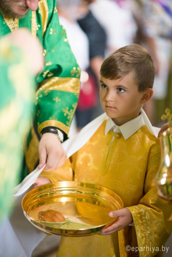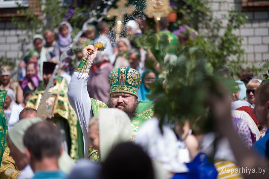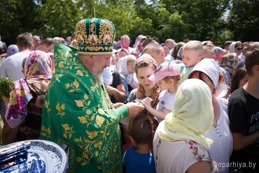 Изумрудный цвет заполнил храм, воздух наполнен запахом цветов и молодой зелени, священники в зеленых облачениях – все православные встречают день Святой Троицы. Божественную литургию 16 июня 2019г. в Свято-Троицком кафедральном соборе г.Жлобина в день Святой Троицы совершил Высокопреосвященнейший Стефан архиепископ Гомельский и Жлобинский. Высокопреосвященному сослужили: благочинный монастырей Гомельской епархии архимандрит Амвросий(Шевцов) благочинный Жлобинского благочинного округа протоиерей Василий Пилипенко и духовенство собора. Радость и торжественность богослужения звучала в песнопениях, исполненных хором по особому праздничному чину. Во время службы ощущалась особая атмосфера, в эти дни впервые после Пасхи поется молитва “Царю Небесный”, а после Литургии служилась вечерня, во время которой были прочитаны коленопреклоненные молитвы, завершив послепасхальный период, во время которого в храмах не совершается коленопреклонений и земных поклонов. По окончании богослужения Владыка поздравил причастников с принятием Святых Христовых Таин, обратился к молящимся со словами Архипастырского назидания и напомнил историю Пятидесятницы. День Святой Троицы празднуется на пятидесятый день после Пасхи, отсюда и его второе название Пятидесятница. В этот день Православная Церковь вспоминает Евангельское событие – сошествие Духа Святого на учеников Христовых в виде огненных языков. На пятидесятый день по воскресении Христовом апостолы вместе со Пресвятой Девой Марией, с некоторыми женами-мироносицами и другими верующими собрались в Иерусалиме в Сионской горнице. Именно там произошло Сошествие Святого Духа на учеников Христа: « … внезапно сделался шум с неба, как бы от несущегося сильного ветра, и наполнил весь дом, где они находились. И явились им разделяющиеся языки, как бы огненные, и почили по одному на каждом из них. И исполнились все Духа Святого, и начали говорить на иных языках, как Дух давал им провещевать.» (Деян2:2-4). После сего апостолы могли проповедовать Слово Божие, нести благую весть о воскресшем Христе и о бессмертии человеческой души всем народам. |
