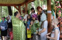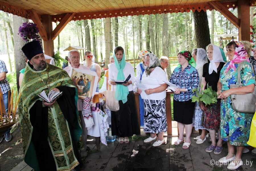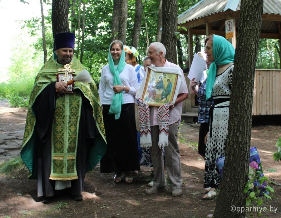 16 июня, в день Святой Троицы, в Рогачёвском благочинии состоялся праздник на Свято-Троицкой кринице. По доброй традиции в праздник Пятидесятницы от разрушенного храма в д.Свержень Крестный ход с молитвами и песнопениями направляется к местечку, которое в народе называют Сверженская проща. Настоятель прихода храма Покрова Пресвятой Богородицы протоиерей Виталий Левчук совершил чин малого освящения воды. После молебна и освящения студёной воды купели, праздник продолжился концертной программой. С приветственным словом к паломникам обратились протоиерей Виталий Левчук и председатель районного совета депутатов Валентина Никифоровна Ганкович. Валентина Никифоровна от лица районного исполнительного комитета вручила благодарность приходу храма Покрова Пресвятой Богородицы аг.Довск за оказание содействия в организации и проведении ежегодного праздника на Свято-Троицкой кринице. Сверженская проща – место, которое любят посещать не только рогачёвцы, но и гости нашего города. Приятно видеть, что за пять лет криница преобразилась: построена купель, деревянные помосты, скамейки для отдыха в тенистом месте. В любую пору года люди стремятся в этот живописный уголок напиться и взять с собой воды из целебного источника. В праздник Святой Троицы здесь особенно многолюдно. Как и в былые времена, развернулась ярмарка. Выступления музыкальных коллективов Рогачевского района создали неповторимую атмосферу народного праздника. Особые слова благодарности за возрождение традиций прозвучали в адрес директора Серебрянского сельского дома культуры Алтуховой Жанны Васильевны и индивидуального предпринимателя Владимира Дробленкова, который вносит большой вклад в возрождение источника. Добрая традиция праздновать День рождения Церкви в историческом для Рогачёвщины месте дала возможность гостям и жителям нашего района не только отдохнуть душой и телом, но и прикоснуться к православной культуре белорусского народа. |