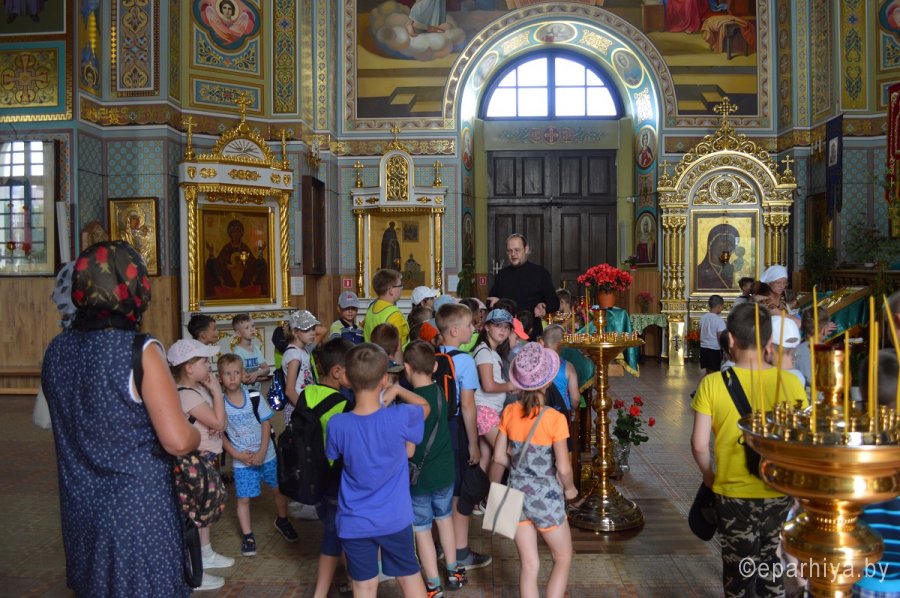 Что больше всего запоминается детям во время школьных каникул? По мнению ребят из школьных оздоровительных лагерей, это когда проходят события, наполненные интересными встречами, во время которых есть возможность получить новые знания. Одним из таких событий они с уверенностью теперь называют экскурсию в Свято-Успенский собор г. Речицы. Наверное, все ребята проходили мимо здания собора, любуясь его монументальностью и великолепием. Многие из них были внутри храма. Но когда, придя на экскурсию в собор, они буквально одни остались под его сводами и только тихий голос священнослужителя с рассказом о сложной вековой истории храма нарушал покой древних стен, тогда только дети по-другому взглянули на это величественное здание, так гармонично вписавшееся в уже привычный городской пейзаж. И уже хочется узнать о смысле Библейских сюжетов, изображенных на росписях, и слово Бог начинает быть живым. С 8-го по 19 июня 2019 года клирики Свято-Успенского собора, иерей Николай Савостьянов и диакон Сергий Порошин знакомили с историй храма учащихся средних школ №№ 2, 8, 5, 11, 9, 1 и 7 г. Речицы, ДЮСШ № 2 и Речицкой районной гимназии. Лето только началось и впереди ещё много интересных встреч. |