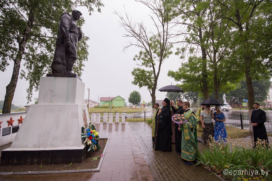 22 июня 2019г., в Отдание праздника Пятидесятницы, Высокопреосвященнейший Стефан, архиепископ Гомельский и Жлобинский совершил Божественную литургию в храме святого Архистратига Михаила аг. Тихиничи. Высокопреосвященному сослужили: благочинный церквей Рогачевского округа протоиерей Алексей Смотрицкий, настоятель прихода протоиерей Николай Степанов и духовенство епархии. По окончании богослужения Владыка поздравил причастников с принятием Святых Христовых Таин, обратился к молящимся со словами Архипастырского назидания и в память об этом дне раздал иконки. 22 июня 1941 года наша страна приняла на себя первый удар Великой Отечественной войны. Сегодня, в День всенародной памяти жертв войны Высокопреосвященнейший Стефан возглавил литию у памятника воинам погибшим во время ВОВ в аг. Тихиничи, установленному на братской могиле, в которой похоронено 553 воина. Там возложили цветы и вспомнили тех, кто героически отдал свою жизнь за Родину. |