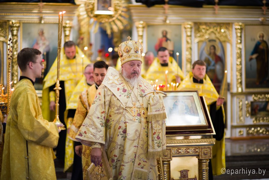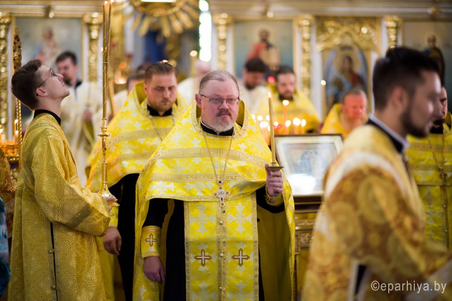 Всенощное бдение в канун Недели 1-й по Пятидесятнице, Всех святых, Высокопреосвященнейший Стефан, архиепископ Гомельский и Жлобинский совершил в Петро-Павловском кафедральном соборе г.Гомеля. Высокопреосвященнейшему сослужили: секретарь Гомельской епархии протоиерей Георгий Алампиев и духовенство собора. По окончании богослужения Владыка поздравил молящихся с праздником и обратился со словами Архипастырского назидания. |