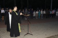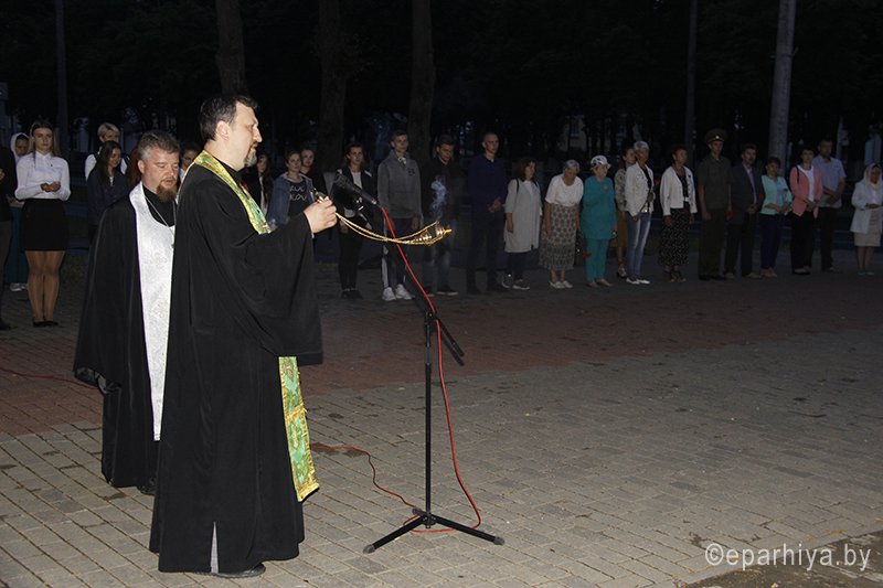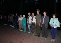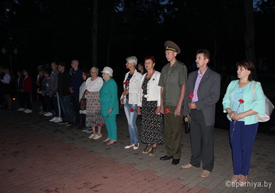 Свечи памяти зажгли рогачёвцы 22 июня в 4 часа утра у Мемориала воинской Славы. День всенародной памяти жертв Великой Отечественной войны во второй раз собрал в этом символическом месте неравнодушных горожан, чтобы почтить память соотечественников, погибших в боях и замученных в фашистской неволе, умерших в тылу от голода и лишений. Тишину спокойно спящего города, как и 78 лет назад, растревожил голос Левитана: "Внимание, говорит Москва! Передаем важное правительственное сообщение. Граждане и гражданки Советского Союза, сегодня в 4 часа утра без всякого объявления войны германские вооруженные силы атаковали границы Советского Союза. Началась Великая Отечественная война советского народа против немецко-фашистских захватчиков. Наше дело правое! Враг будет разбит! Победа будет за нами!" И сегодня ему ответили не взрывы снарядов и автоматные очереди, а мирное щебетание проснувшихся птиц. С приветственным словом к участникам акции обратились заместитель председателя районного исполнительного комитета Березинский Павел Владимирович и протоиерей Александр Атрощенко, отметив, что нам необходимо хранить память для того, чтобы в истории нашей страны не было больше таких чёрных дат. Заупокойную литию по погибшим отслужили священнослужители храма святого благоверного князя Александра Невского в г.Рогачёве протоиерей Александр Атрощенко и протоиерей Георгий Мартышевский. Над спящим городом лилась молитва. "Вечная память!" - звучали её слова в душе и во время минуты молчания, и во время возложения цветов. Над умытым ночной грозой городом не спеша вставало солнце. В его ещё робком свете трогательно мерцали живые огоньки лампад, сложивших цифру 1418. Столько дней и ночей длилась Великая Отечественная война. 1418 дней всенародного горя и скорби. Это нельзя забыть. И «Свеча памяти» – это дань уважения и благодарности тем, кто ценой своей жизни подарил нам мирное небо над головой. |
