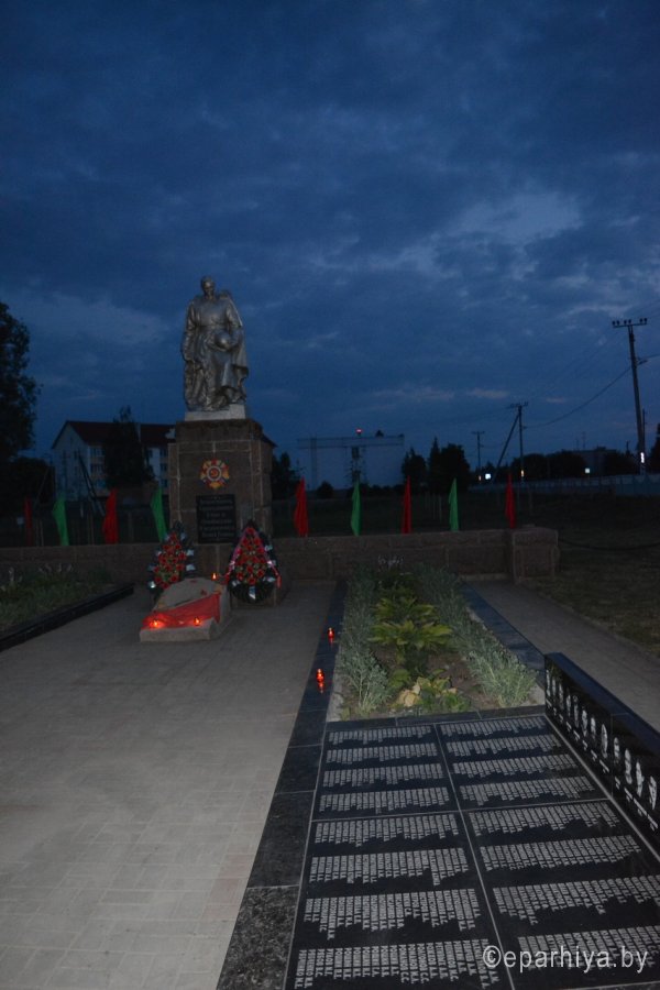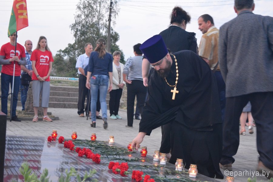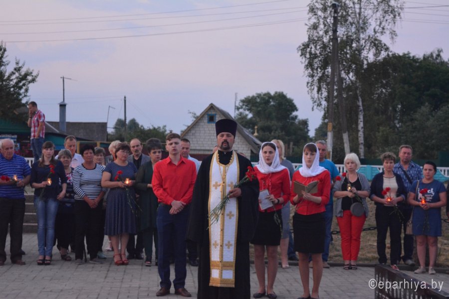 22 июня Гомельское районное благочиние присоединилось к акции посвященной «Дню всенародной памяти жертв Великой Отечественной войны». Мероприятия начались в 4-00 у братской могилы в агрогородке Поколюбичи. Почтить память воинов, павших за Родину на полях сражений и жертв Великой Отечественной войны, собрались руководство Гомельского района, представители общественных организаций и жители агрогородка Поколюбичи Первым слово предоставили председателю Гомельского райисполкома Алексиной Елене Ивановне, после чего со словами памяти и скорби выступил благочинный церквей Гомельского районного округа протоиерей Артемий Кривицкий: «Это одна из самых печальных дат, напоминающая о величайшей трагедии и одновременно о подвиге, мужестве и стойкости наших предков, нашего народа. Надеюсь, что пример нашей памяти о событиях страшной трагедии Великой Отечественной войны, станет поводом для подрастающего поколения с вниманием и заботой относится к свободе и независимости нашего народа». После чего у памятника была отслужена Лития и символически зажжены свечи, которые призваны напоминать нашим современникам какой ценной нам досталось мирное небо над головой. Все присутствующие почтили память погибших минутой молчания и возложили цветы. В 10-00 в храме святого преподобного Никиты исповедника в аг. Поколюбичи была отслужена Панихида в память о воинах и жертвах Великой Отечественной войны. На панихиде присутствовали боевые ветераны Великой Отечественной войны: Рычков Дмитрий Михайлович и Кондрусев Иван Дмитриевич (15 марта 2019г. исполнилось 100 лет). По окончании панихиды все собравшиеся посетили историко-краеведческий музей агрогородка Поколюбичи, где участники Великой Отечественной войны рассказали о первых и последних днях войны. Все присутствующие поблагодарили Дмитрия Михайловича и Ивана Дмитриевича за общение и пожелали крепкого здоровья! |