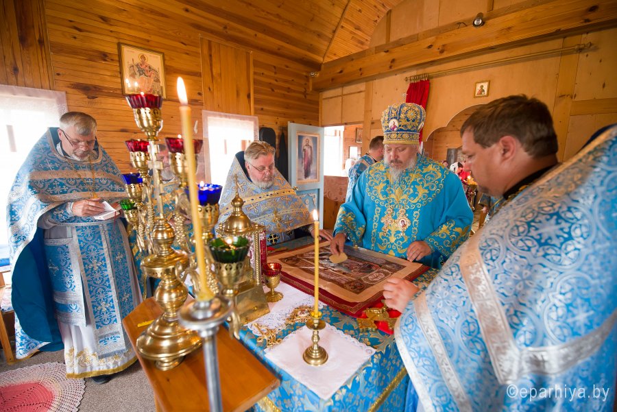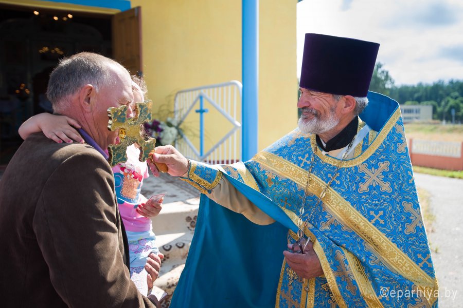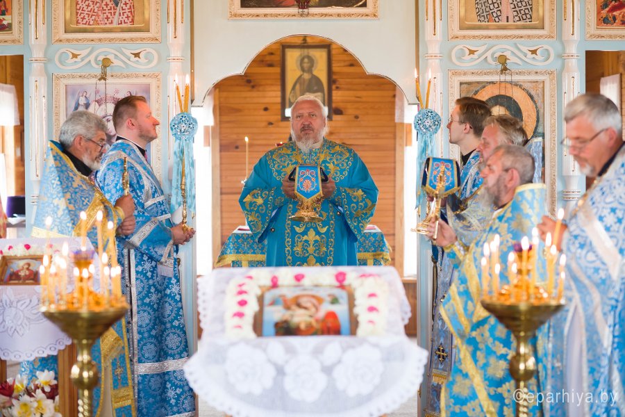 Божественную литургию в праздник иконы Божией Матери "Достойно есть", в одноименном храме аг.Яново 24 июня 2019г. совершил Высокопреосвященный Стефан архиепископ Гомельский и Жлобинский. Высокопреосвященному сослужили: благочинный Чечерского округа протоиерей Георгий Шмидов и духовенство округа. По окончании богослужения Владыка возглавил крестный ход, поздравил причастников с принятием Святых Христовых Таин, обратился к молящимся со словами Архипастырского назидания и в память об этом дне раздал иконки. Икона Божией матери “Достойно есть” глубоко почитается верующими. История иконы уходит своими корнями в глубину веков, она появилась на Святой горе. Жил в афонской пещере монах, однажды ушел он на службу, а молодого послушника оставил в келье. Время было вечернее, вдруг в дверь постучали и вошел незнакомец. Послушник и гость вместе стали молиться у иконы Божией Матери «Умиление». Когда монахи начали величать Богородицу, гость предложил к традиционным стихам добавить слова: «Достойно есть…» Во время пения экой неслыханной доселе песни икона Богоматери сияла небесным светом, а послушник плакал от умиления. Молодой инок попросил записать прекрасные слова. Когда не оказалось бумаги, гость начертал их прямо на камне, размягчившемся как воск и назвавшись Гавриилом исчез. Весть о чудесном явлении архангела дошла до Константинополя, и послушник в доказательство своих слов предоставил каменную плиту с начертанной на ней молитвой, начинавшейся со слов «Достойно есть». С тех пор икона обрела второе наименование и ныне существует с двумя названиями. И до сегодняшнего дня верующие молятся у Святого образа, прося помощи у Царицы Небесной. |