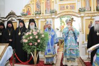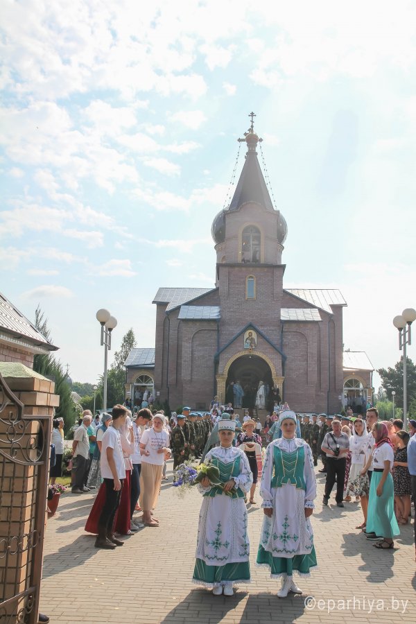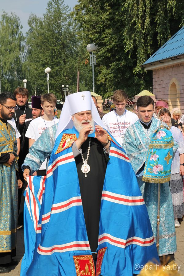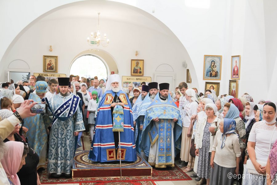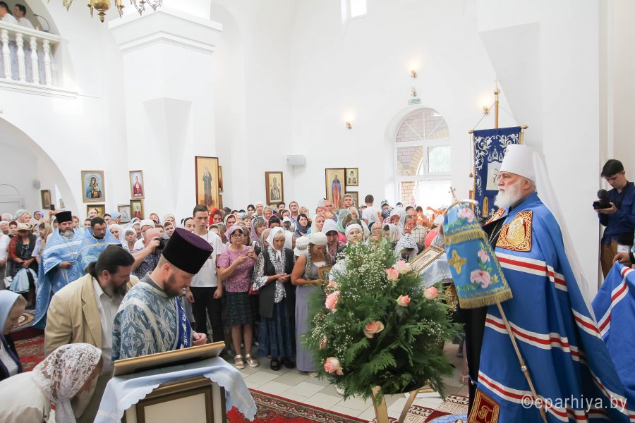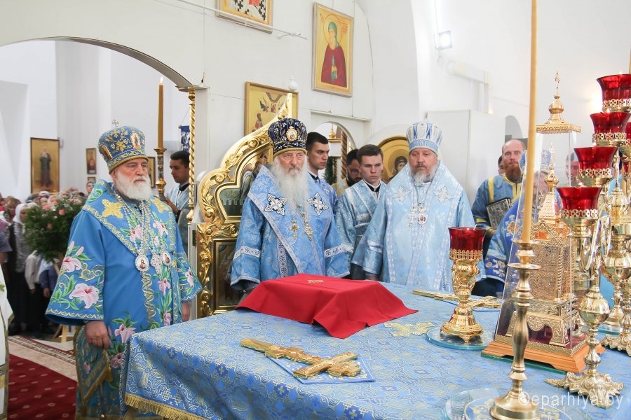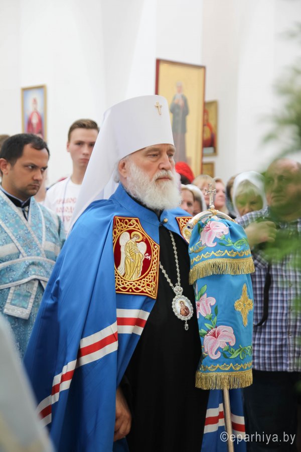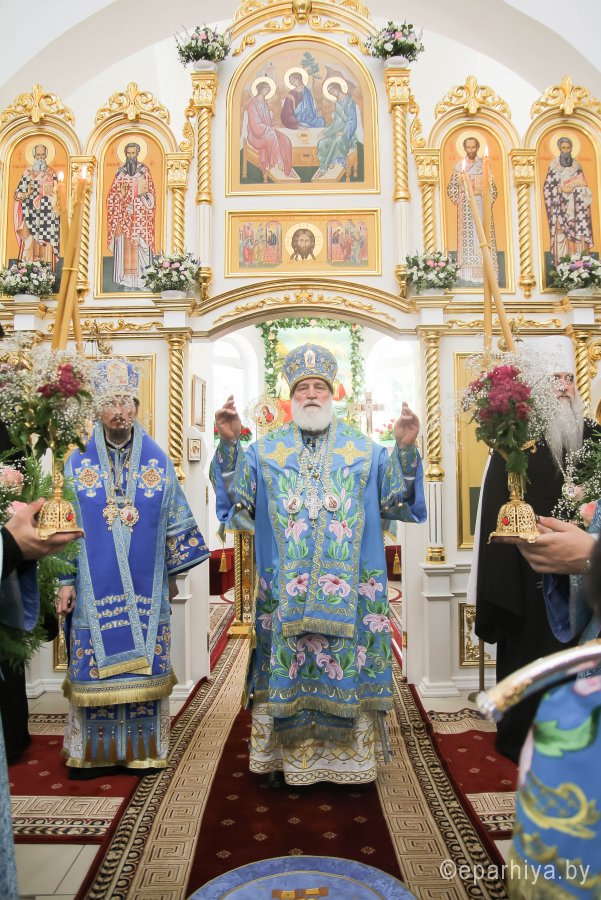27 июня 2019 года, в день празднования Марьиногорской иконы Божией Матери, Высокопреосвященнейший Стефан, архиепископ Гомельский и Жлобинский сослужил за Божественной литургией митрополиту Минскому и Заславскому Павлу, Патриаршему Экзарху всея Беларуси, богослужение совершалось в Александро-Невском соборе города Марьина Горка Минской области. Патриаршему Экзарху сослужили: митрополит Саратовский и Вольский Лонгин; архиепископы Пинский и Лунинецкий Стефан; Новогрудский и Слонимский Гурий; Гомельский и Жлобинский Стефан; епископы Бобруйский и Быховский Серафим; Борисовский и Марьиногорский Вениамин; Молодечненский и Столбцовский Павел; Лидский и Сморгонский Порфирий; Шуйский и Тейковский Матфей; Боровлянский Игнатий, викарий Минской епархии. Архипастырям сослужили благочинный 1-го Пуховичского церковного округа, настоятель Александро-Невского собора протоиерей Александр Целков и духовенство Борисовской епархии. Торжественное богослужение посетили: председатель Пуховичского районного исполнительного комитета Коледа Виктор Михайлович, председатель Пуховичского районного Совета депутатов Пранович Александр Васильевич, командир 5-й отдельной бригады специального назначения полковник Кучук Дмитрий Владимирович и другие высокие гости. Богослужебные песнопения исполнил хор Александро-Невского собора города Марьина Горка под управлением Анастасии Целковой. Проповедь перед Причастием произнес иерей Игорь Целков. По заамвонной молитве Патриарший Экзарх, сослужащие архипастыри и священнослужители совершили славление Пресвятой Богородице. По отпусте Божественной литургии с приветственным словом к митрополиту Павлу обратился епископ Борисовский и Марьиногорский Вениамин. Владыка сердечно поблагодарил Патриаршего Экзарха за архипастырский визит и вручил ему образ Божией Матери «Семистрельная». Патриарший Экзарх поблагодарил архипастырей, прибывших для совместной молитвы на церковное торжество, а затем обратился со словом назидания к многочисленным паломникам. Владыка Экзарх поздравил причастников с принятием Святых Христовых Таин, преподал верующим архипастырское благословение и на молитвенную память вручил всем молящимся иконки Божией Матери «Марьиногорская». Именинникам было провозглашено многолетие, после чего владыка Павел вручил им просфоры и цветы. По материалам сайта church.by |