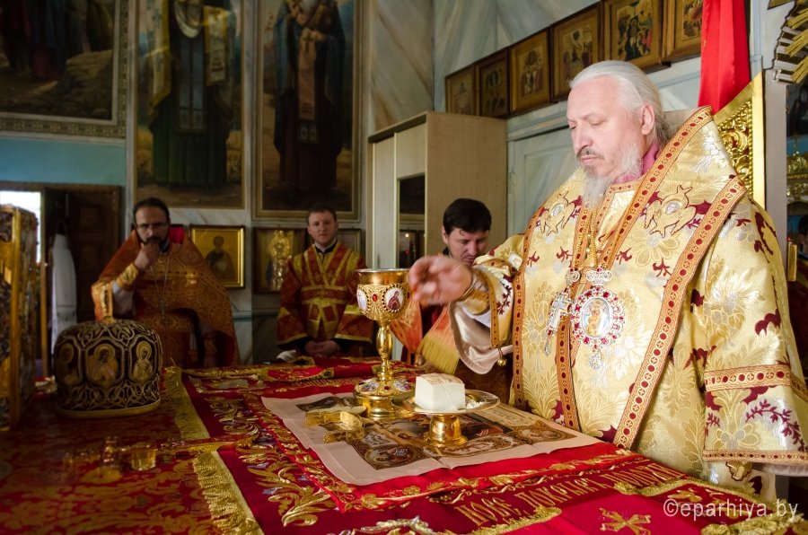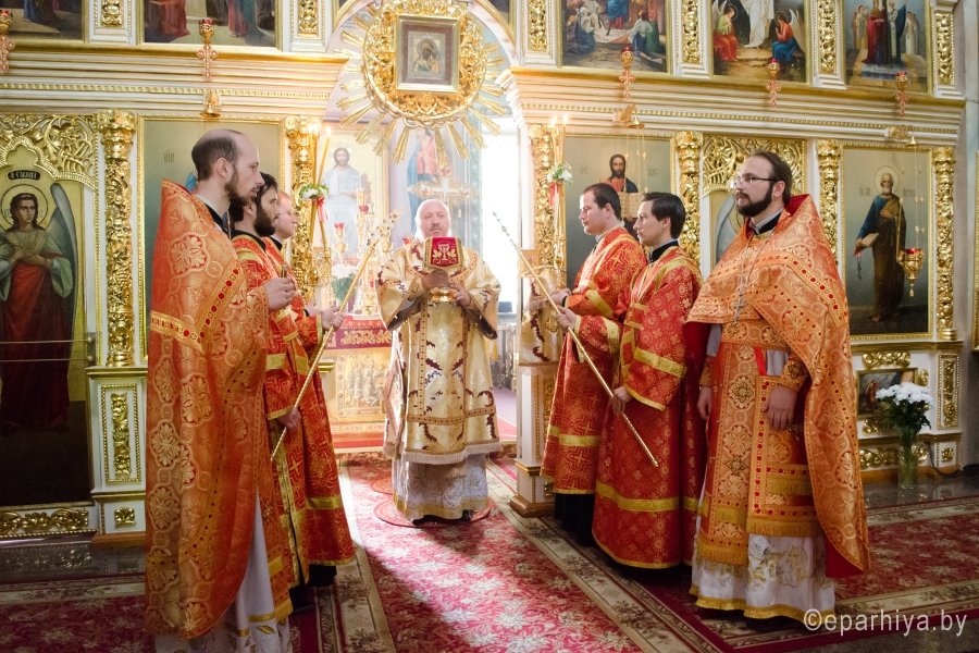 20 мая 2015г., в Отдание праздника Пасхи, Преосвященнейший Стефан, в сослужении духовенства собора, возглавил Божественную литургию в Свято-Петро-Павловском кафедральном соборе г.Гомеля. По окончании богослужения Владыка обратился ко всем присутствующим со словами Архипастырского наставления. |