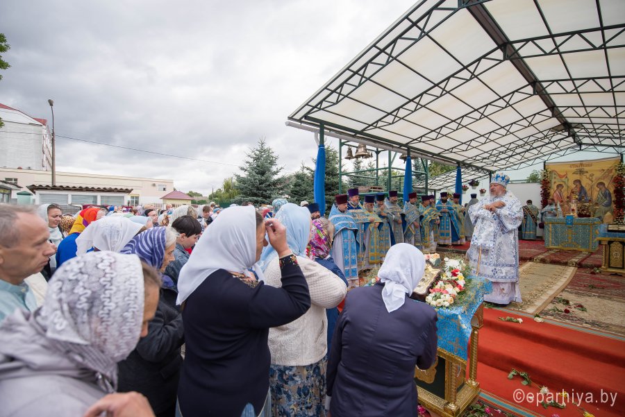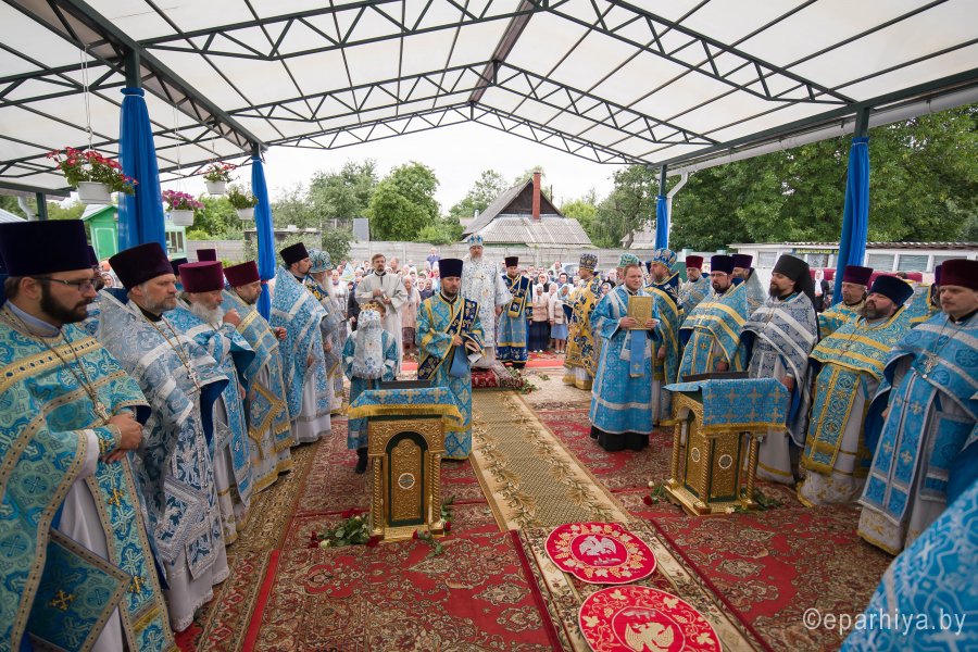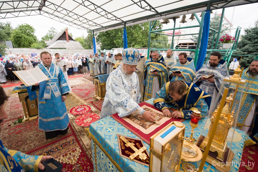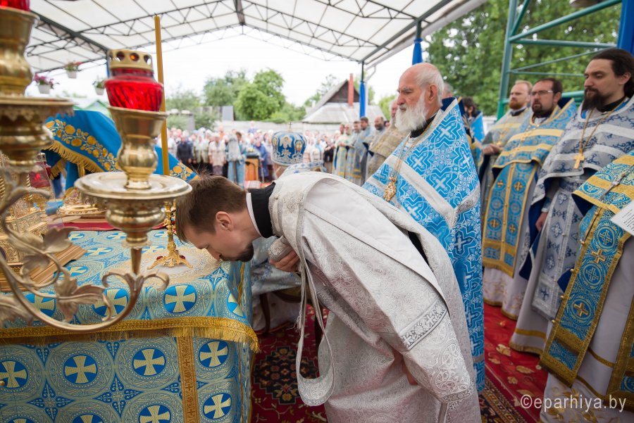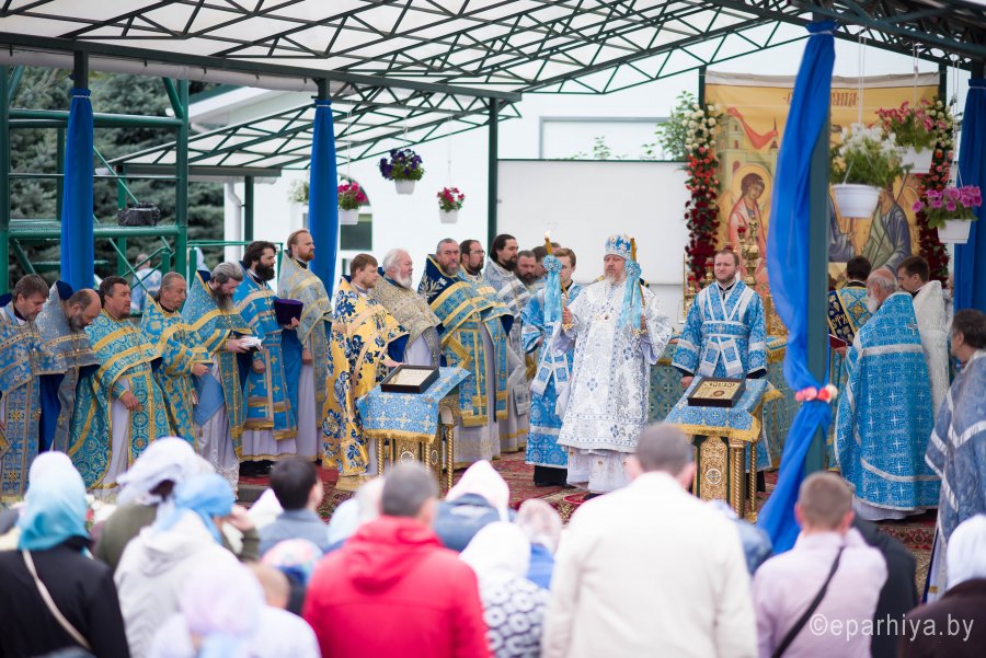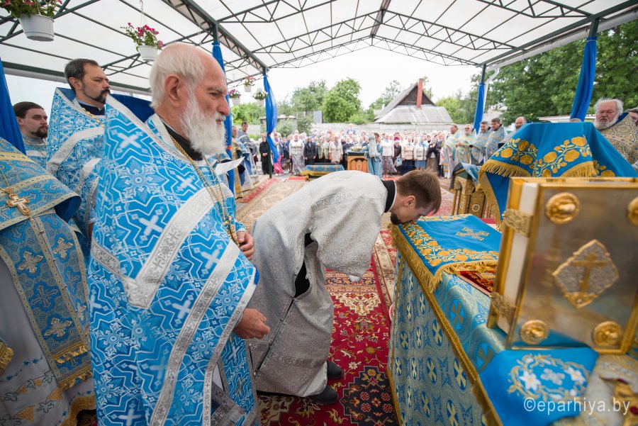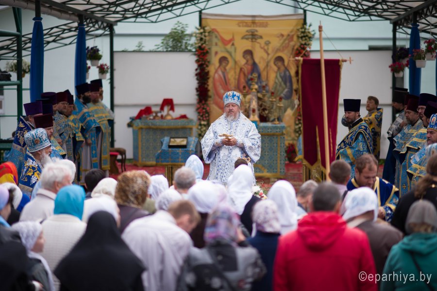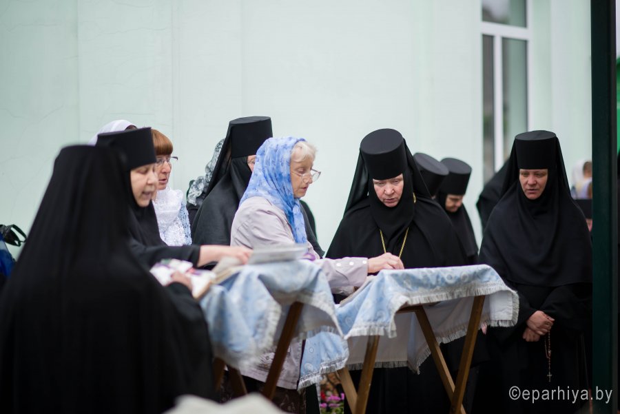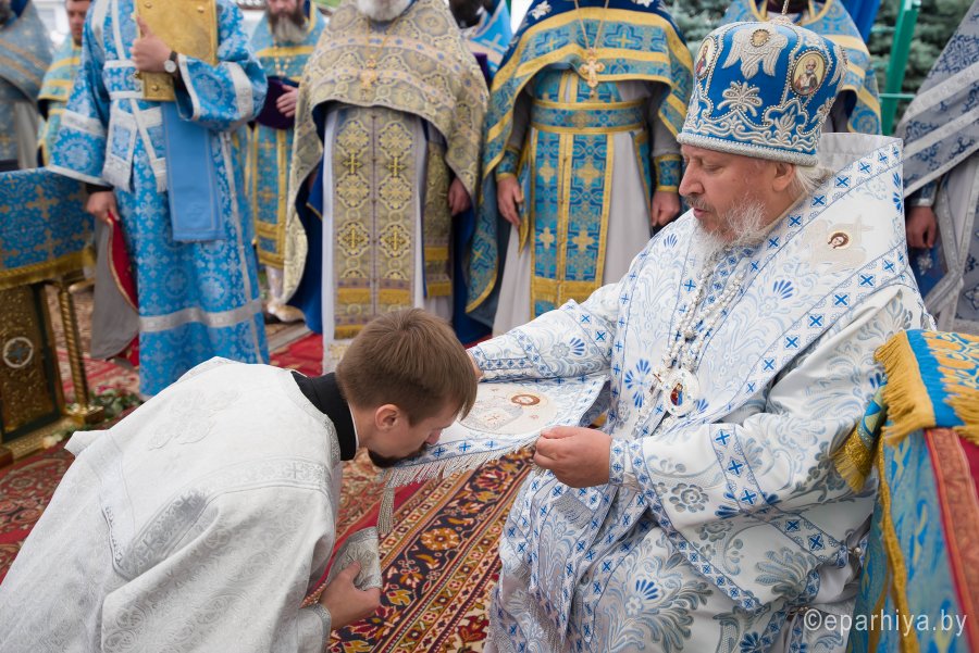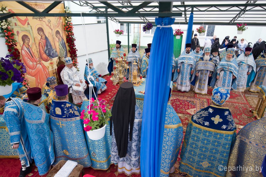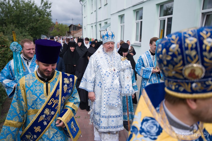 В праздник Тихвинской иконы Божией Матери 9 июля 2019г. Высокопреосвященнейший Стефан архиепископ Гомельский и Жлобинский возглавил Божественную литургию в одноименном женском монастыре г.Гомеля. Высокопреосвященнейшему сослужили: секретарь Гомельской епархии протоиерей Георгий Алампиев, духовник Гомельской епархии протоиерей Стефан Гладыщук, благочинные Гомельской епархии, председатели епархиальных отделов, настоятели приходов и духовенство епархии. За богослужением Владыка совершил хиротонию диакона Александра Гришаненко во иерея. По окончании богослужения Высокопреосвященнейший Стефан возглавил Крестный ход, поздравил причастников с принятием Святых Христовых Таин, обратился к молящимся со словами Архипастырского назидания и в память об этом дне раздал всем присутствующим иконки. После Божественной литургии Владыка совершил литию по новопреставленной монахине Николае. |