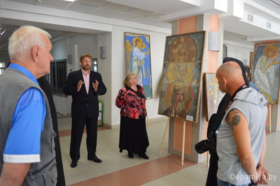 По благословению Высокопреосвященнейшего Стефана, архиепископа Гомельского и Жлобинского 8 июля в Речицком городском дворце культуры открылась выставка копий фрагментов росписей храмов и монастырей Полоцка, Пскова и Новгорода XII-XIII веков «Образ. Традиция. Время». Организаторами этой выставки, которая с успехом прошла уже во многих городах Беларуси, выступили Белорусская государственная академия искусств, приход храма великомученицы Варвары агрогородка Боровики Светлогорского района и Светлогорская картинная галерея «Традиция» имени Германа Прянишникова. На открытии выставки выступили настоятель прихода храма Святой великомученицы Варвары, аг.Боровики архимандрит Алексий (Желенок) и координатор прихода Александр Коршук. Почетных гостей за их старания поблагодарил благочинный Речицкого округа, настоятель Свято-Успенского собора г. Речицы, протоиерей Алексий Пешко. |
