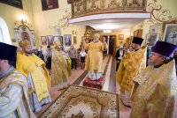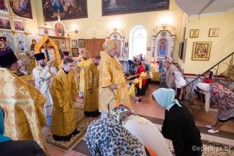 Божественную литургию в храме Святителя Николая Чудотворца в д.Бобовичи 11 июля 2019г. в четверг 4-й седмицы по Пятидесятнице возглавил Высокопреосвященнейший Стефан архиепископ Гомельский и Жлобинский. Высокопреосвященнейшему сослужили: секретарь Гомельской епархии протоиерей Георгий Алампиев, благочинный церквей Гомельского районного округа протоиерей Артемий Кривицкий, настоятель прихода протоиерей Петр Романенко и духовенство епархии. По окончании богослужения Владыка поздравил настоятеля прихода протоиерея Петра Романенко с днем рождения, причастников с принятием Святых Христовых Таин, обратился к молящимся со словами Архипастырского назидания и в память об этом дне раздал иконки. |