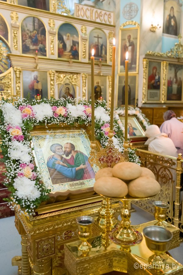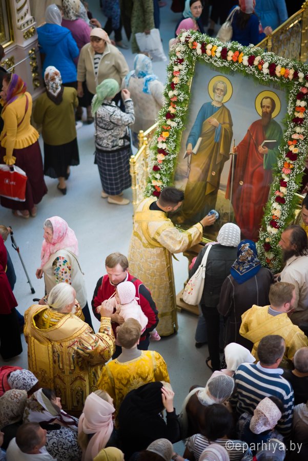 В канун дня памяти славных и всехвальных первоверховных апостолов Петра и Павла 11 июля 2019 года Высокопреосвященный Стефан архиепископ Гомельский и Жлобинский возглавил всенощное бдение в Петро-Павловском кафедральном соборе г.Гомеля Высокопреосвященнейшему сослужили: секретарь Гомельской епархии протоиерей Георгий Алампиев и духовенство собора. По окончании богослужения архипастырь поздравил верующих с наступающим престольным праздником и пожелал помощи Божией по молитвам первоверховных апостолов. |