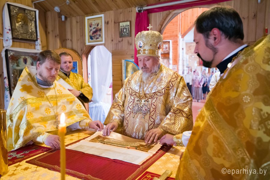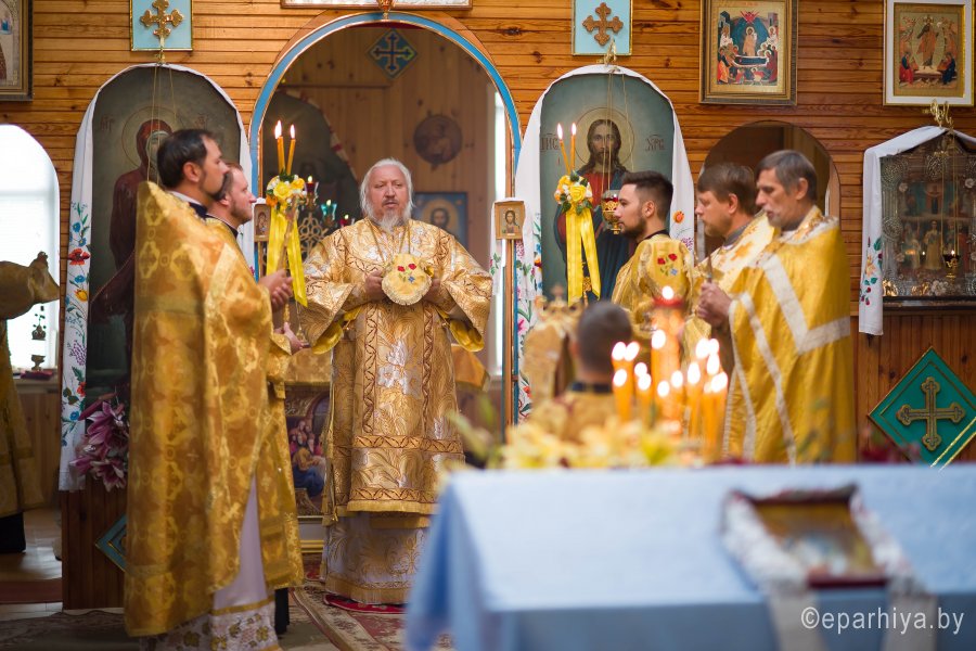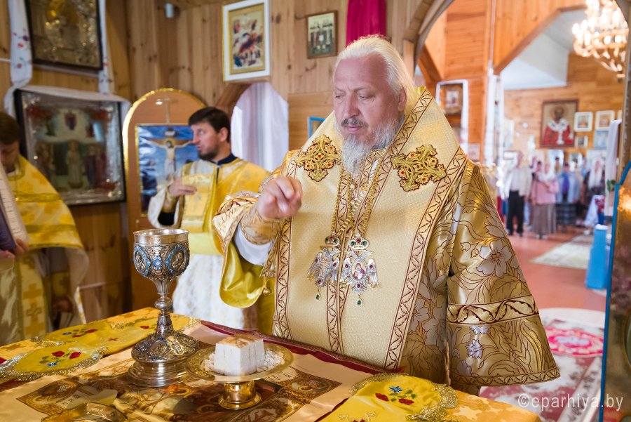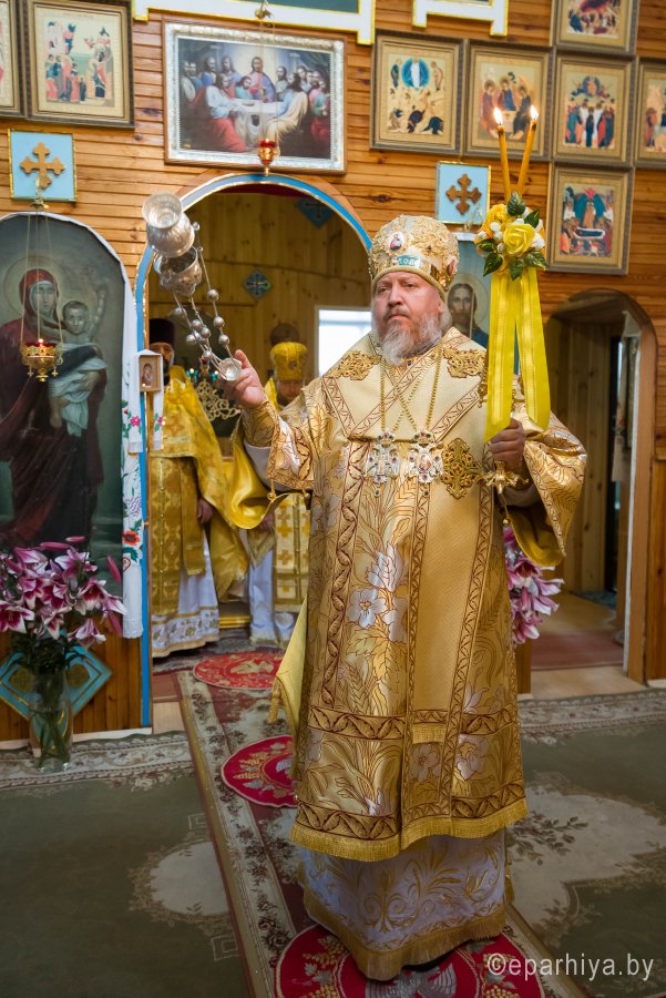 Божественную литургию в храме Покрова Пресвятой Богородицы д.Головинцы 14 июля 2019г. в неделю 4-ю по Пятидесятнице, в день памяти бессребреников Космы и Дамиана возглавил Высокопреосвященнейший Стефан архиепископ Гомельский и Жлобинский. Высокопреосвященнейшему сослужили: секретарь Гомельской епархии протоиерей Георгий Алампиев, благочинный церквей Гомельского районного округа протоиерей Артемий Кривицкий, настоятель прихода протоиерей Павел Савельев и духовенство епархии. По окончании богослужения Владыка поздравил причастников с принятием Святых Христовых Таин, обратился к молящимся со словами Архипастырского назидания и в память об этом дне раздал иконки. |