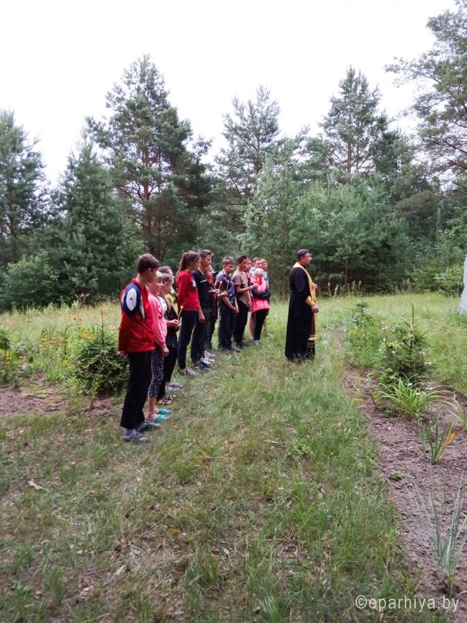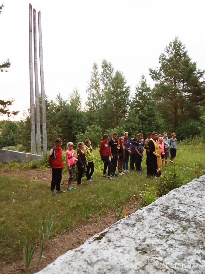 15 июля настоятель прихода храма Святого Архангела Михаила аг. Тихиничи протоиерей Николай Степанов встретился с волонтерским молодежно-патриотическим отрядом "Багратион" (г.Рогачев), который расположился палаточным лагерем около д. Коноплицы Рогачевского района. Под руководством директора Титовича Геннадия Васильевича Рогачёвский районный центр туризма и краеведения проводит экспедиции школьников по местам, с которых на нашей земле началась операция по освобождению Белоруссии советскими войсками в 1944 г. под кодовым названием "Багратион". Участники экспедиций не только знакомятся с историй своей малой родины, но и своими руками обновляют памятники воинам ВОВ. В этом году ребята проводят ремонтные работы мемориального комплекса защитникам Друтского плацдарма. Протоиерей Николай Степанов вместе со школьниками совершил панихиду по погибшим воинам и провел беседу о христианском понимании служения воина-защитника. |