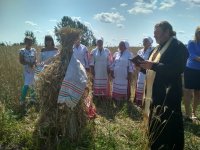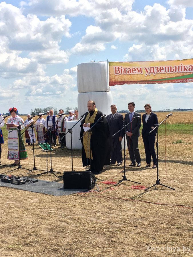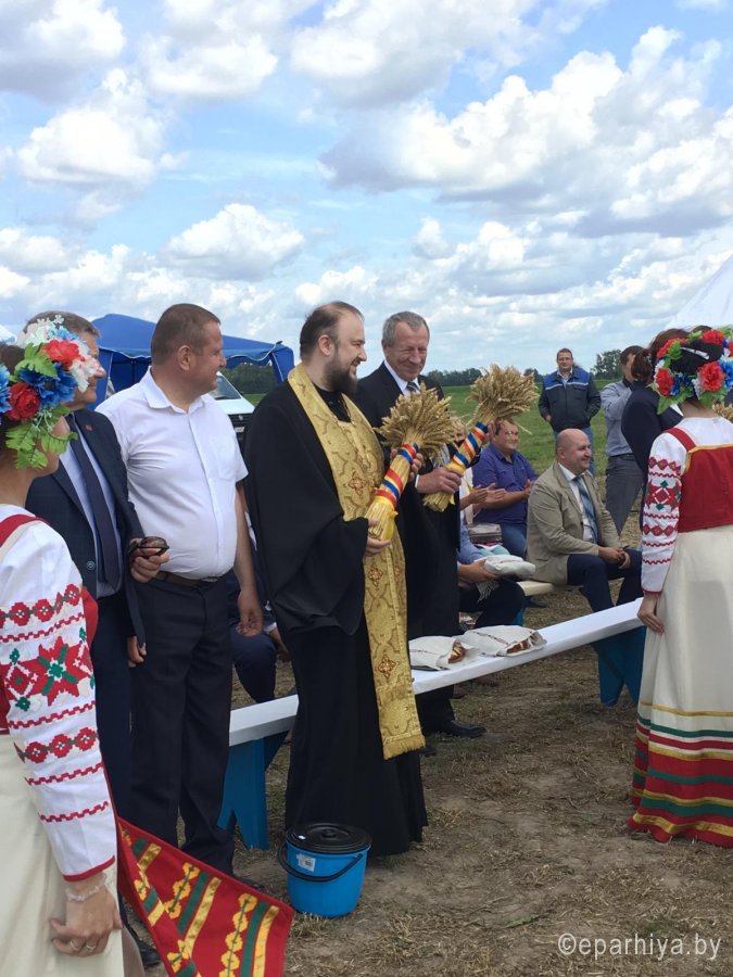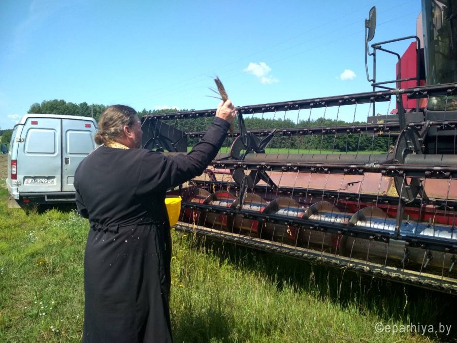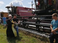 Святое дело — вырастить хлеб. Земля дает богатый урожай, когда за ней ухаживают, не зная отдыха и покоя, пока последний колосок не будет обмолочен. Во время жатвы важно все: и состояние техники, и обеспеченность топливом, и вкусные обеды, и грамотная организация труда, и соблюдение дисциплины и техники безопасности. Хлеб в поле созрел. И важно собрать его вовремя, не потеряв ни одного зернышка. В Жлобинском районе на базе филиала СПУ «Антоновка-Агро» РПУП «Гомельоблгаз» прошли республиканские «Зажинки» сельхозпредприятий, входящих в состав Государственного производственного объединения по топливу и газификации «Белтопгаз». В празднике приняли участие руководители данного объединения из Минска и Гомеля. Районную власть представляла первый заместитель председателя райисполкома, начальник райсельхозпрода Галина Леонова. Священнослужители Жлобинского благочиния посетили поля в д. Антоновка, аг. Поболово, аг. Нивы, аг. Красный Берег, где отслужили молебны, благословили хлеборобов на добрый урожай и окропили святой водой сельскохозяйственную технику. В своем поздравительном слове священники пожелали всем причастным к сбору урожая помощи Божией в предстоящих трудах по уборке хлеба, крепких сил телесных и духовных, солнечной погоды, чтобы убрать без потерь каждый колосок выращенный на Жлобинской земле. Традиция совершения молитвы перед началом осенне-полевых работ имеет весьма древнюю историю и благочестивый обычай наших православных предков, которые всегда совершали молитву, призывая благословение и помощь Божию, перед началом этого ответственного делания. |