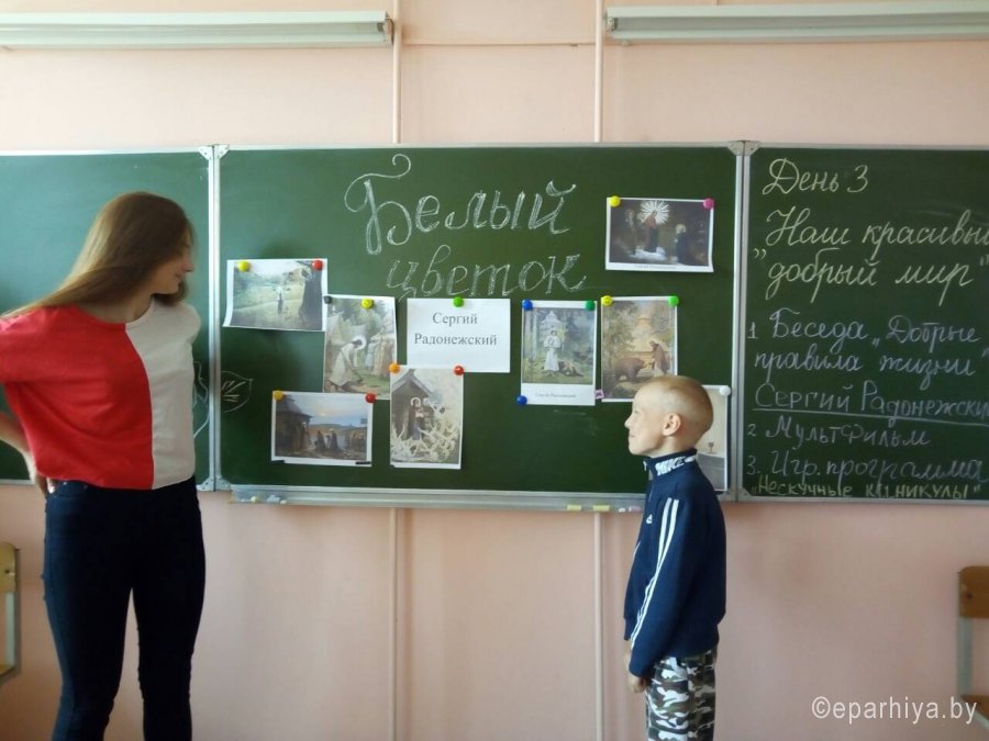 С 1 по 21 июля в ГУО Уваровичская средняя школа впервые прошел православный оздоровительный лагерь с дневным пребыванием "Белый цветок". Первый день оказался достаточно насыщенным. С приветственным словом к ребятам обратился директор школы Александр Анатольевич Концевенко. Он рассказал детям о важности знаний основ православной культуры и о возможности получения их в нашем лагере. С основными направлениями работы в лагере познакомила ребят, преподаватель начальных классов с православным уклоном Грицкова О.В., рассказав историю названия "Белый цветок", которая берет начало в прошлом веке, являясь символом милосердия и чистоты души. Ребята выбрали девиз лагеря и посетили храм Рождества Пресвятой Богородицы г.п.Уваровичи, где узнали много нового об устройстве церкви и правилах поведения от заслуженного педагога, бывшего преподавателя воскресной школы Барсуковой Н.Н. Далее ребят ждало увлекательное творческое занятие-изготовление белого цветка из бумаги, на лепестках которого они написали свои пожелания и впечатления от проведенных мероприятий. Каждый день в лагере – это новые знания, новые эмоции, мысли. Так, прошедший праздник Дня независимости Республики Беларусь стал темой для обсуждения. Патриотизм и духовность, борьба за независимость и законы православной веры-это основные вопросы, которые затронула в своей беседе с детьми Грицкова О.В. На примере жизни и служении Богу Сергия Радонежского она раскрыла понятие патриотизма и веры. Ребята просмотрели мультипликационный фильм "Куликовская битва", обсудили сюжет. Далее ребят ждала игровая программа, выставка ко Дню независимости и сладкие призы за правильные ответы о своей Родине. Не обошлось в оздоровительном лагере и без спортивных мероприятий. Спортландия «Веселые старты» прошла весело и непринужденно, а еще дети рисовали и играли на свежем воздухе, оформляли стенгазету и читали. В творческой мастерской ребята познакомились с очень интересными красками с помощью которых смогли изобразить фантастические картины на воде. Белый цветок еще и символ праздника – Дня семьи, любви и верности, который отмечают 8 июля, в день памяти благоверных князей Петра и Февронии Муромских. Символом этого дня стала обыкновенная ромашка, белый цветок, об этом ребята узнали во время беседы с педагогом. Затем дети вновь посетили церковь в г.п. Уваровичи и познакомились с библиотекой храма, побывали на клиросе и узнали значение многих икон в церкви. Маленькие прихожане задавали вопросы и узнали, как готовиться к исповеди и причастию и в день праздника первоверховных апостолов Петра и Павла все ребята лагеря причастились Святых Христовых Таин. А еще ребят ожидал квест "В поисках золотого ключика", который состоял из 10 заданий-препятствий, которые дети преодолевали на время. Во время квеста мальчики и девочки учились работать в команде, быстро находить решение, проявили свои лидерские качества. Не смотря на то, что команда «Дружба» победила, получив свои сладкие призы, ребята поровну разделили их с проигравшими. Секрами мастерства по изготовлению открыток в стиле "декупаж" поделилась с ребятами Грицкова О. В. Она помогла каждому почувствовать себя настоящим мастером и сделать открытку своими руками. Ребята были очень увлечены творческим процессом и в результате получились очень стил