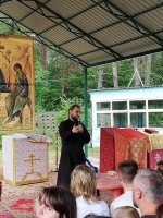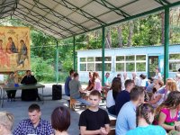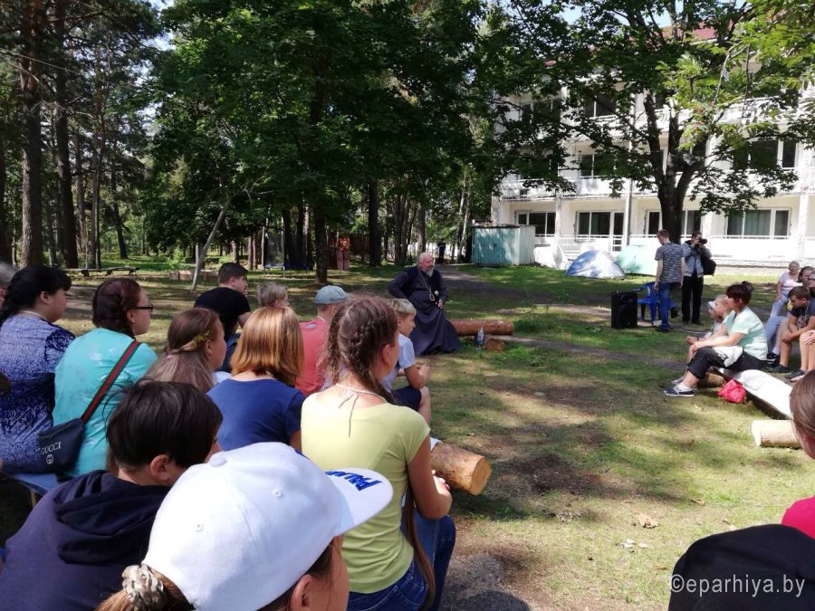 По благословению Высокопреосвященнейшего Стефана архиепископа Гомельского и Жлобинского на подворье Свято-Никольского мужского монастыря в д. Терюха состоялся ежегодные слет православной молодежи. Более 300 человек из нашей и соседних епархий, а также гости из России и Украины – на 4 дня стали одной большой дружной семьей. Целью данного мероприятия было укрепление духовных сил, закаливание духа и тела, развитие коммуникативных способностей у молодых людей. И самое важное, дать понять, что Церковь – это не только усиленные молитвенные подвиги и служебные пения, но и многогранные возможности совершенствоваться, укреплять не только душу, но и тело, при этом, ни на минуту, не забывая о спасении! В день заезда традиционно состоялся молебен, организационное собрание, цикл игр на знакомство и самым ярким событием первого дня стало торжественное открытие слета, в ходе которого молодежные группы всех благочиний епархии презентовали свои команды на сцене в инсценировках и песнях, что украсило этот вечер радостью и смехом. И уже, как одна большая команда, молодежь собралась у костра. Этот день не желал заканчиваться, ребята не хотели расходиться. Второй день в палаточном городке начался с игр на знакомство, серии мастер-классов по изготовлению букетов из овощей и фруктов, конфет и цветов, шитью игрушек из фетра и конструированию игрушек. После чего прибыла на слет пограничная группа, которая рассказала о работе пограничной службы, также очень впечатлило молодежь показательное выступление кинолога. В этот же день прибыл гость из Свято-Никольского мужского монастыря – aрхимандрит Савва (Мажуко). В неподражаемом стиле он говорил на непростые темы, но доступным для всех языком и как всегда сумел заинтересовать всех присутствующих. После занимательной беседы ребята познакомились с материалами передвижной выставки «Человек и творение». После ужина священнослужители провели тематические духовно-просветительские беседы, после чего молодые люди начали готовиться к ночной Божественной Литургии, которую возглавил Высокопреосвященнейший Стефан. В своем обращении Владыка призвал молодежь к любви и единству, которых порой так не хватает современному молодому человеку. После Богослужения эту чудесную ночь продолжило совместное чаепитие и общение со священнослужителями у костра. А уже утром в субботу, после завтрака, у всех участников слета впервые появилась уникальная возможность задать давно волнующие их вопросы архиепископу Гомельскому и Жлобинскому Стефану. Владыка Стефан приехал к участникам слета для беседы. Было волнительно всем. И тем, кто знал Владыку раньше. Но паче тем, кто впервые увидел Архиепископа Гомельского и Жлобинского. Думаем, что и Владыка волновался. Ведь желая сделать как можно больше хорошего для своей паствы, а особенно для молодежи, Владыка всегда внимателен к нуждам людей. Самые основные моменты, которые первыми же озвучил архиепископ, чего не хватает молодежи в церкви, почему так мало юных лиц в храмах, что нужно сделать, чтобы в церкви были не только уважаемые бабушки, но и горящие сердца молодых? Именно с таких слов он и начал беседу. На протяжении почти двух часов слушатели не сходили с места, захваченные ходом беседы. По отзывам многих участников, это было одно из самых знаковых событий слета, после литур
