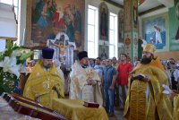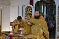 По благословению Высокопреосвященнейшего Стефана, архиепископа Гомельского и Жлобинского 28 июля 2019 года в день памяти святого благоверного князя Владимира в храме святых первоверховных апостолов Петра и Павла города Светлогорска служение Божественной литургии возглавил наместник Никольского мужского монастыря города Гомеля архимандрит Амвросий (Шевцов). Его Высокопреподобию сослужили: благочинный Светлогорского округа протоиерей Александр Кисель, настоятель храма протоиерей Владимир Семенов и духовенство Светлогорского округа. По окончании Божественной литургии был отслужен молебен по случаю Дня Крещения Руси. В завершении богослужения архимандрит Амвросий поздравил молящихся с праздником, а настоятеля храма протоиерея Владимира Семенова с днем тезоименитства. |