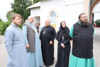 В ходе своего визита в Жлобинский округ 1 августа 2019 года Высокопреосвященнейший Стефан архиепископ Гомельский и Жлобинский в сопровождении секретаря Гомельской епархии протоиерея Георгия Алампиева, благочинного монастырей Гомельской епархии архимандрита Амвросия (Шевцова) и благочинного Жлобинского округа протоиерея Василя Пилипенко совершил рабочую поездку в приход храма Святой Живоначальной Троицы в г. Жлобине. Владыка ознакомился с ходом ремонтно-строительных работ и состоянием дел на приходе. |