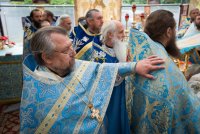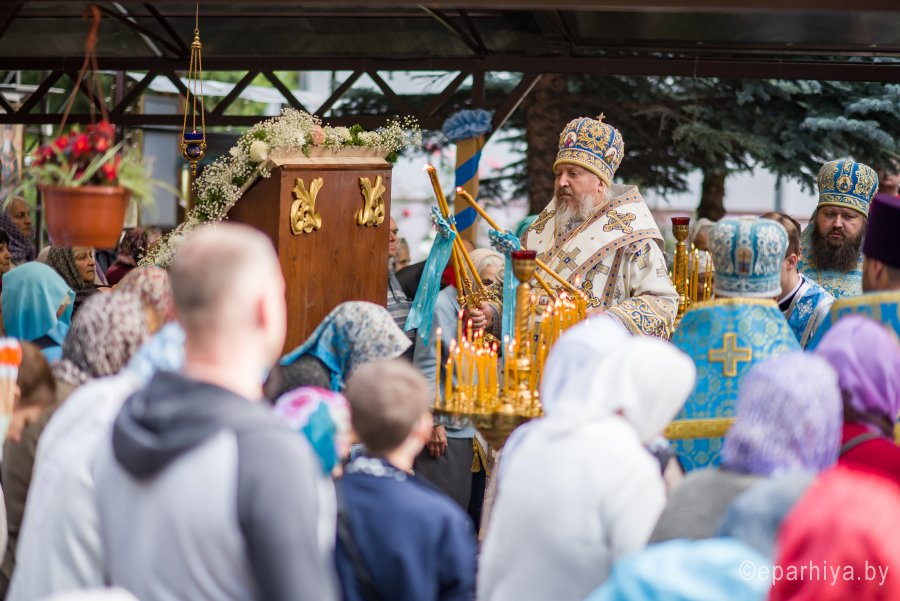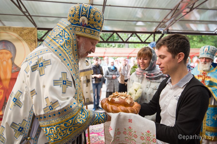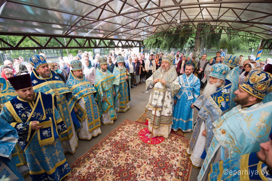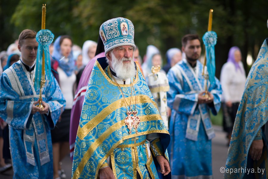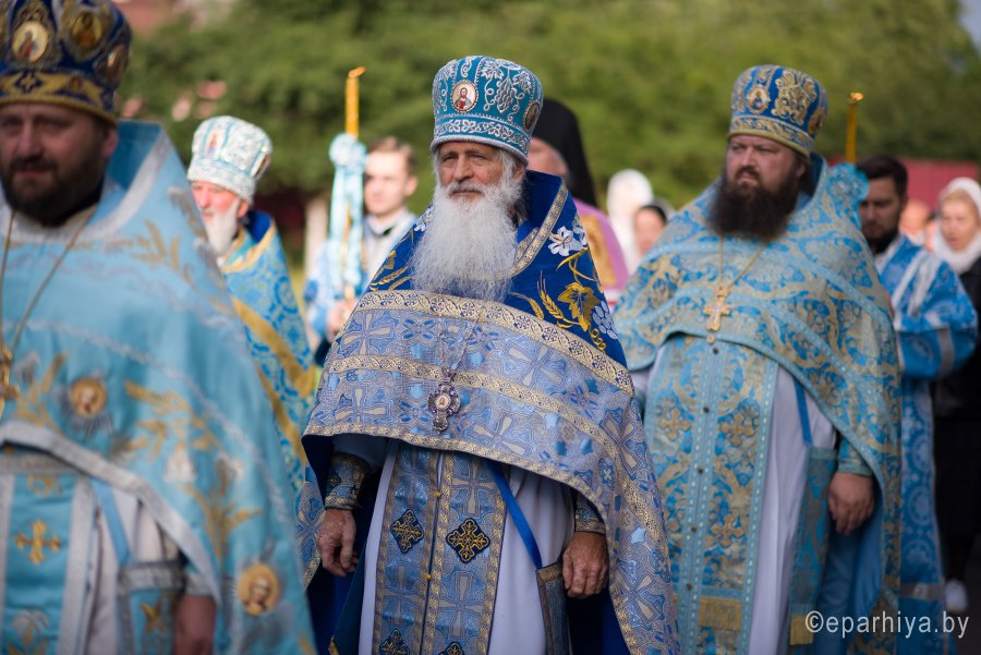 Велико почитание Пресвятой Богородицы на земле Белорусской. Нет православного дома, в котором не было бы образа Пресвятой Богородицы. Одной из особо почитаемых является чудотворная икона Божией Матери, именуемая Югская. 3 августа 2019г. в храме великомученика Георгия Победоносца в г. Гомеле при многочисленном стечении верующих состоялась встреча великой святыни, которую возглавил архиепископ Гомельский и Жлобинский Стефан. Чудотворная икона будет находится в храме с 03.08.2019г. по 27.10.2019г. Высокопреосвященнейший Стефан совершил Божественную литургию, которую предварял Крестный ход по улицам г.Гомеля. Высокопреосвященнейшему сослужили: секретарь Гомельской епархии протоиерей Георгий Алампиев, духовник Гомельской епархии протоиерей Стефан Гладыщук, благочинный монастырей Гомельской епархии архимандрит Амвросий (Шевцов), председатели отделов и духовенство епархии. По окончании богослужения Владыка Стефан поздравил причастников с принятием Святых Христовых Таин и обратился к молящимся со словами Архипастырского назидания. Чудотворная икона Божией Матери, именуемая Югская, явилась в начале ХVII века старцу схимонаху Псково-Печерского монастыря преподобному Дорофею. Богородица, во время нашествия шведов, повелела ему взять Ее образ в указанном Ею месте, отнести образ в пределы Ярославской епархии и там основать обитель. Игумену монастыря, не соглашавшемуся отпустить явленную икону Божией Матери, Она в сонном видении явилась и повелела исполнить Ее волю и отпустить старца Дорофея с Ее иконой. Старец Дорофей, приближаясь к указанному ему в видении месту, остановился отдохнуть, а святую икону поставил на дереве. Когда он хотел продолжать путь, то никакими силами не смог снять с дерева икону Богоматери. Старец Дорофей понял, что Царица Небесная в этом месте хочет остаться. Тогда он построил небольшую хижину и сам остался жить у этой святыни. Весть о приходе старца стала быстро распространяться по окрестным селам. К нему стали стекаться богомольцы для поклонения святой иконе, от которой стали совершаться исцеления. Усердием местных жителей были собраны средства и положено начало постройки новой обители. Преподобный Дорофей скончался в 1622 году. Патриарху Филарету духовенство представило данные о совершавшихся чудесах. В ответ они получили благословение на основание на реке Юг обители с церковью в честь Успения Пресвятой Богородицы. Обитель стала именоваться Югской. В 1654 году заступлением Богоматери в тех местах прекратилась распространившаяся моровая язва. |
