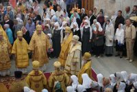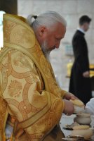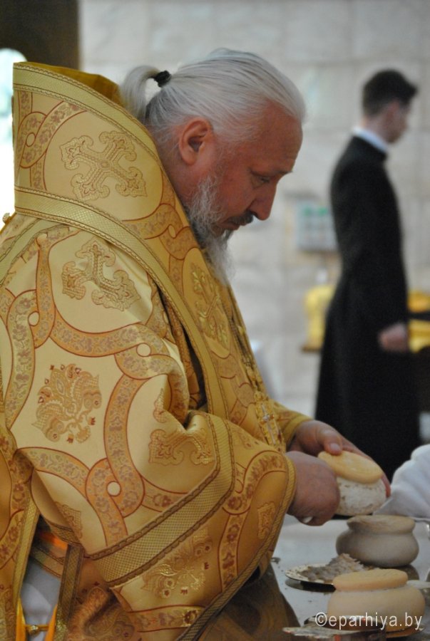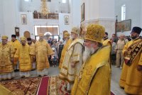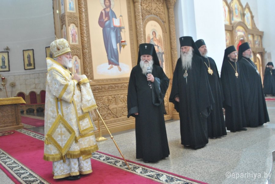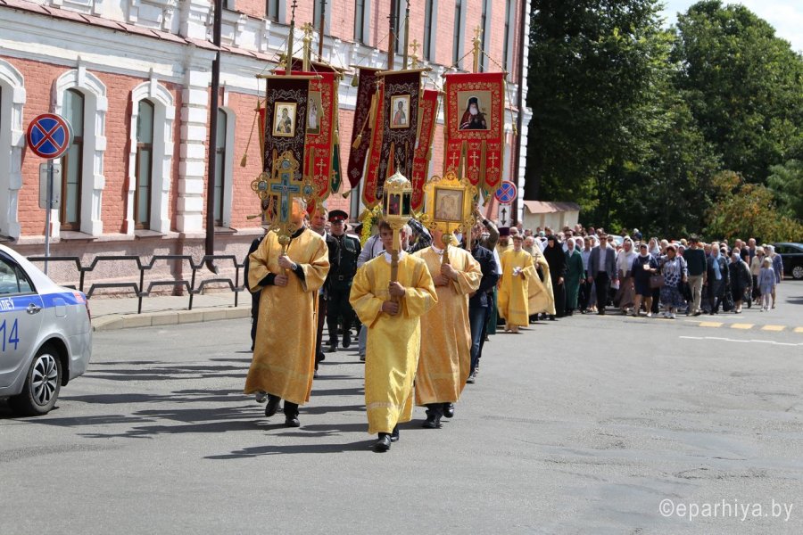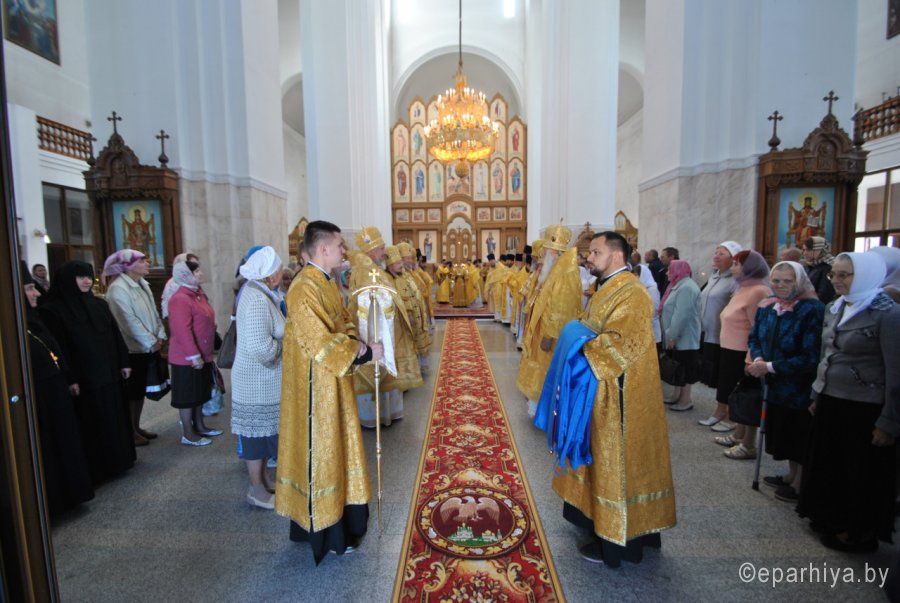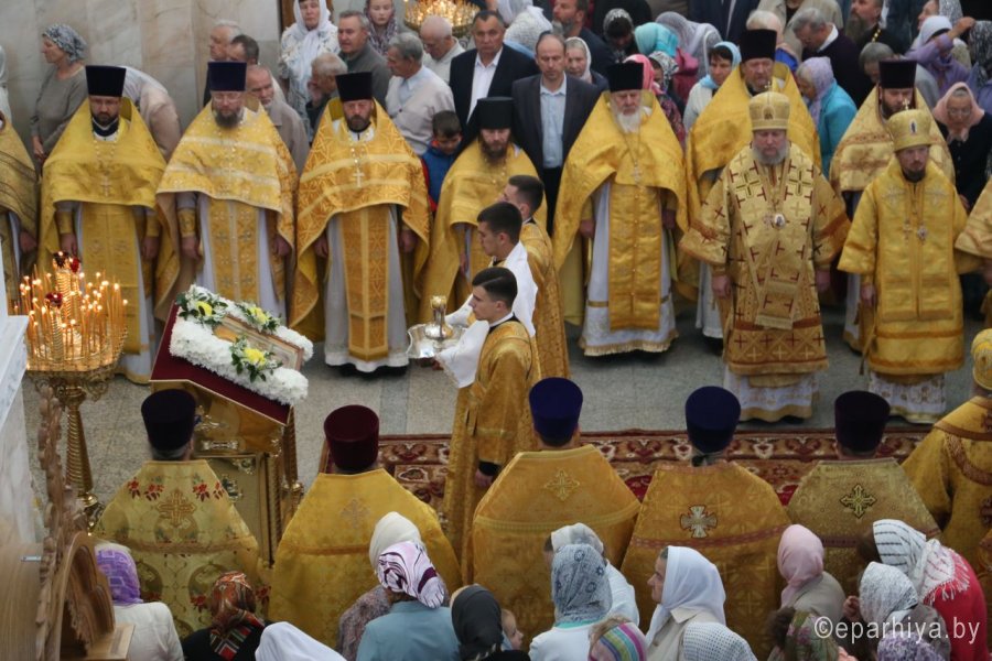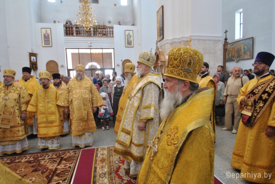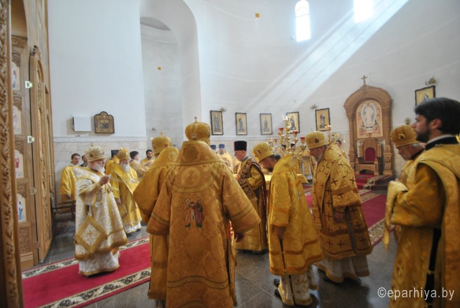 6 августа 2019 года, в день памяти святителя Георгия Могилевского, в городе Могилеве состоялись торжества, посвященные этому святому архиепископу. Праздничную Божественную Литургию в Спасо-Преображенском кафедральном соборе совершили: митрополит Минский и Заславский Павел, Патриарший Экзарх всея Беларуси, архиепископ Пинский и Лунинецкий Стефан, архиепископ Могилевский и Мстиславский Софроний, архиепископ Гомельский и Жлобинский Стефан, епископ Туровский и Мозырский Леонид, епископ Борисовский и Марьиногорский Вениамин, епископ Молодечненский и Столбцовский Павел, епископ Боровлянский Игнатий. Архипастырям сослужили священнослужители Могилевской епархии и гости в священном сане. Диаконский чин возглавил протодиакон Свято-Духова кафедрального собора города Минска Николай Авсиевич. Богослужебные песнопения исполнил хор под управлением Светланы Михайловой. Проповедь перед Причастием произнес иерей Андрей Шаварин. По заамвонной молитве Патриарший Экзарх, сослужащие архипастыри и священнослужители совершили славление празднику. По отпусте Литургии с приветствием к архиереям, священнослужителям и всем собравшимся обратился архиепископ Могилевский и Мстиславский Софроний. Митрополит Минский и Заславский Павел в ответном слове сердечно поблагодарил владыку Софрония за приглашение, а всех архипастырей, духовенство и благочестивых мирян за соборную молитву. После богослужения в храме Патриарший Экзарх возглавил праздничный молебен и славление святителю Георгию около бывшей резиденции Георгия Конисского, куда крестным ходом пришли паломники из могилевского Никольского монастыря. На молебне присутствовал председатель Могилевского городского исполнительного комитета Владимир Михайлович Цумарев, а также другие представители власти. По окончании молебна митрополит Павел выразил благодарность всем прибывшим почтить память святителя Георгия Могилевского и призвал христиан хранить драгоценный дар — веру православную, которую так усердно проповедовал и защищал святитель Георгий, а также пребывать в единомыслии, согласии, молитве и в подлинной христианской любви. По материалам сайта: mogeparhia.by |