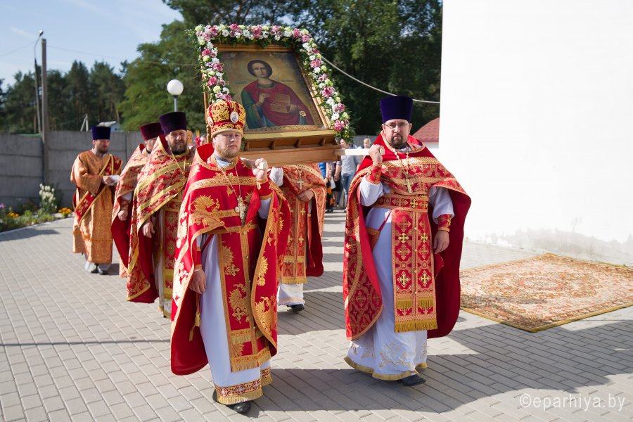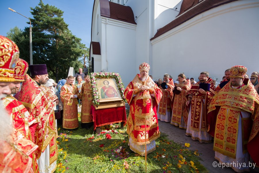 Православная Церковь 9 августа чтит память святого великомученика и целителя Пантелеимона. Еще при жизни к Святому Пантелеимону приходили больные и страждущие, нищие и убогие, признавая его за великого целителя, который безвозмездно врачевал их недуги. С именем Христовым он помогал всем пришедшим к нему, отказался от всех земных благ, и с именем Христовым он принял мученическую смерть, зная, что человек живет не для этой жизни, а для вечной. Божественную литургию в день памяти великомученика и целителя Пантелеимона в одноименном храме г. Гомеля 9 августа 2019г. возглавил Высокопреосвященнейший Стефан, архиепископ Гомельский и Жлобинский. Высокопреосвященнейшему сослужили: секретарь Гомельской епархии протоиерей Георгий Алампиев, благочинный монастырей Гомельской епархии архимандрит Амвросий (Шевцов), благочинный Гомельского городского округа протоиерей Игорь Ольшанов, председатель информационного отдела протоиерей Олег Кострома, эконом гомельской епархии протоиерей Владимир Масалитин, ректор библейско-богословских курсов протоиерей Вадим Качан, настоятель прихода протоиерей Владимир Сулимов и духовенство епархии. По окончании богослужения Владыка возглавил крестный ход, обратился к молящимся со словами Архипастырского назидания и в память об этом дне раздал иконки. Более 1700 лет к святому великомученику и целителю Пантелеимону верующие обращают свои молитвы в скорбях, в горестях и болезнях, прося его молитвенной помощи и заступления перед Богом и надеясь на те чудесные исцеления, о которых мы знаем из жития святого, ожидая, чтобы они сбылись и на наших грешных душах, исцеляя духовные и телесные наши болезни. Родился будущий Святой в городе Никомидии, в семье знатного язычника Евсторгия. Мальчика назвали Пантолеон, что в переводе с греческого означает "во всем лев". Его мать – Еввула, была христианкой и воспитывала мальчика в своей вере. Однако, после смерти супруги Евсторгий отдал Пантолеона в языческую школу, окончив которую юноша начал учиться врачебному искусству у знаменитого врача Евфросина. В разгар гонений императора Максимиана (284-305) на христиан Пантолеон становится придворным врачом у императора. Образованный юноша мог стать влиятельнейшей фигурой при дворе императора Максимиана, но Господь уготовил ему совершенно другой путь. Однажды юноша увидел на улице мертвого ребенка, укушенного ехидной, которая еще была рядом. Пантолеон начал молиться Господу Иисусу Христу о воскрешении умершего и умерщвлении ядовитого гада. Он твердо решил, что в случае исполнения его молитвы станет последователем Христа и примет крещение. Ребенок ожил, а ехидна разлетелась на куски на глазах у Пантолеона. Уверовав, он принял крещение, получил имя Пантелеймон, что значит "всемилостивый" и стал безвозмездно лечить всех больных, которые к нему обращались, исцеляя их именем Иисуса Христа. Людская молва о нем быстро разошлась по городу, больные стали отказываться от других врачей, стремясь попасть к нему на прием. Из зависти и досады врачи донесли императору, что Святой Пантелеймон лечит христианских узников. Максимиан очень уважал Пантелеймона, но не мог допустить в своей языческой стране прославление Христа, поэтому призвал доктора и потребовал опровергнуть донос. Но Святой Пантелеймон исповедал себя христианином и на гла