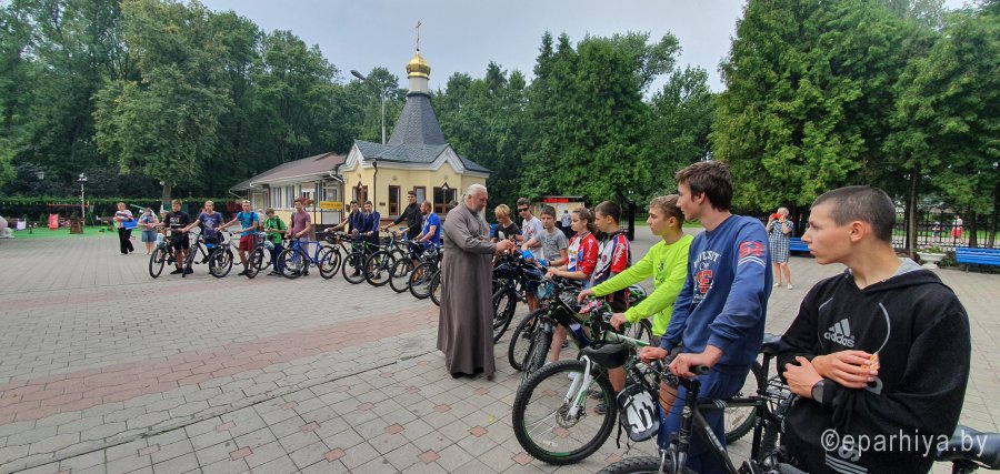 Ставший уже традиционным «Велопробег по Святым местам Гомельщины» стартовал 8 августа 2019г. Мероприятие, организованное благодаря сотрудничеству Гомельской епархии, отдела образования, спорта и туризма Железнодорожного района г.Гомеля и Гомельского областного центра краеведения и экскурсий, направлено на активный отдых, духовно-нравственное развитие личности подростков, а также на воспитание лучших черт характера через обретение духовного опыта. Архиепископ Гомельский и Жлобинский Стефан благословил команду в путь. Владыка обратился к ребятам с напутственными словами и подарил каждому иконку «Собор Белорусских святых». В велопробеге принимают участие 17 подростков, состоящих на профилактическом учёте в инспекции по делам несовершеннолетних отдела внутренних дел администрации Железнодорожного района г.Гомеля, а также признанных находящимися в социально опасном положении. К ним, в рамках проекта «Единство, дорогой веры» - победителя конкурса «Православная инициатива», присоединились ребята прихода храма Преображения Господня в г. Гомеле. На протяжении 7 дней молодые люди совместно со священнослужителями совершат велопробег по святым местам гомельской епархии. Тематические мероприятия начались в ГУО «Средняя школа №12 г. Гомеля», где ребята провели технический осмотр велосипедов и прослушали инструктаж по безопасности дорожного движения. Затем участники велопробега направились в Петро-Павловский кафедральный собор г. Гомеля, где иеромонах Аристарх (Дроздов) совершил молебен «О путешествовати хотящих» и ребята отправились в увлекательное путешествие, где их будет ждать насыщенная программа, включающая беседы со священниками в неформальной обстановке, спортивные и туристические соревнования, квест-игры, а также экскурсии по населенным пунктам. |