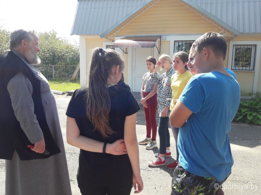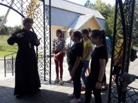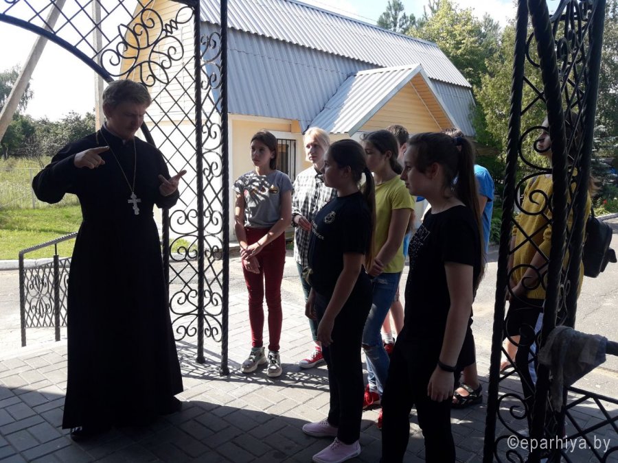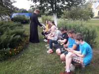 12 августа 2019 года храм Святителя Николая Чудотворца г. Буда-Кошелево посетили учащиеся ГУО "Гимназии г. Буда-Кошелево", находящиеся в пришкольном летнем оздоровительном лагере. Ребят встретил благочинный Буда-Кошелевского округа, протоиерей Сергий Пешко. Он пообщался с ребятами и поблагодарил их за визит в храм. Экскурсию по храму для учеников провел иерей Александр Асадчий. Так ребята узнали, как правильно налагать на себя крестное знамение, как вести себя в храме, об устройстве храма, а также кому и зачем необходима наша молитва. После экскурсии, уже в непринужденной обстановке на природе, ребята смогли задать свои вопросы священнику, на которые он с радостью дал исчерпывающие ответы. |