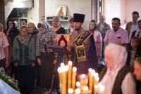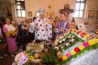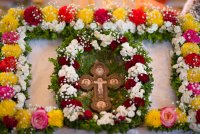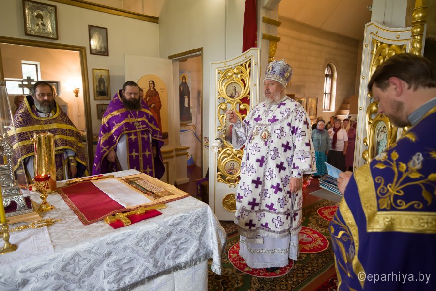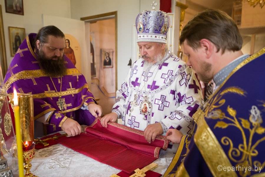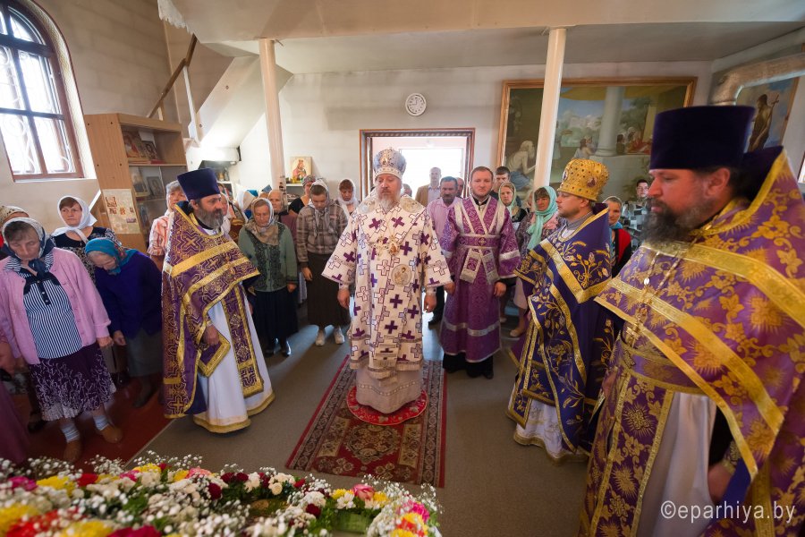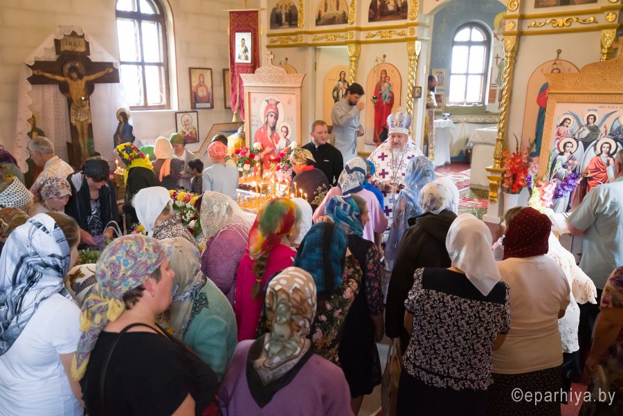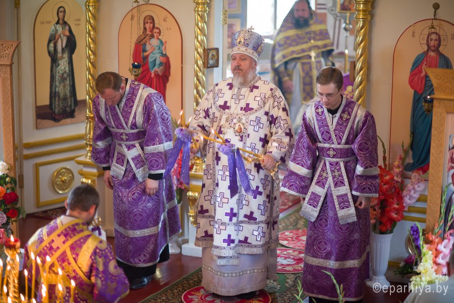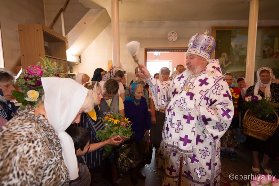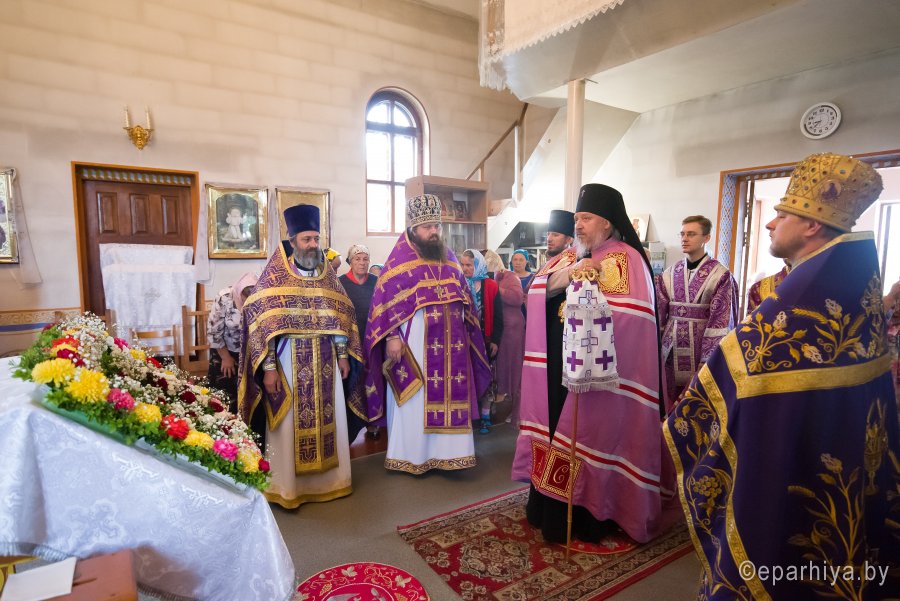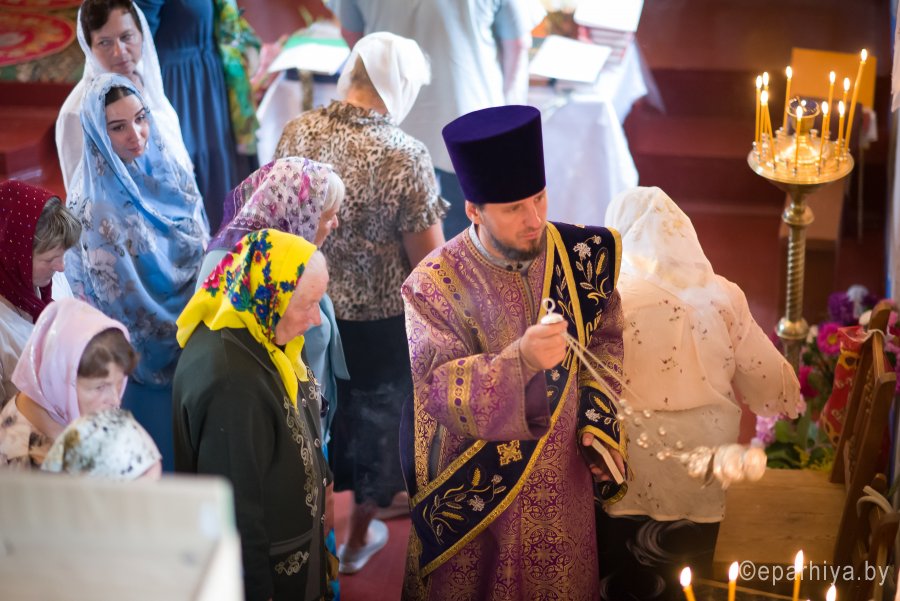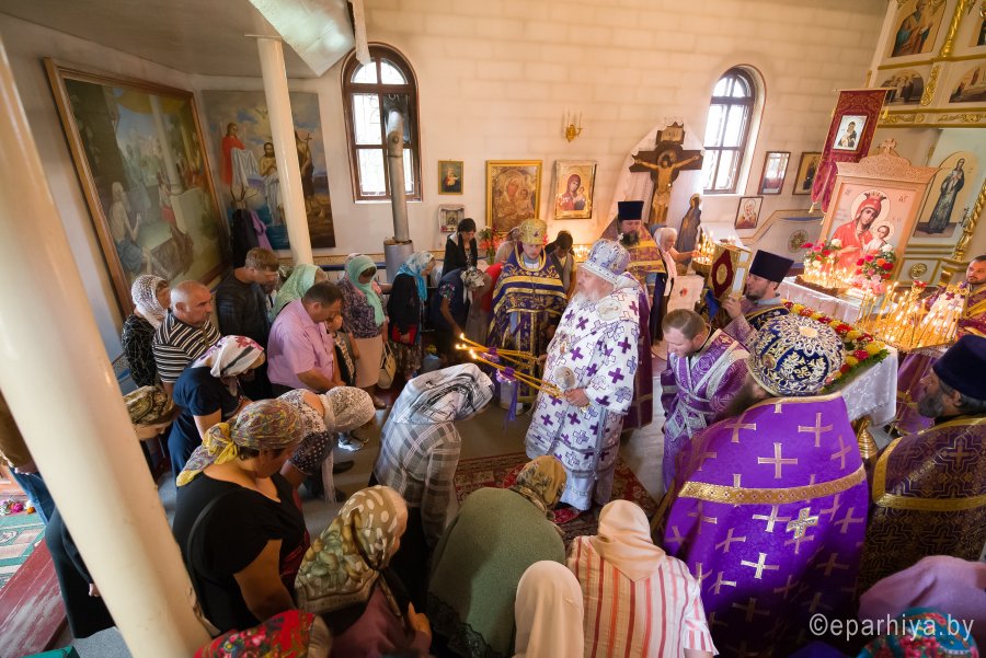 Божественную литургию 14 августа 2019г. в праздник Происхождение (изнесение) честных древ Животворящего Креста Господня и день памяти семи мучеников Маккавеев в храме Святого Архистратига Божия Михаила в д. Ровенская Слобода Речицкого округа возглавил Высокопреосвященнейший Стефан, архиепископ Гомельский и Жлобинский. Высокопреосвященнейшему сослужили: секретарь Гомельской епархии протоиерей Георгий Алампиев, благочинный монастырей Гомельской епархии архимандрит Амвросий (Шевцов), настоятель прихода храма Покрова Пресвятой Богородицы в г. Речице протоиерей Николай Ефименко, настоятель прихода иерей Виталий Штойко и духовенство епархии. По окончании богослужения Владыка совершил чин освящения меда, поздравил причастников с принятием Святых Христовых Таин, обратился к молящимся со словами Архипастырского назидания и на память о совместной молитве всем присутствующим раздал иконки. Празднование имеет древние традиции. В греческом часослове 1897 года так объясняется происхождение этого праздника: "По причине болезней, весьма часто бывавших в августе, издревле утвердился в Константинополе обычай износить Честное Древо Креста на дороги и улицы для освящения мест и в отвращение болезней. Накануне (31 июля), износя его из царской сокровищницы, полагали на святой трапезе Великой церкви (в честь Святой Софии - Премудрости Божией). С настоящего дня и далее до Успения Пресвятой Богородицы, творя литии по всему городу, предлагали его потом народу для поклонения. Это и есть предъисхождение Честного Креста". |