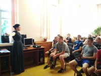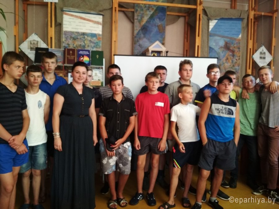 12 августа 2019 года для ребят из областного военно-патриотического лагеря "Патриот" прошел под знаком духовности, мужества и патриотизма. В этот день участники лагеря посетили Храм Святой Живоначальной Троицы, где иерей Александр Якушенко провел для них экскурсию и беседу о ценности жизни, почитании старших. В продолжение беседы на базе ГУК "Лоевская центральная районная библиотека" координатором Лоевского благочиния Людмилой Карпенко с ребятами был проведен православный интерактивный лекторий "Святые воины земли русской". Целью встречи было рассказать подросткам на примере известных исторических личностей, воинов, ставших впоследствии святыми православной церкви, о важности духовной составляющей для каждого человека, связи духовности и патриотизма и их роли в становлении и формировании будущих защитников Отечества. Ребятам было в доступной форме рассказано о подвигах таких святых воинов, как Георгий Победоносец, Илья Муромец, Александр Невский, Дмитрий Донской, Федор Ушаков. В конце мероприятия ребята сделали совместный вывод о том, что святая обязанность каждого мужчины – защищать свое Отечество, как это делали русские воины. |