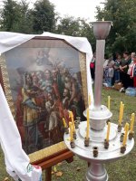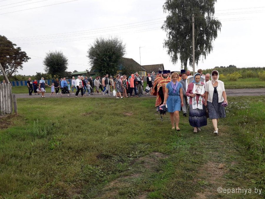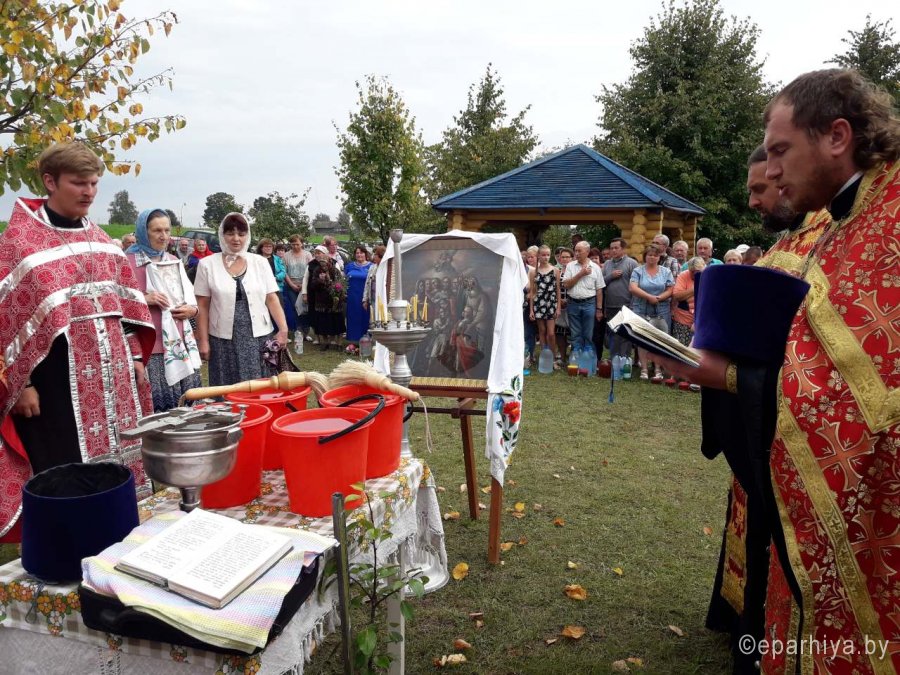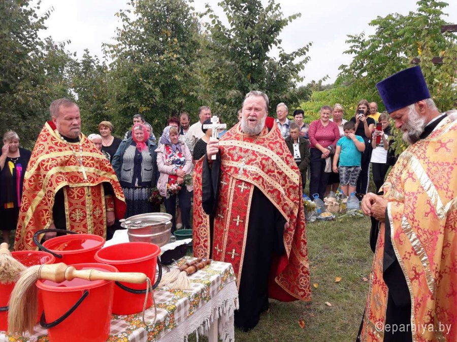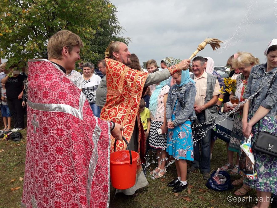 В день памяти святых мучеников Маккавеев 14 августа 2019 года, в д. Селец протоиерей Сергий Пешко, благочинный Буда-Кошелевского округа в сопровождении духовенства благочиния возглавил ставший уже традиционным крестный ход. Торжественное шествие двигалось от начала деревни до источника святых мучеников, где был отслужен водосвятный молебен. По окончании молебна, благочинный поздравил всех присутствующих с праздником и отметил особо важное значение Крынички не только для жителей района, но и для всех приехавших из других городов, областей и стран. «Ведь тот факт, что на наш праздник прибыли гости из Кормянского, Рогачевского района, с Минска и даже с России, говорит о том, что душа человека нуждается в живой воде, которая утоляет не только жажду телесную, но и животворит дух». Затем священнослужители освятили источник воды, купель и окропили святой водой подношения всех присутствующих. Особую праздничную атмосферу помогли создать народные коллективы, выступавшие в этот день на Крыничке. Все желающие смогли окунуться в купели. |