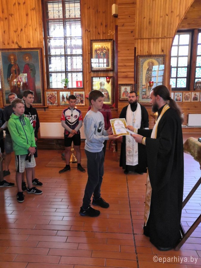 16 августа состоялось завершение районного туристического лагеря «Велопробег по святым местам и источникам Приднепровской низменности - 2019». Клирик храма святого Архангела Михаила в г. Гомеле иерей Станислав Смоляк провел молебен в храме, а также поблагодарил участников. Основная цель мероприятия - развитие духовно-нравственной личности ребенка, укрепление физического, психического и эмоционального здоровья детей, воспитание лучших черт гражданина через обретение им духовного опыта, основанного на культурно-нравственных традициях. По благословению архиепископа Гомельского и Жлобинского Стефана всем участникам велопробега были вручены благодарственные письма. |