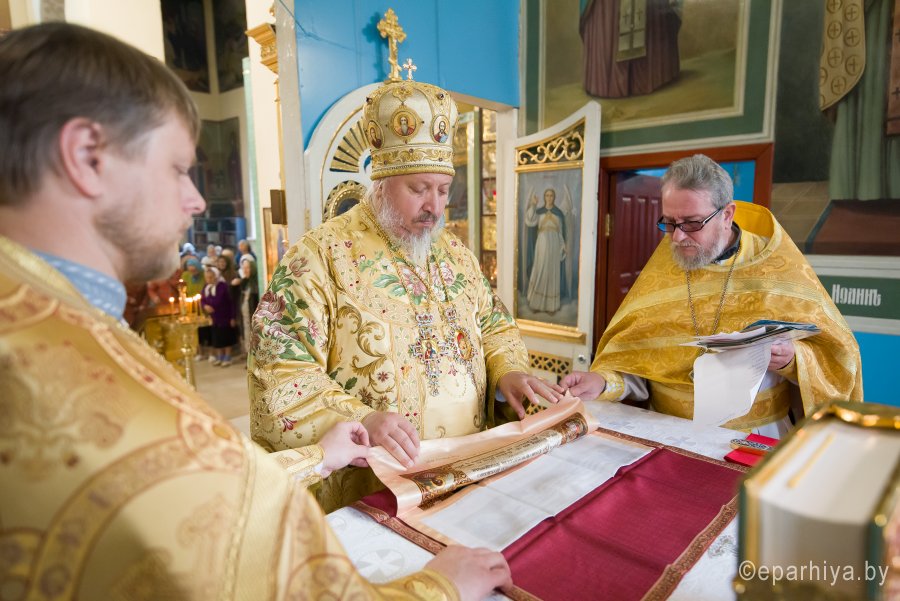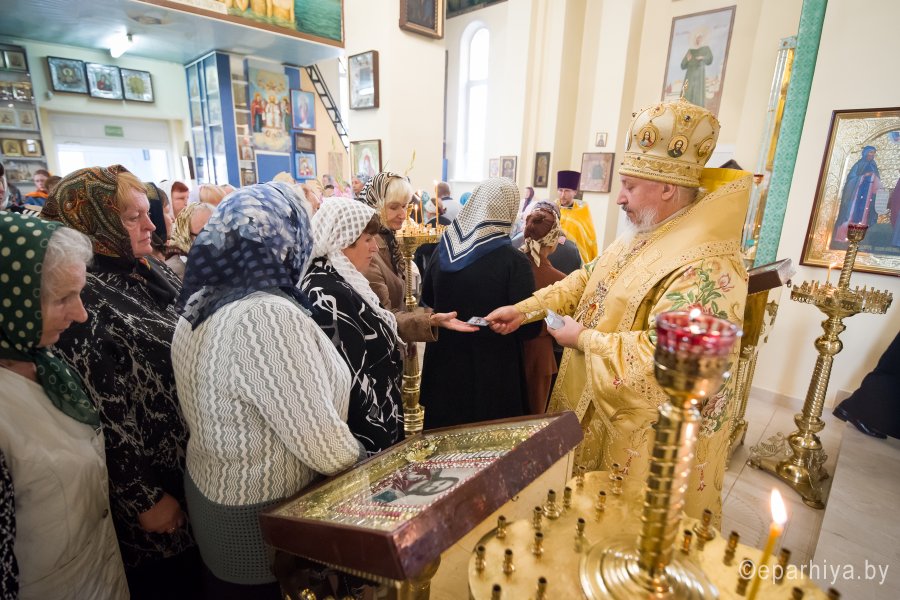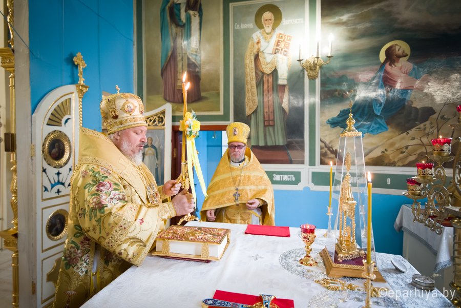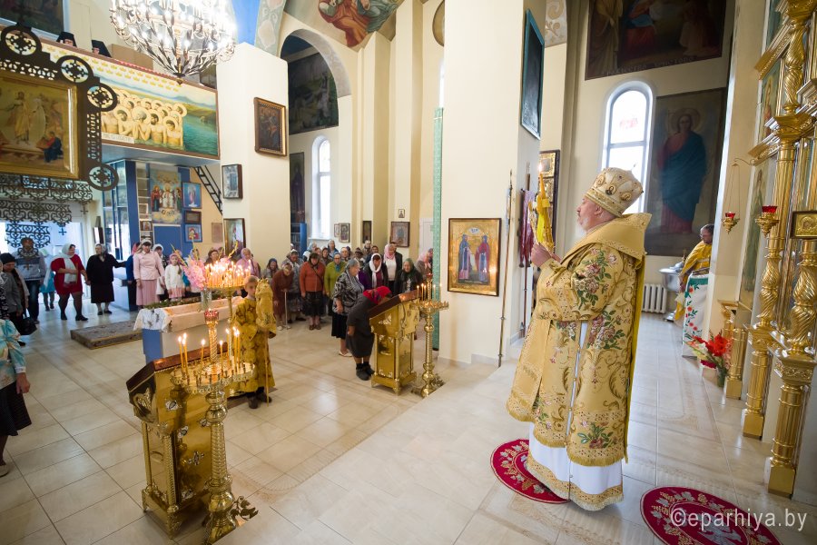 Божественную литургию в храме Преображения Господня в г. Ветка 18 августа 2019г. в Предпразднство Преображения Господня возглавил Высокопреосвященнейший Стефан архиепископ Гомельский и Жлобинский. Высокопреосвященнейшему сослужили: секретарь Гомельской епархии протоиерей Георгий Алампиев, настоятель прихода протоиерей Михаил Борисенок и духовенство епархии. По окончании богослужения Владыка поздравил причастников с принятием Святых Христовых Таин, обратился к молящимся со словами Архипастырского назидания и в память об этом дне раздал иконки. |